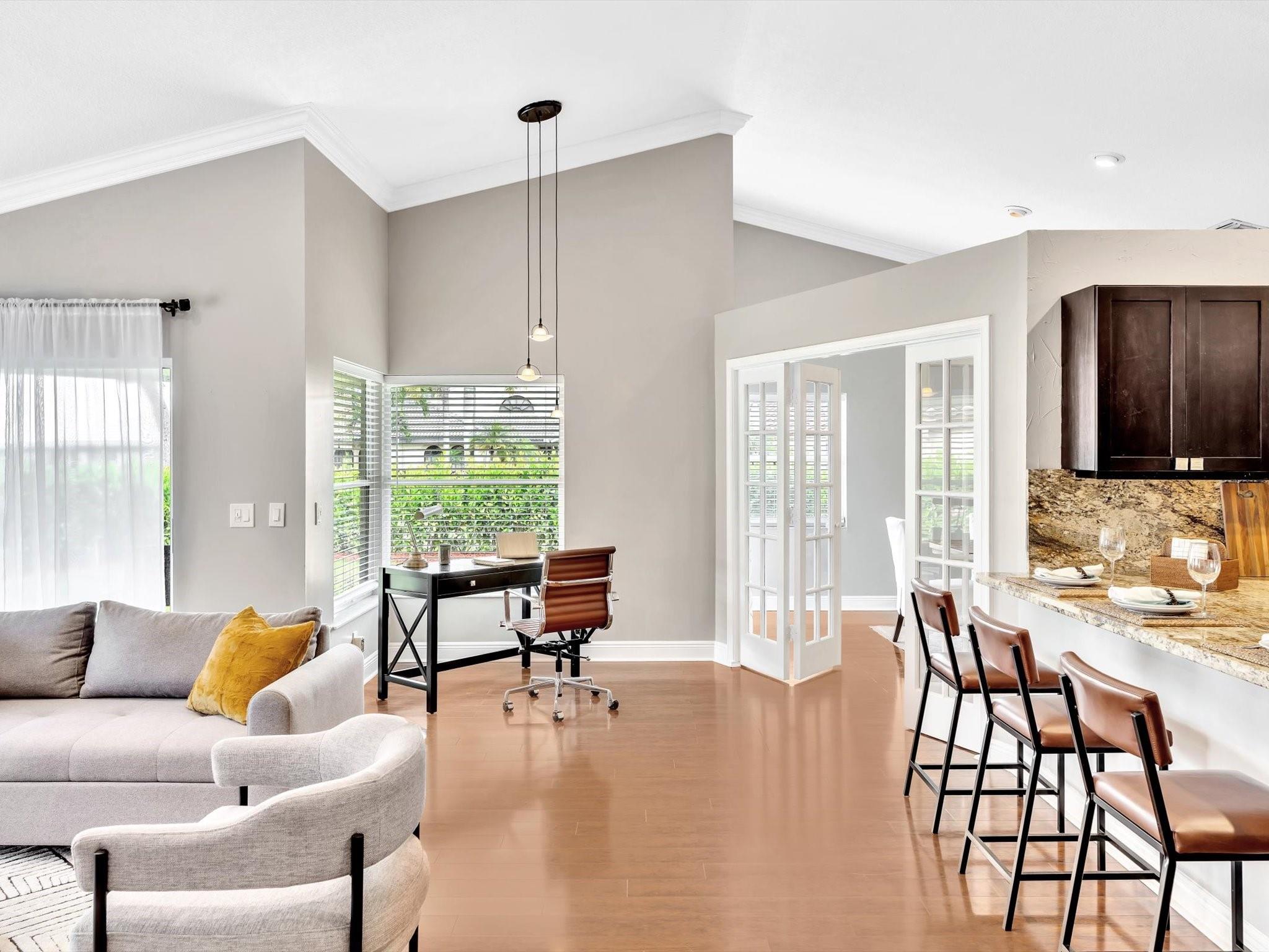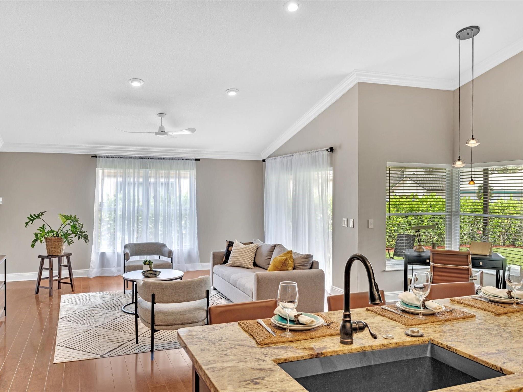 Welcome to the market, this beautiful, move-in ready, 1 story Estate home in the much sought after community of Forest Ridge! This 5 bedroom home features an open floorplan, split bedroom design. Vaulted ceilings & ample living space for an open feel, as well as formal separate living & dining room. Kitchen overlooks living area, creating the perfect home for entertaining & ideal for large gatherings! Cabana bath with walk-in shower & door leading to backyard. Main bedroom suite includes separate shower & tub. Freshly painted, new crown molding, & new closet doors throughout. No Poly. Close to Silver Ridge Elementary, walking/running/biking trail, community pool, pickle ball/tennis courts/basketball & Tree Tops Park! Close to 595,Ft. Lauderdale Airport, & shopping! This home has it all!