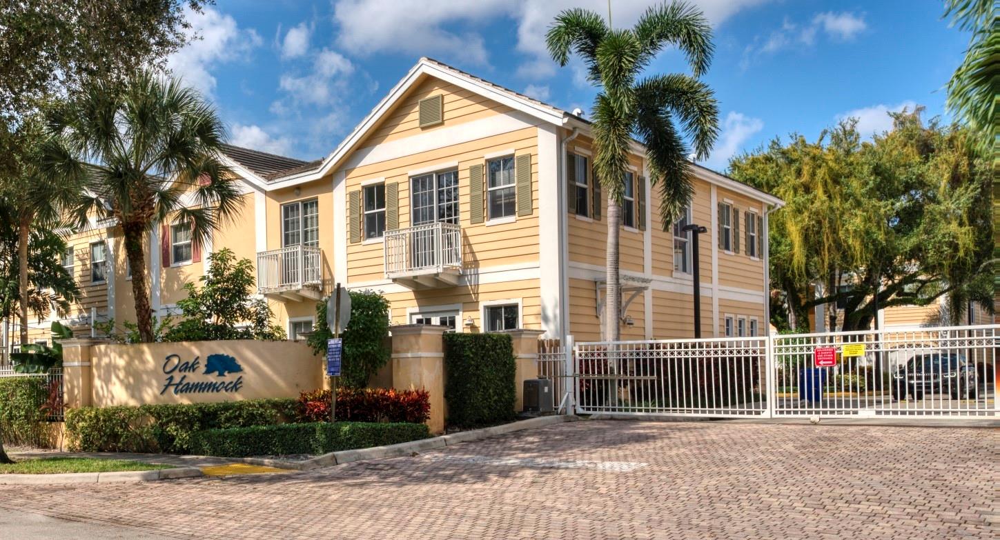 LOCATED IN A GATED BOUTIQUE COMMUNITY W/ HEATED POOL -- SPACIOUS TOWNHOUSE W/ 11' CEILINGS, IMPACT WINDOWS, BUILT 2005, NEW AC 2023, ROOF 2018, GIANT MASTER SUITE W/jetted TUB AND SHOWER, SPACIOUS LOFT AREA (GREAT FOR OFFICE) PLUS 2 GUEST BEDROOMS. UPSTAIRS LAUNDRY-- FULL SIZE W/D, PRIVATE PAVERED PATIO-- GREAT FOR GRILLING. 2 CAR GARAGE. OAK HAMMOCK IS WELL MAINTAINED, HIDDEN GEM W/ GORGEOUS SETTING AMONG THE LIVE OAKS. THIS IS THE BEST "BANG FOR THE BUCK" NEAR DOWNTOWN FT LAUD-- Lots of interior space w/private outdoor space and garage. PET FRIENDLY. OK TO LEASE. FEE SIMPLE TOWNHOUSE! (NOT A CONDO!)