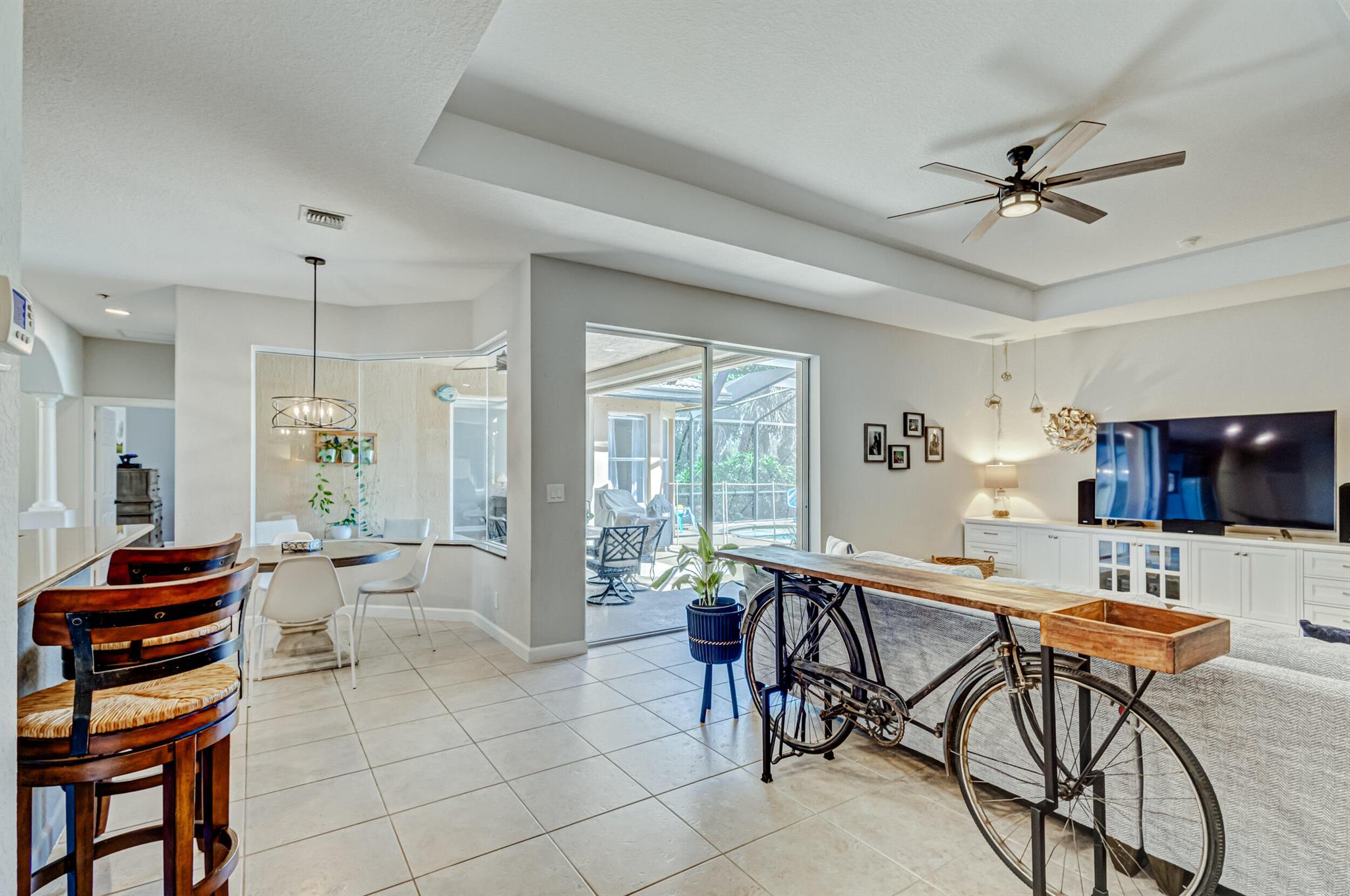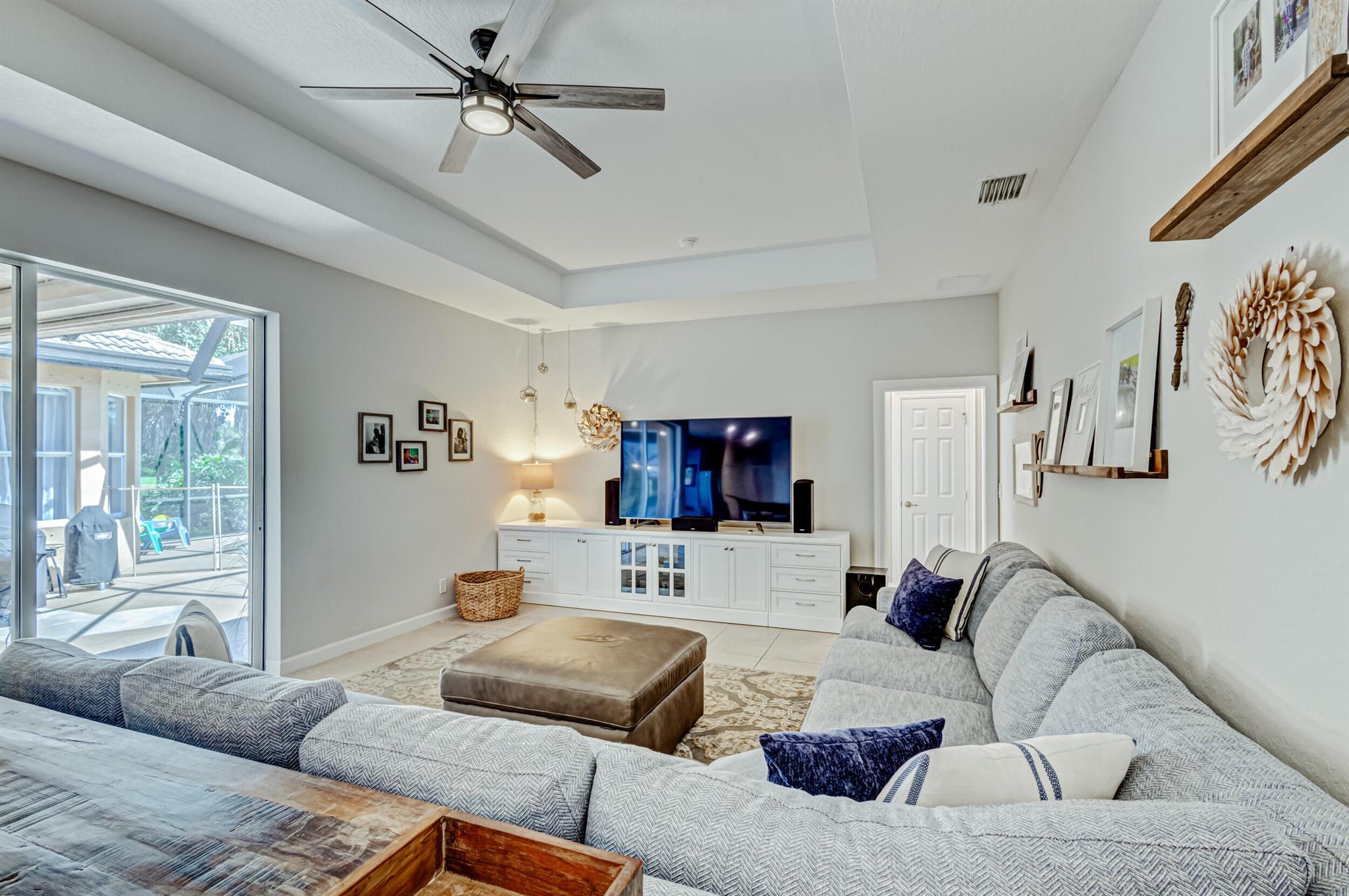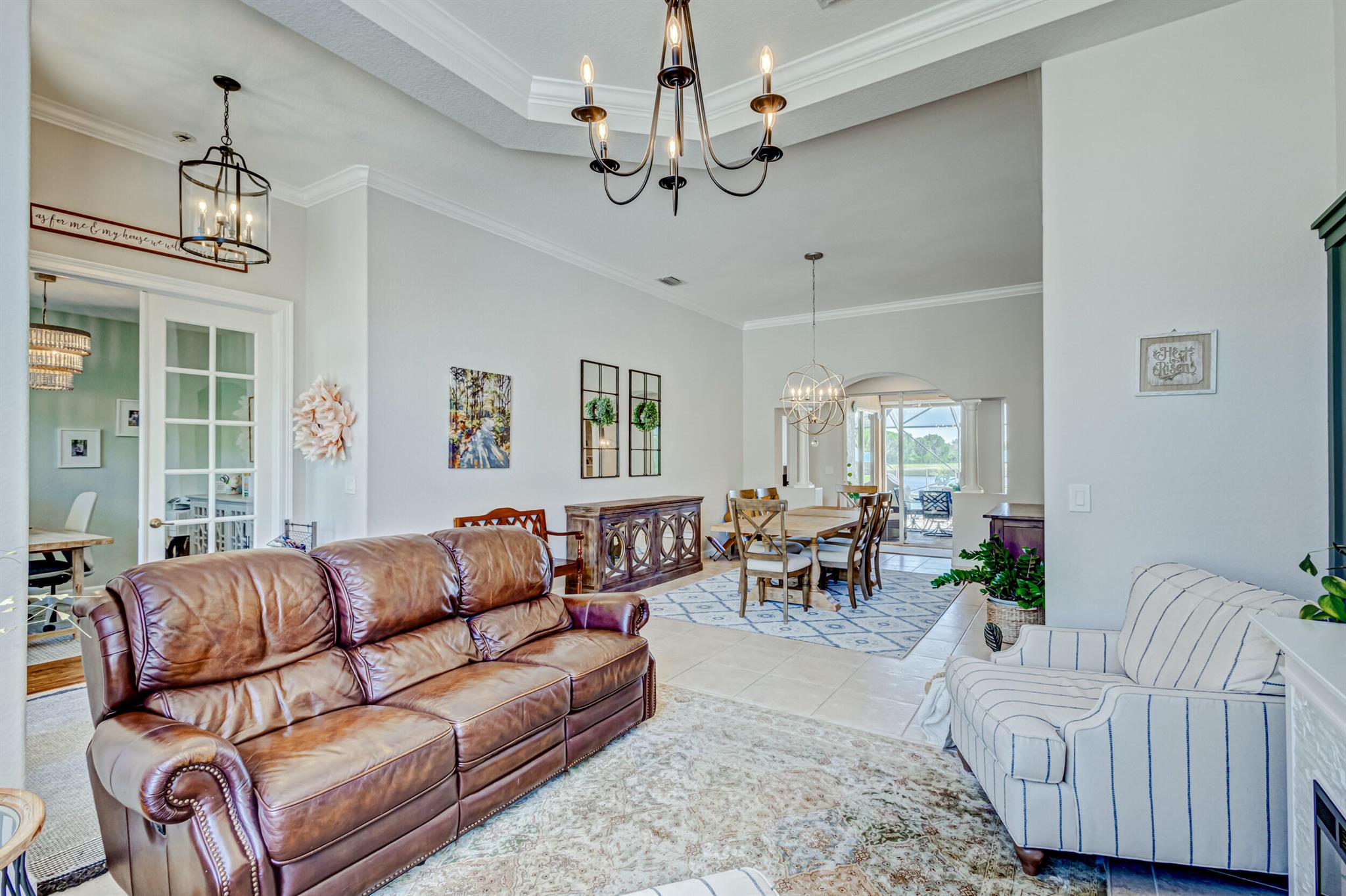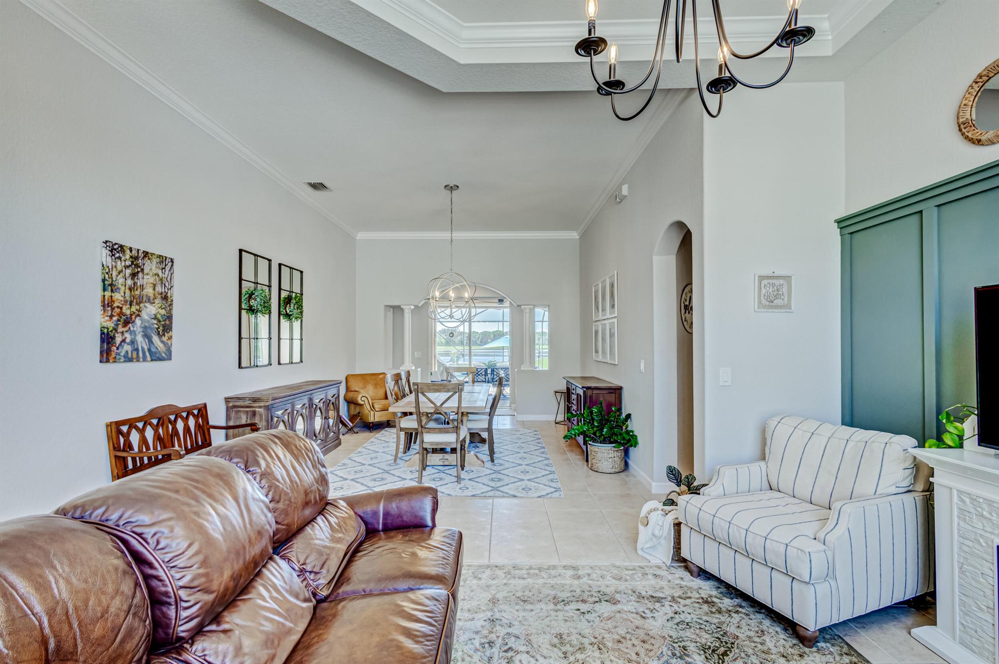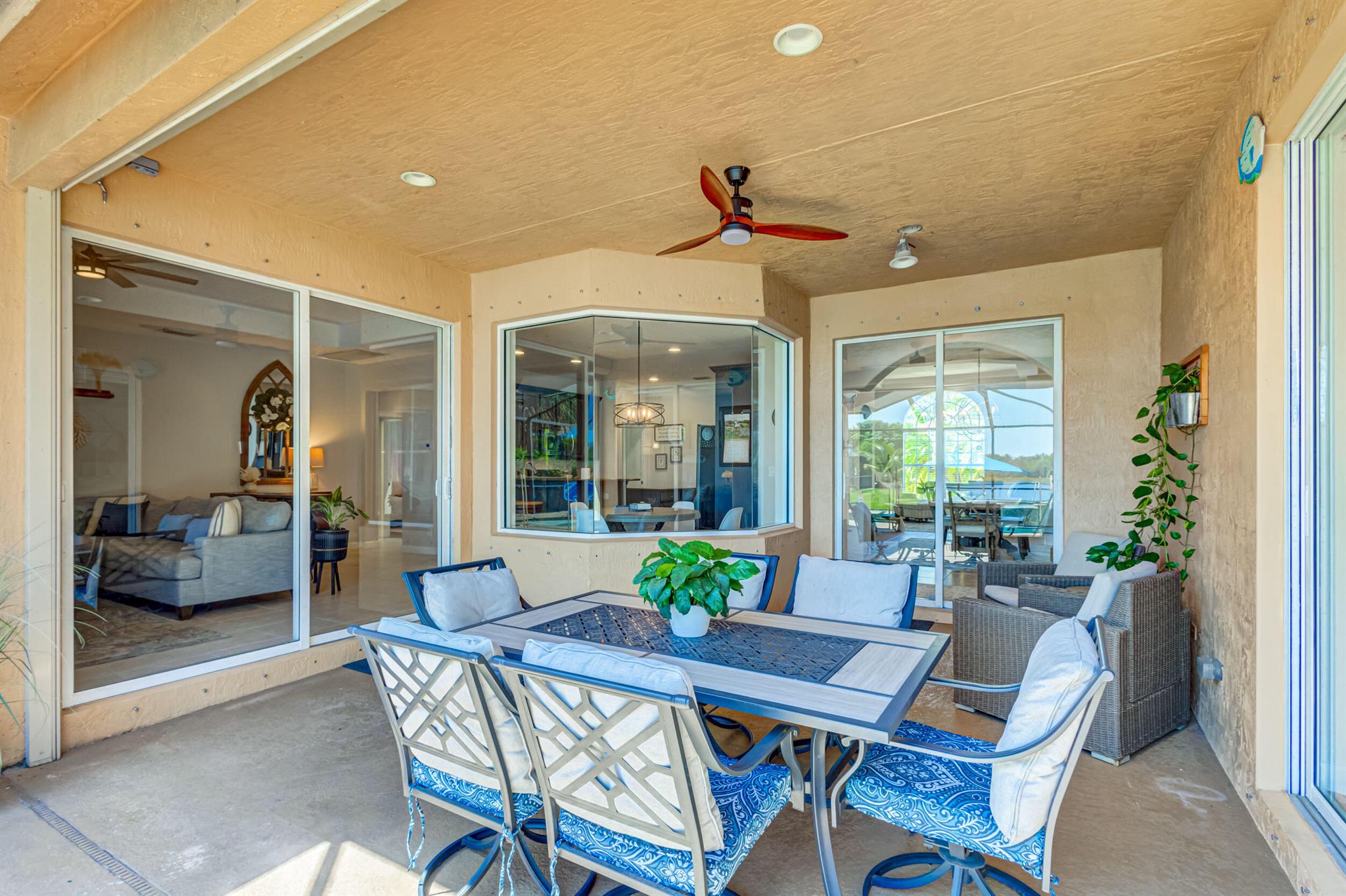 Stunning expansive long lakefront view one of a kind extended mdl single story 2847 lvg sq ft 5 br 3 bath 3 car gar. home. Oversized cul-de-sac lot. Spacious layout living, family, dining, breakfast, bar top casual eating, outdoor fully screened living space w/long water view, pool, spa, sun & covered lanai shade space & dining space. outdoor BBQ. cabana bath. All hard friendly living floor surfaces, no carpet, indoor laundry room, ample kitchen storage, center island & pantry space. New gas stove, micro, w/d, new commodes, faucets, water heater 2023, new pool heater, salt system. child safety fence. Roll down hurricane screen back patio no moving furniture inside! New pavers front. North/South exposure can leave new window treatments open! Community pool, tennis & playground.