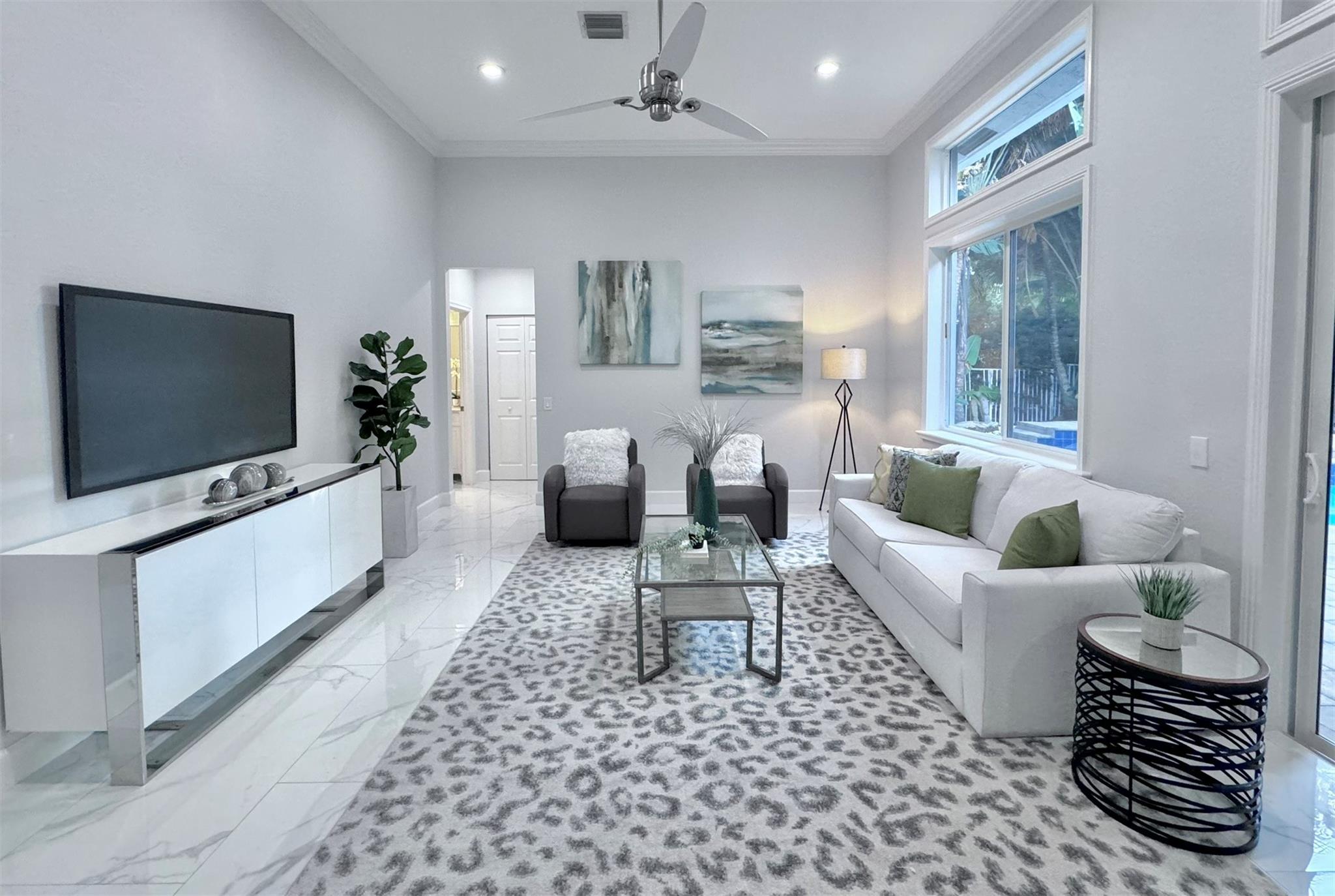 Beautiful remodeled home located in the prestigious guard gated community of Weston Hills Country Club. Boasting a spacious 4-bedroom, Plus Office/Den & 3 1/2 bathroom, one story layout. Light & bright interior with volume ceilings & plenty of natural light makes this home an entertainers paradise. The huge Master Suite with sitting area overlooks the private pool & patio. Brand new flooring throughout this home & all newly renovated bathrooms. The interior & exterior of this large home has recently been painted. Brand new roof and A/C unit. New Impact-Resistant glass on all windows and doors. A stunning turn-key renovated home! Walking distance to soccer field, Pickleball & basketball courts & park areas. Just 30 mins to the beaches and zoned for the best A+ schools.