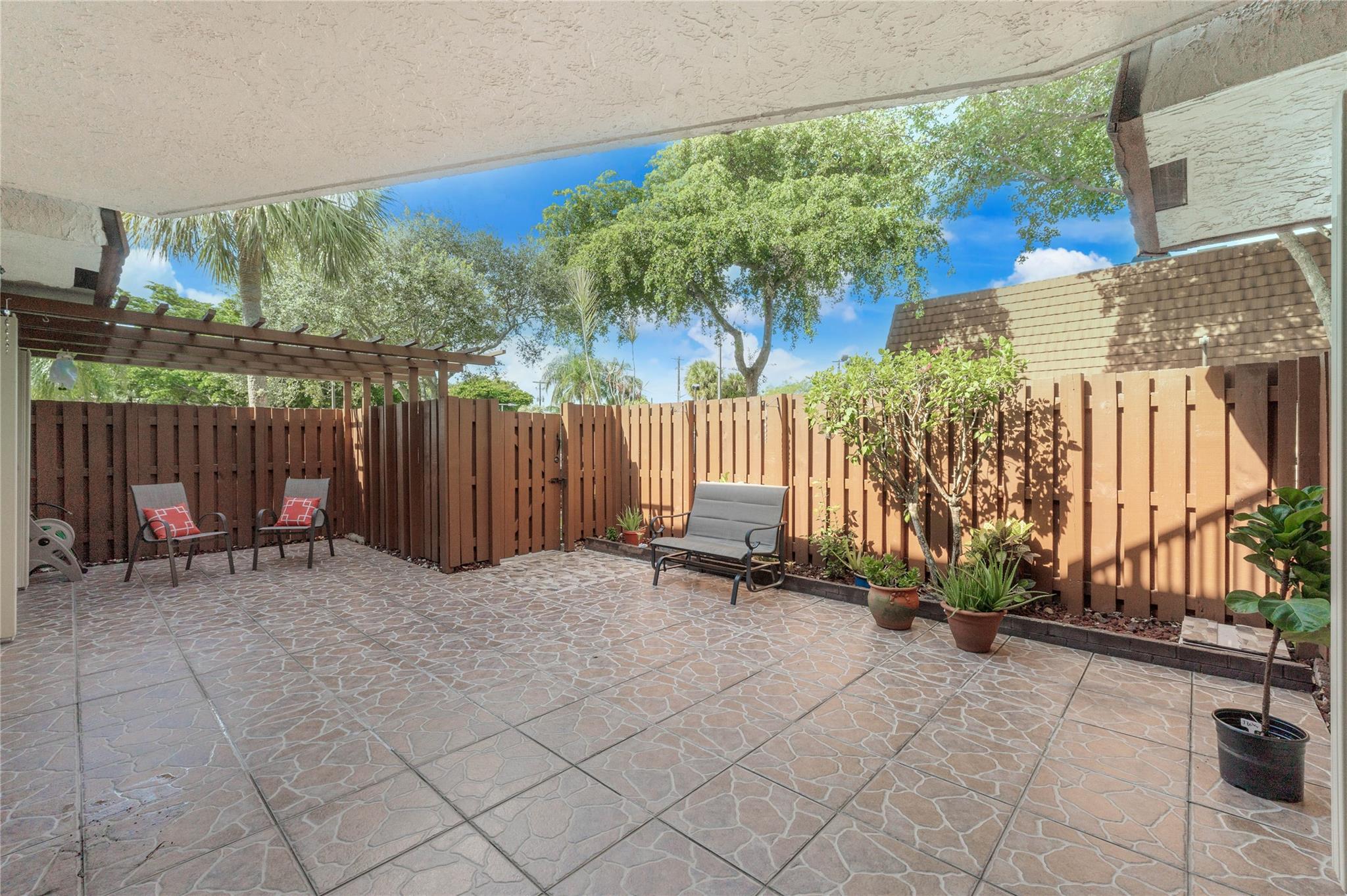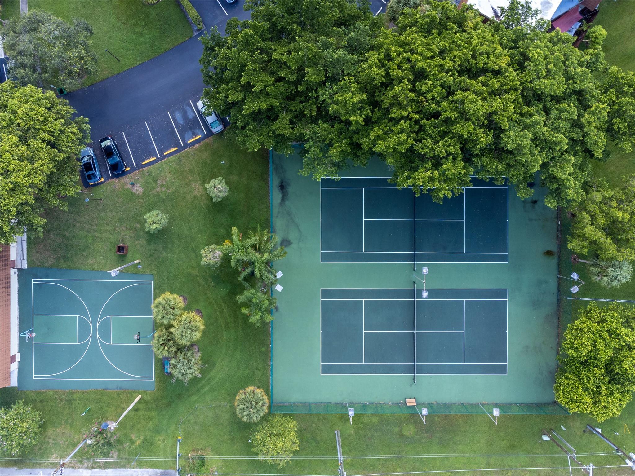 Welcome to Village at Lake Pine II! This spacious townhome has a lot to brag about! Owner is meticulous! 2022 Rheem 16 Seer AC w/ warranty, 2022 Water Heater, Microwave replaced 2021, & Washer replaced 2021 w/ warranty. Neutral tile floors on the 1st floor. Beautiful laminate floors up the stairs & in upstairs bedrooms. Kitchen features stainless steel appliances. Bedroom on 1st floor features custom cedar builtin closet/storage and Murphy bed. Powder room updated! Full size washer/dryer. Large primary bedroom features 2 walk in closets, updated tile in bathroom, large jetted tub & separate shower. Balconies from both bedrooms. Spacious & private courtyard has great space for entertaining! Accordion shutters! Community pool, basketball courts, & tennis courts. Great location! Won't last!