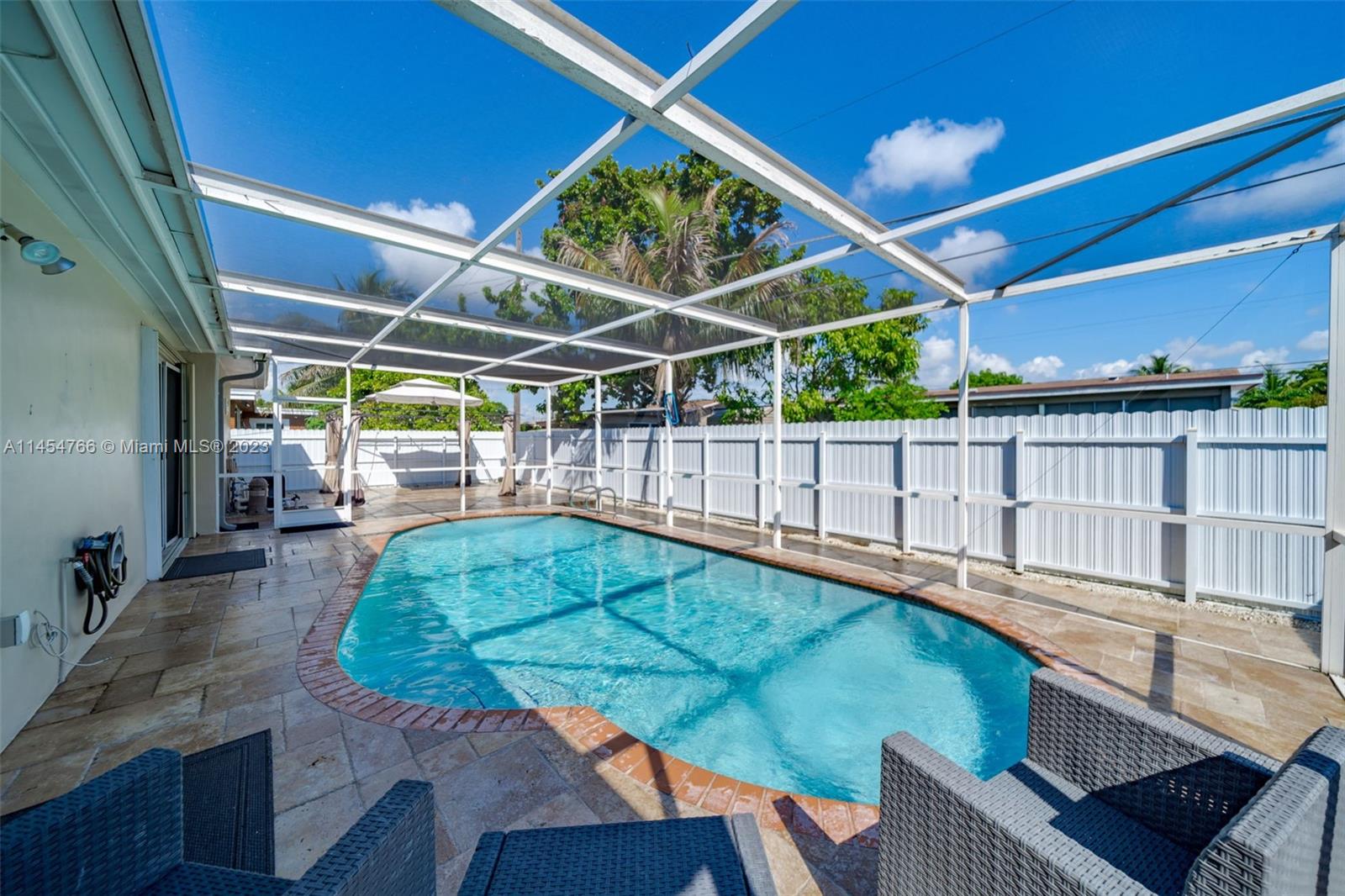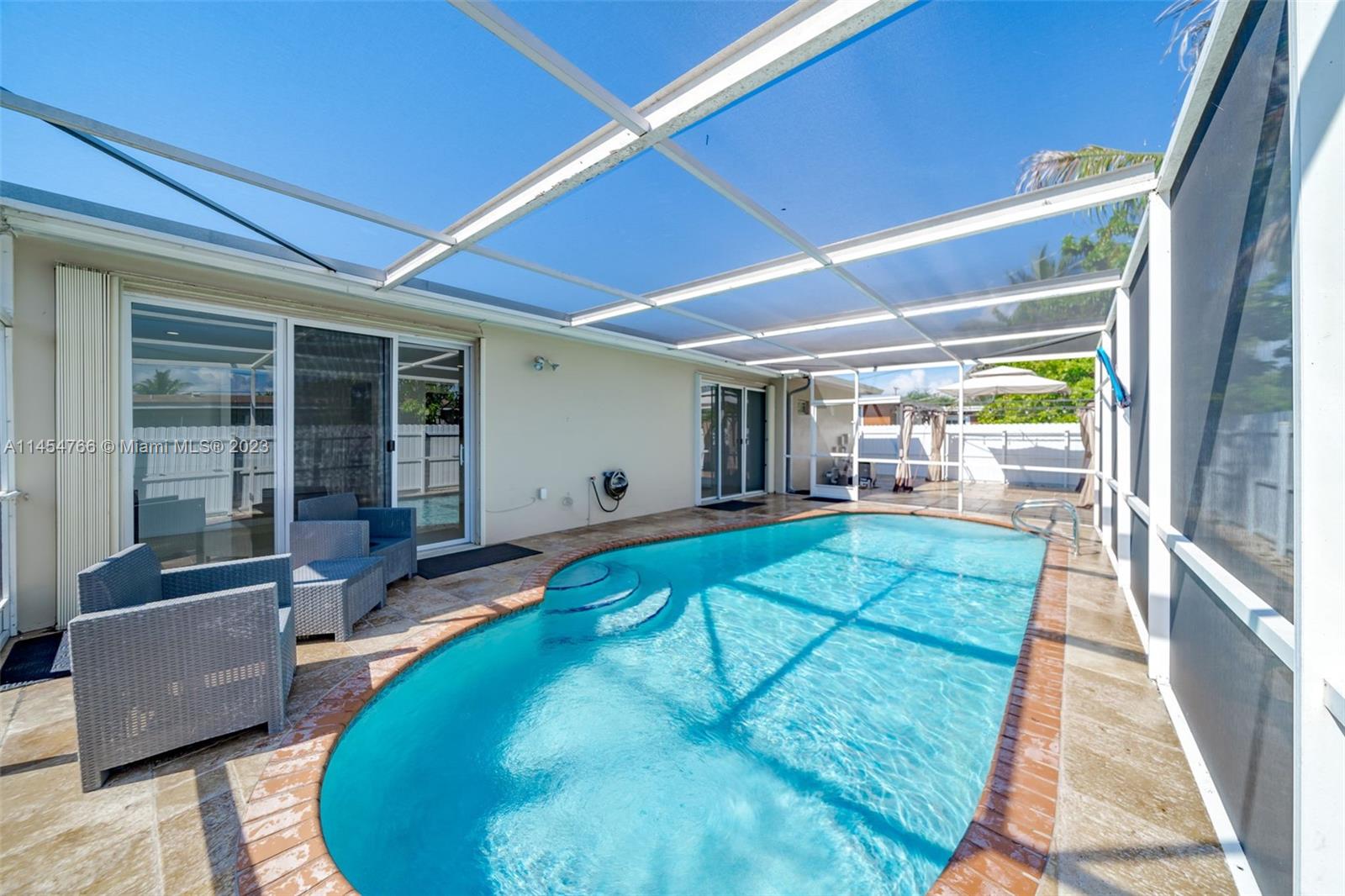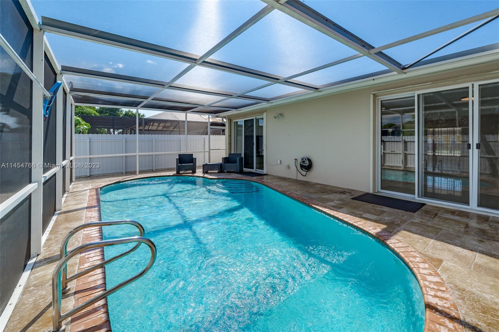 AMAZING THREE BEDROOMS, TWO BATHS ONE STORY HOME WITH A BRAND NEW 2023 METAL ROOF, NEW A/C UNIT, AND NEW LG WASHER AND DRYER. THIS PROPERTY FEATURES A SPACIOUS OPEN FLOOR PLAN THAT FLOWS SEEMLESSLY TOGETHER. THE FAMILY ROOM ALLOWS FOR INDOOR/OUTDOOR LIVING. KITCHEN HAS GRANITE COUNTERTOPS AND STAINLESS-STEEL APPLIANCES INCLUDING A GAS RANGE/OVEN. NEWER WATER HEATER 2019. ACCORDIAN SHUTTERS AND NEW ALUMINUM FENCE FOR PRIVACY. FRESHLY PAINTED INTERIOR & EXTERIOR WITH INCREDIBLE CURB APPEAL. THIS BEAUTIFUL HOME HAS A BIG YARD WITH AN ENCLOSED SPARKLING SALT WATER/HEATED POOL GREAT FOR ENTERTAINING. SECURITY CAMERA SYSTEM INCLUDED. NO HOA. EXCELLENT LOCATION, CLOSE TO SHOPS, RESTAURANTS, PARKS AND EASY FREEWAY ACCESS.