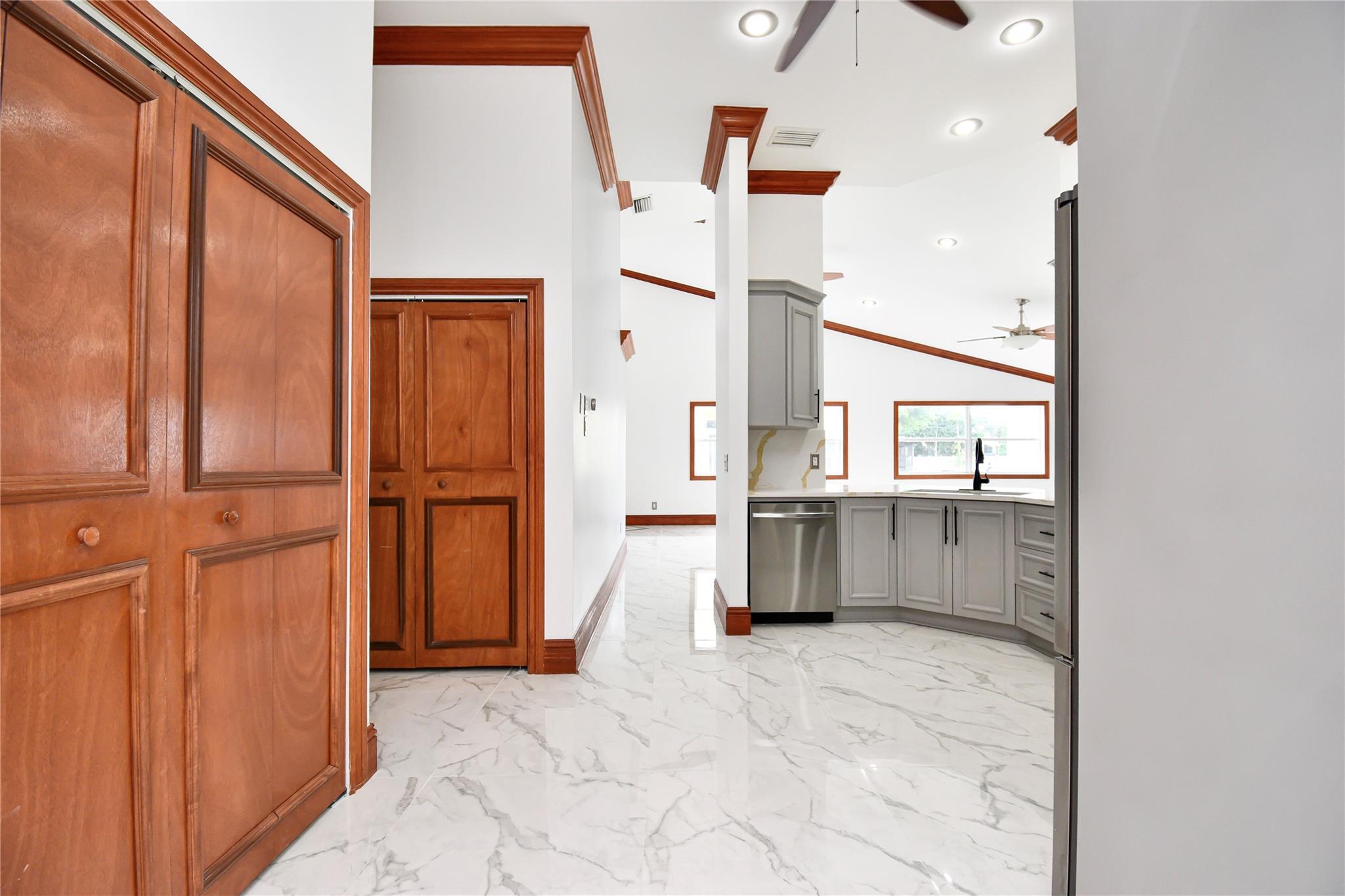 Move In Ready - One Story 5 bedrooms, & 3 full bathrooms. NEW-Remodeled kitchen, new appliances, quartz counters sky-light breakfast nook, huge backyard, and new beautiful porcelain flooring throughout. Spacious living room dining room area w vaulted ceilings throughout. Decorative ceiling fans, crown molding, base boards, copper piping, new paint both inside and outside. Mosaic tile walkway w synthetic grass. A 5-ton air-conditioned, Nest thermostat, 2 yr old air conditioning and 4 year old hot water tank. Located on a quiet cul-de-sac. PVC fence surrounds your private backyard w pavers . A two car tiled garage and seven car driveway. Hammock PT Elem just blocks away. Pet-Friendly, olympic sized heated Community Pool/Tennis Courts. HOA is only $98 a month!