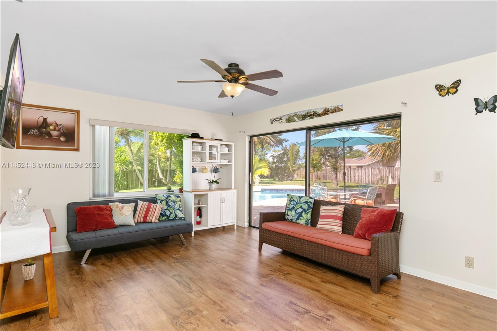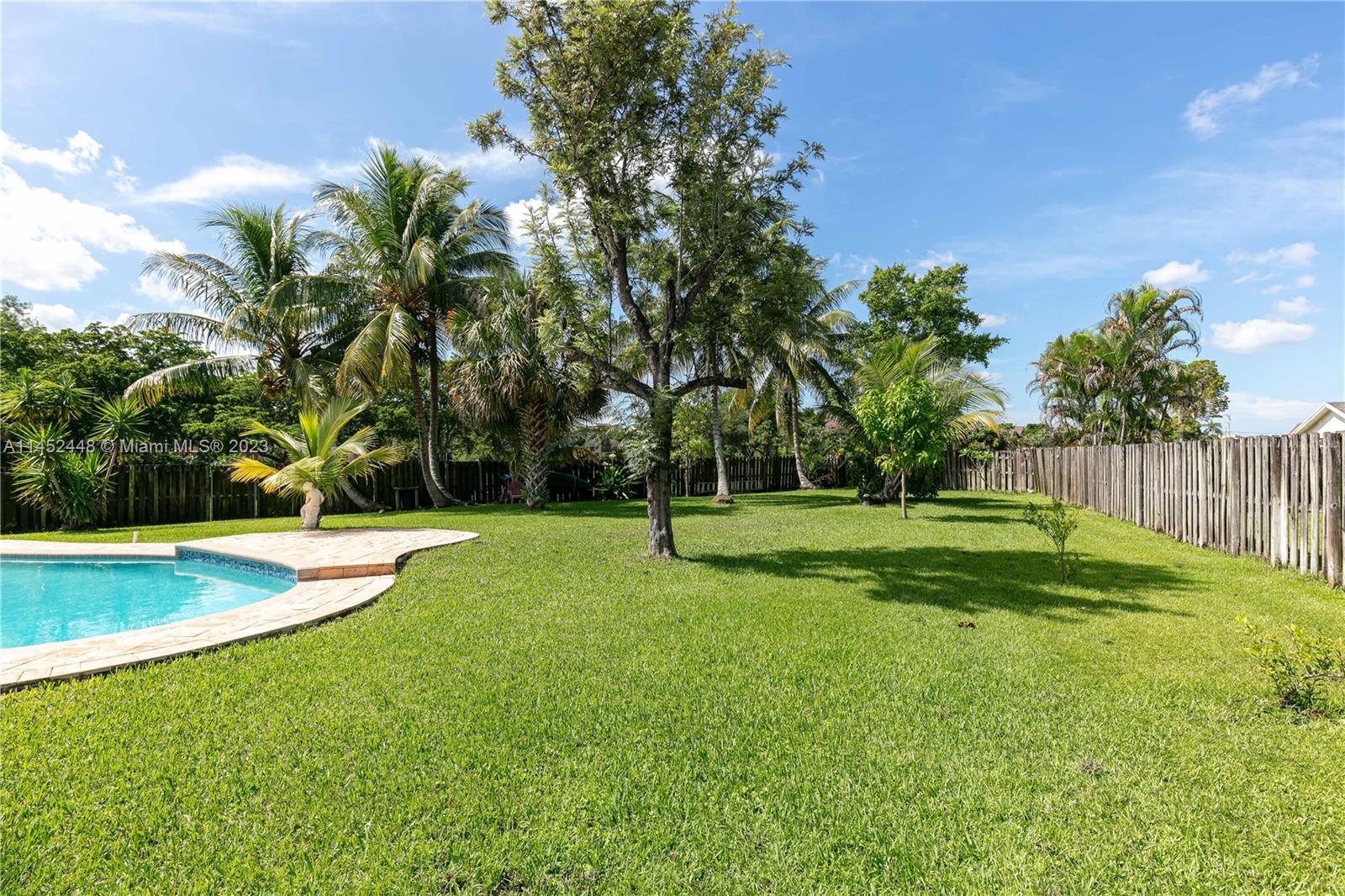One of a kind Welleby 3B/2B pool home with an extra large backyard, with palm and fruit trees bordered by over 140 feet of canal frontage. The lot is pie shaped with most of the land located in the oversized backyard, a tropical paradise.