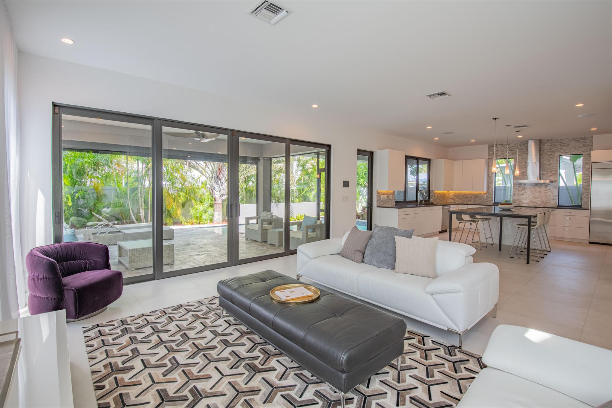 A beautiful modern estate in the heart of Victoria Park in Fort Lauderdale. This home features 4 bedrooms plus office and 5 full bathrooms. Every bedroom has en-suite bathroom. Custom closets throughout. Fully automated smart home (lighting, audio, AC, alarm and security camera system). Grand living areas with open layout and large windows throughout the home! Spacious kitchen with Italian style cabinets, stainless steel Jenn Air appliances, quartz countertops and large island overlooking the family area and patio with pool. Amazing yard with covered patio with automated screen. New custom yard lighting. Brand new fence. Primary suite features two closets, large bathroom with soaking tub and walk-in shower. Close proximity to downtown Fort Lauderdale, Las Olas, and the beach.