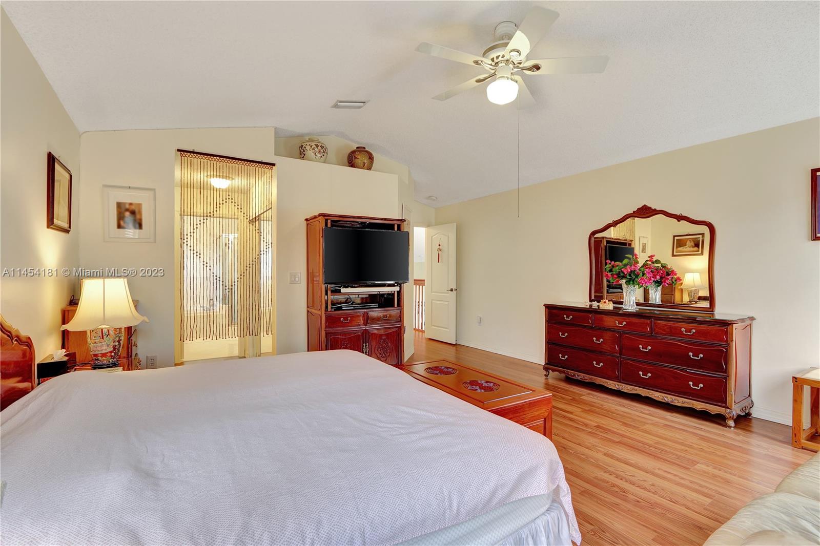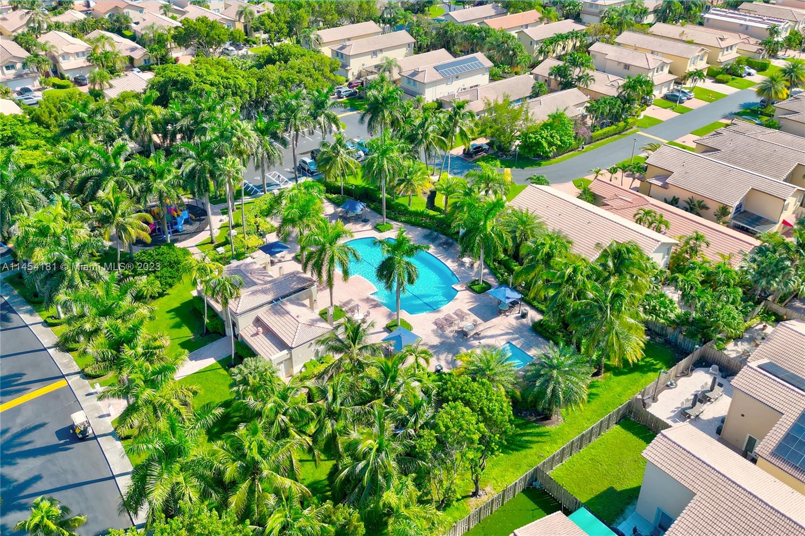 Elegant single family home centrally located in the heart of Doral. The house close to community center, which has pools, kids playground etc., with open view in the front and paved spacious yard at back. Recently installed solar panel for the energy efficiency. Volume ceiling, spacious family room, open kitchen, formal dinning area, 4 spacious bedrooms, 3 full bathrooms, and 2 car garages, it has it all. Great location, easy access to highways, parks, restaurants and shopping centers, it also surrounded by good schools.