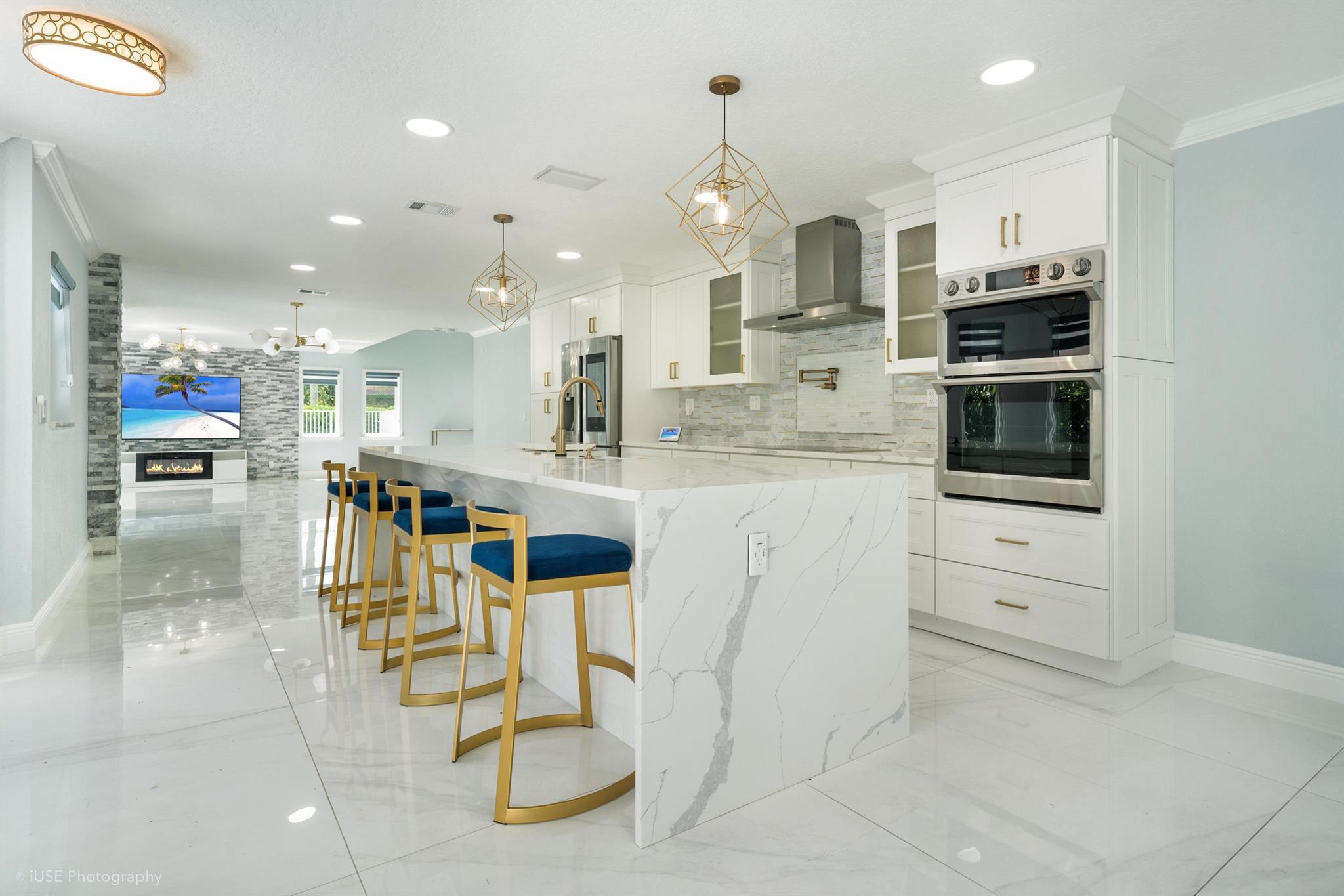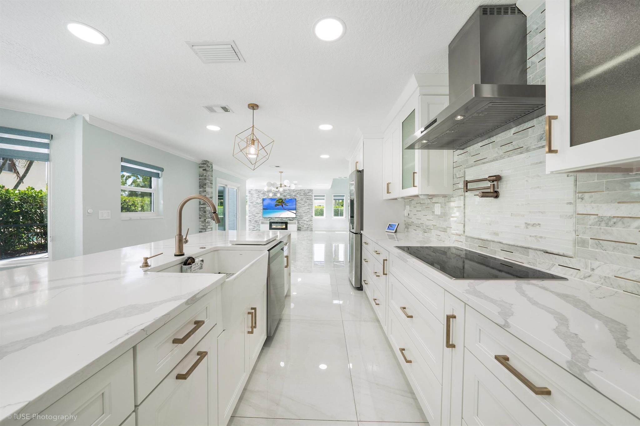 Pristine 5 bed 2.5 bath 3 car garage pool home in desirable Sonata at Mission Bay. Literally every aspect of this property has been highly upgraded & renovated with high-end finishes. New flat tile roof, hurricane impact windows/doors, New AC, pavers & so much more. 18' ceiling entry. 48x48 porcelain tile & NuCore vinyl flooring. Custom white kitchen cabinetry, quartz countertop, induction cooktop, double wall oven, Delta pot filler & 11' waterfall edge island. Glass stairway, elegant lighting, stone accents. Luxurious primary suite: walk-in closet, glass shower, wall mount vanity, solid surface vessel square sinks, & tub. Screened saltwater sys. pool w/ all new equipment. Corner lot fully fenced, turf, sunsetter awning. Garage cabinetry/epoxy floors. Exclusive amenities & A rated schools