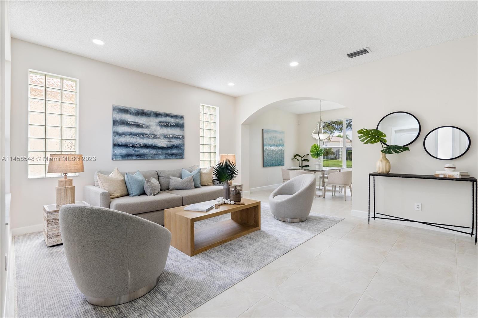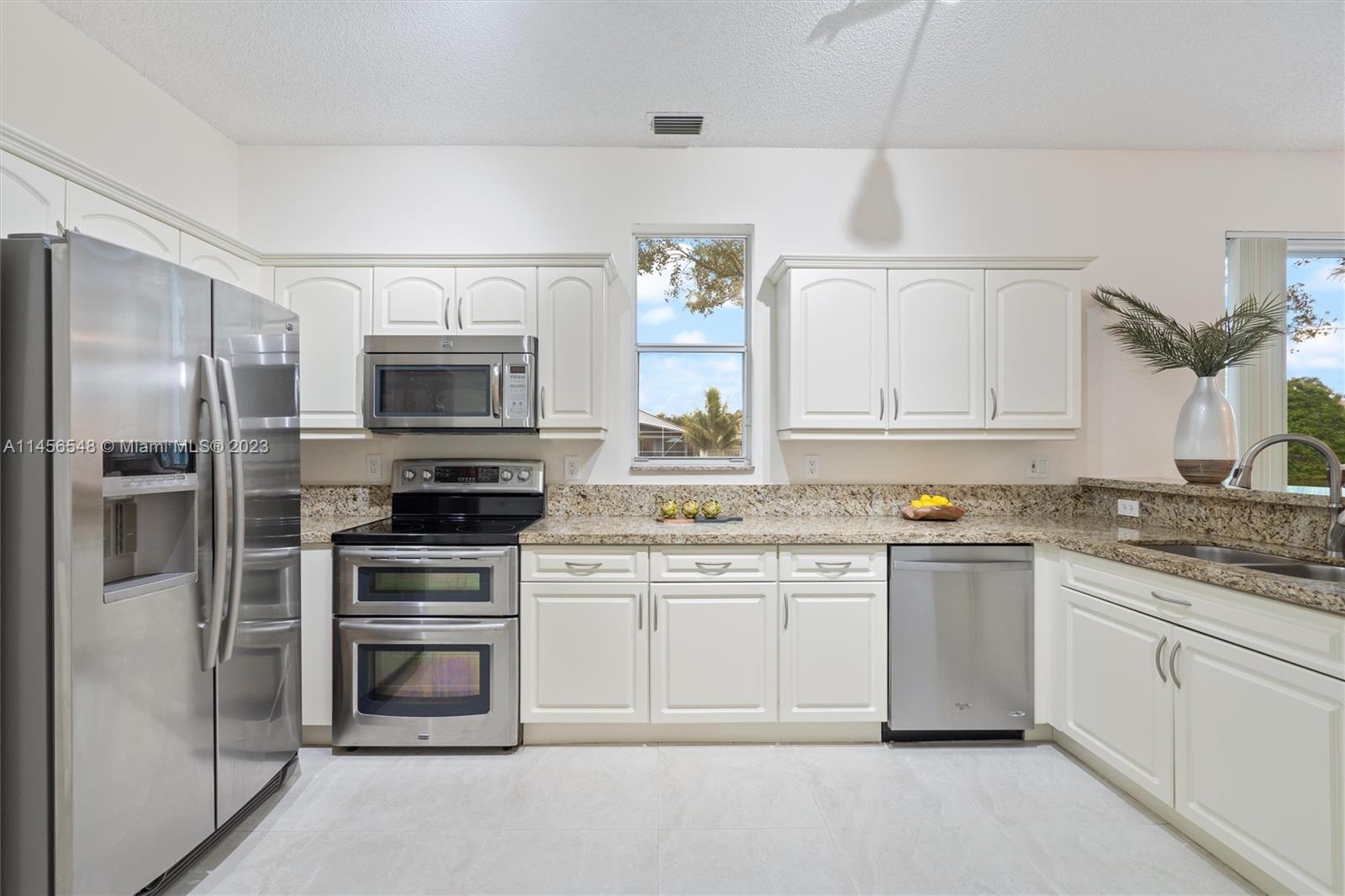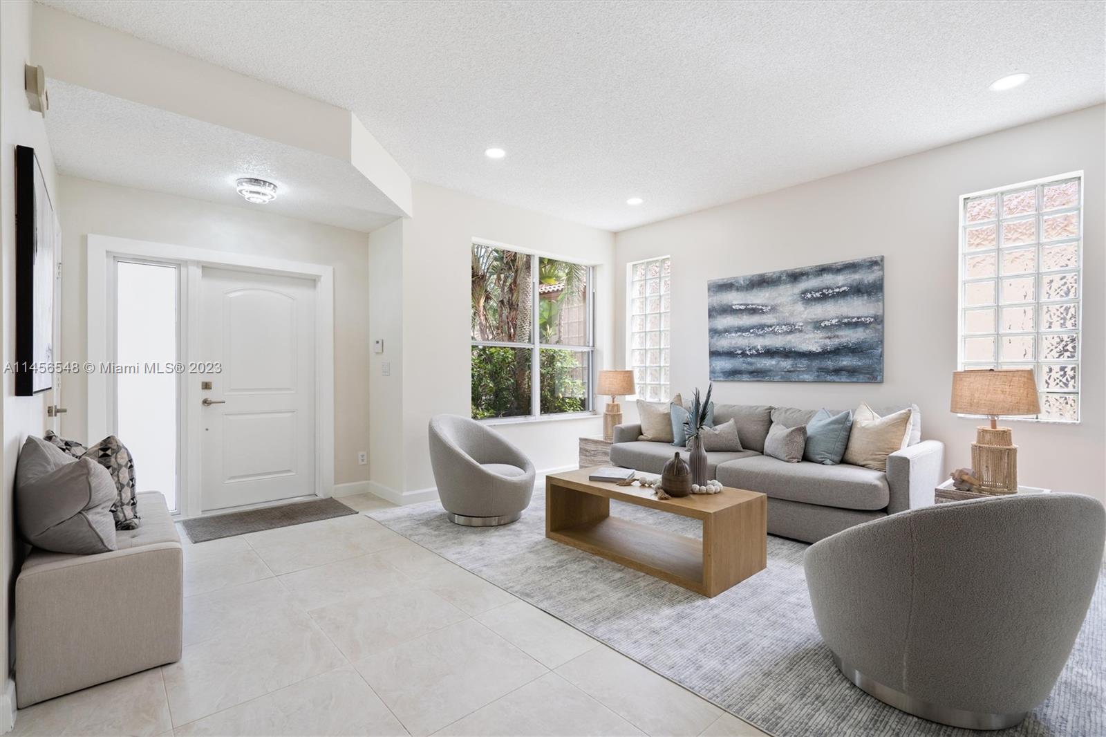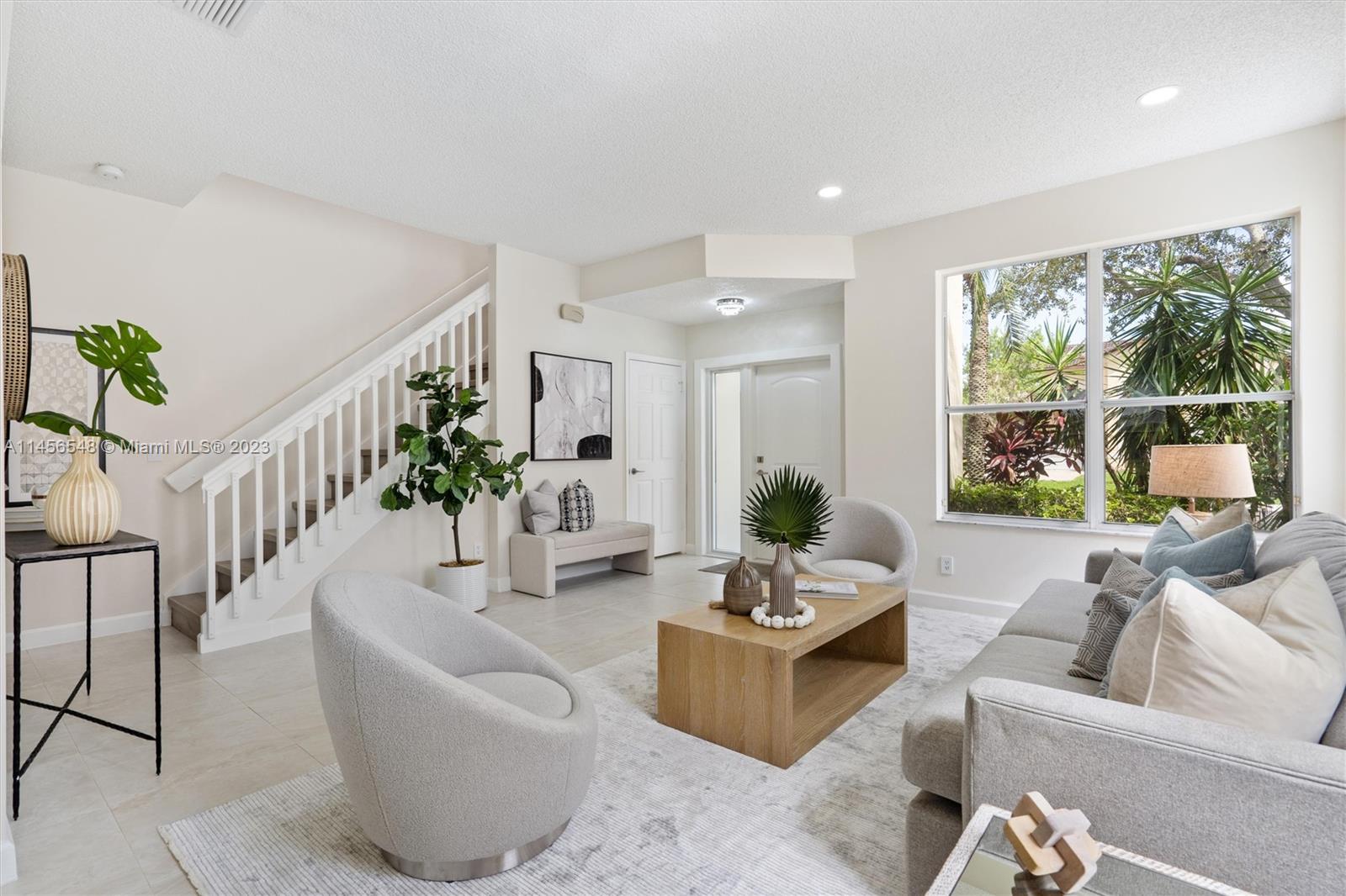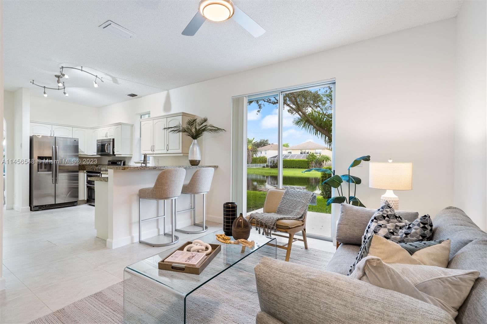Enjoy wonderful sunsets from your patio in this astounding waterfront property in the tranquil gated community of Opal Creek. This 4 bedrooms 2 baths home comes with a water filtration system for the entire home, brand new vinyl flooring on stairs and second floor, as well as new impact front door and accordion shutters, porcelain floor downstairs, new fans & lighting. Kitchen has granite counters & stainless steel appliances. 2021 A/C unit. Recently inspected roof got a 5 years certification of remaining useful life by certified roofer company. The community offers guard gate, security patrol, exercise room. pool and tot-lot. HOA cover ADT alarm & lawn care. Excellent location close to Publix, restaurants/veterinarian/pharmacy & more, only 3 blocks from Griffin Rd and I-75. A+ Schools.