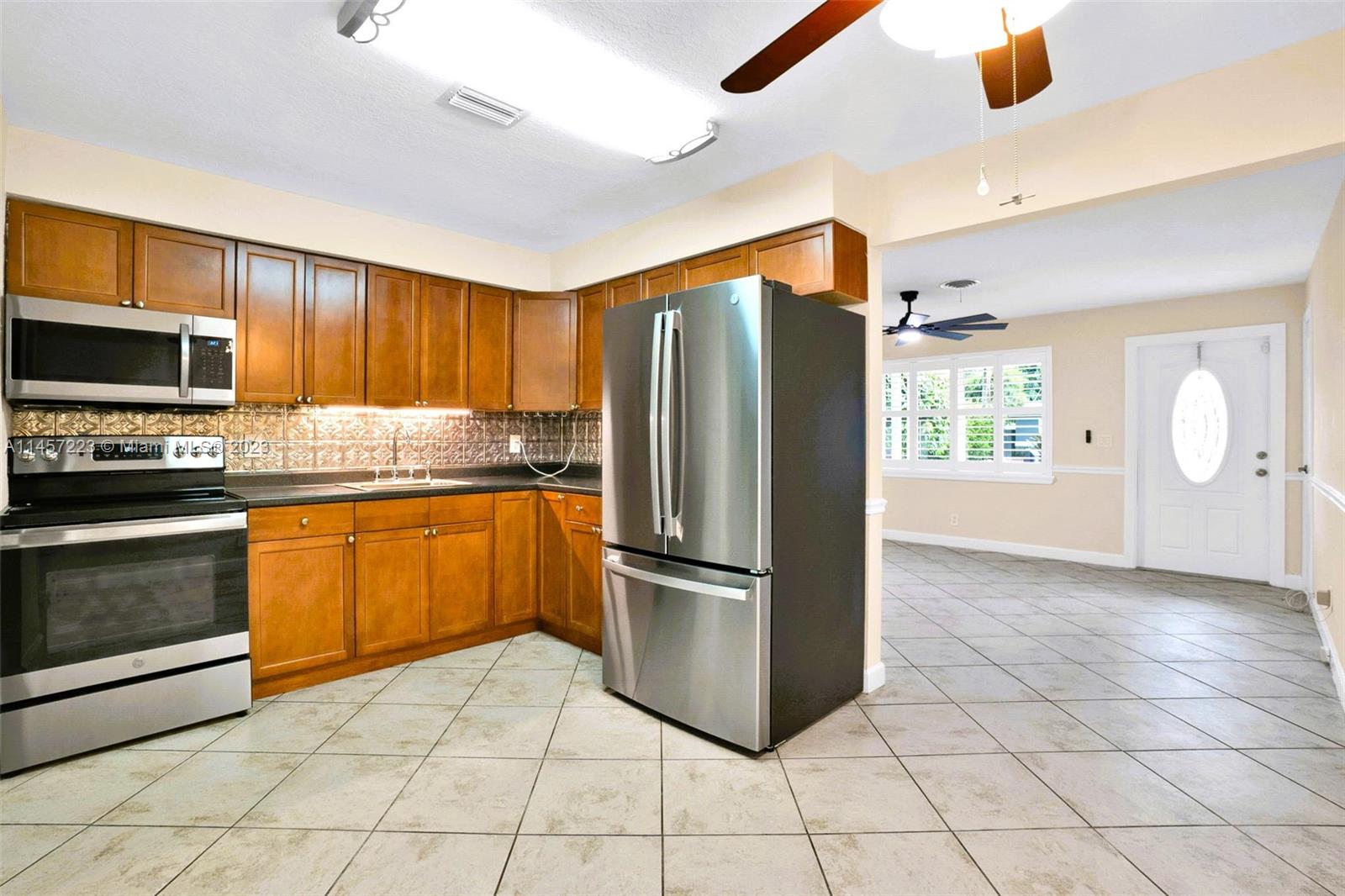 Beautiful 2 bed Cooper City attached Single Family Home with Brand New Metal Roof, Brand New Stainless Steel Appliances, Screened in Back Patio, French Doors, Accordion Shutters, Plantation Shutters, Remodeled Bathroom and spacious, private yard. Just painted inside and out. Info herein deemed accurate but subject to errors and omissions. All measurement are approximate and populated through County Property Appraiser. Listing info can be updated or modified at any time without notice.