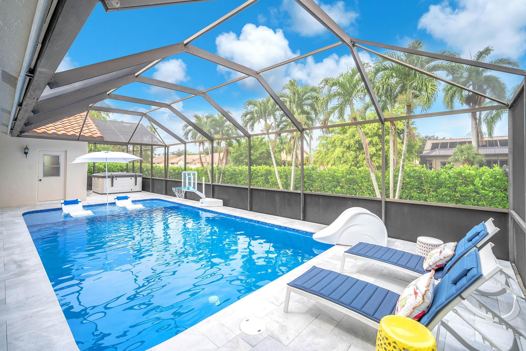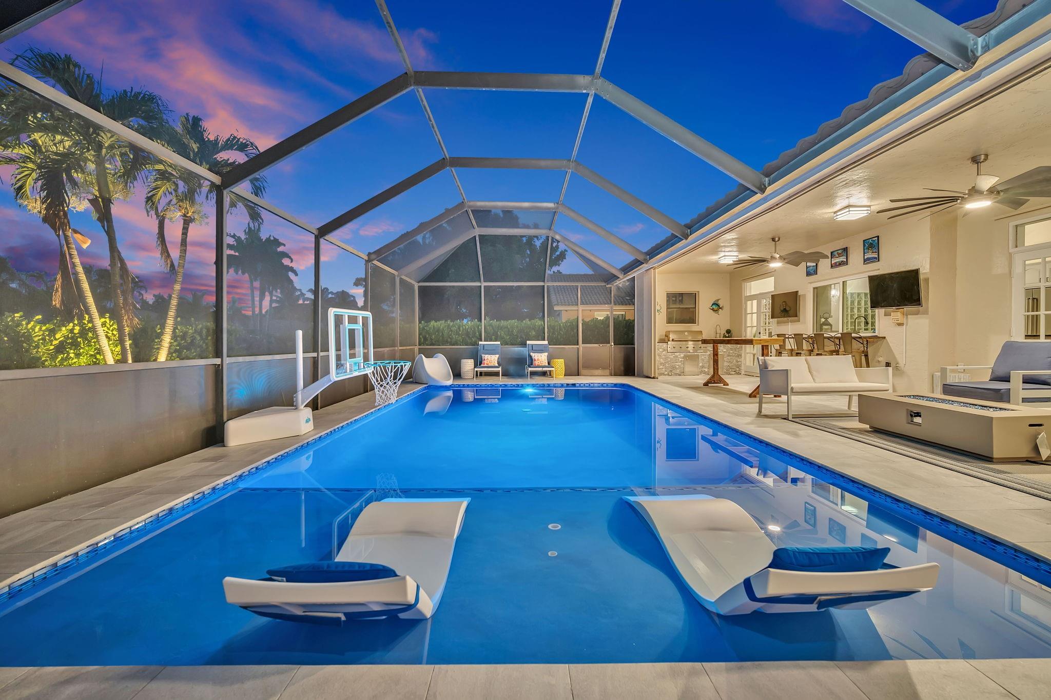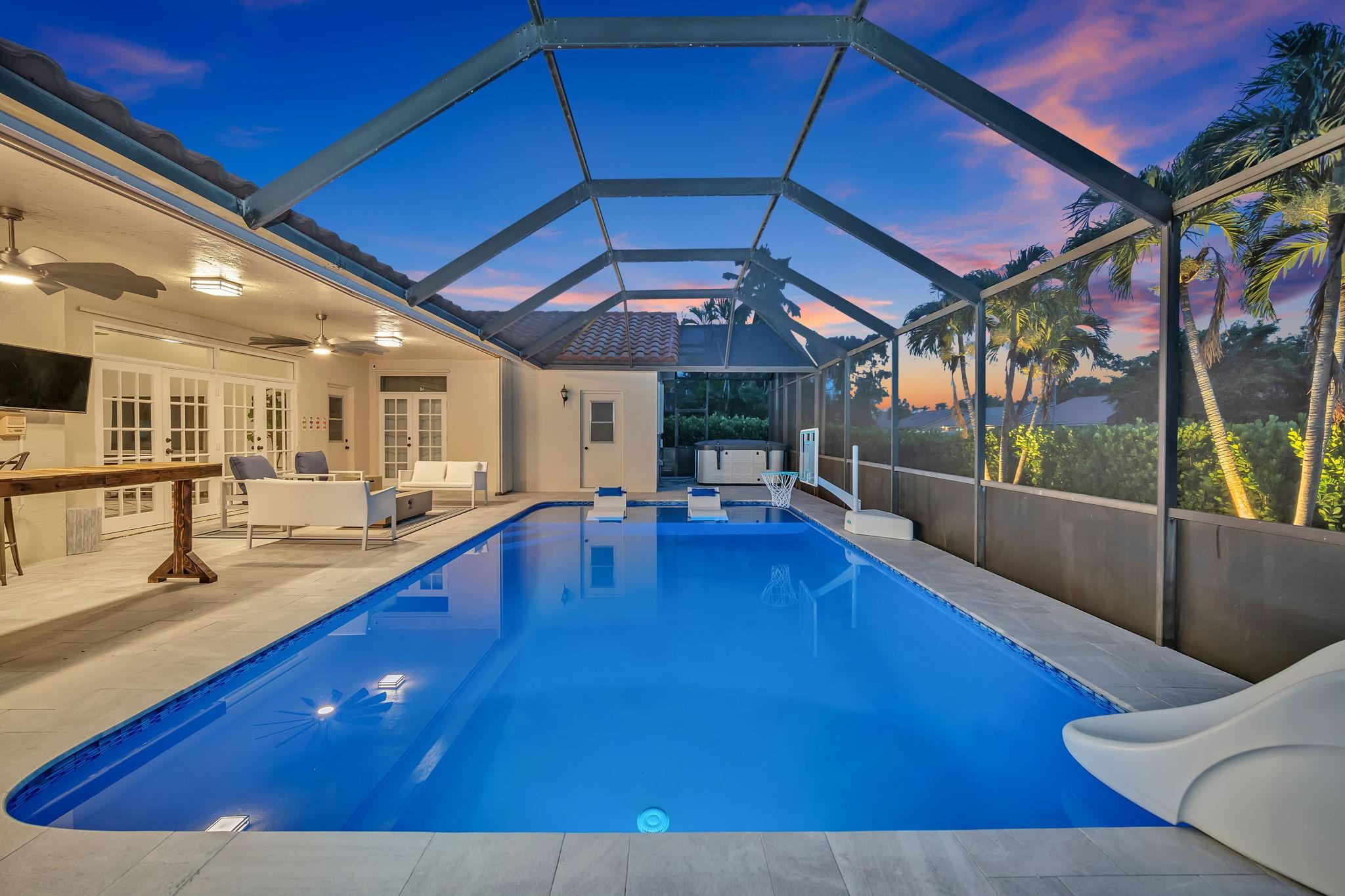 Experience the magic of evenings at your new home! This stunning gem offers more than just a house; it's a lifestyle. Imagine the possibilities in this newly renovated backyard including swim shelf, new pool heater, new salt system, outdoor kitchen, brand new above ground hot tub. newly renovated landscaping and landscape lighting. Renovated 3rd full bathroom, partial renovation of 2nd bathroom , new water heater, new sprinkler pump, and new pool pump. 4 bedrooms with a bonus den for office or playroom. Your investment is secure w/ well maintained roof sprayed & inspected yearly. Make this yours now!