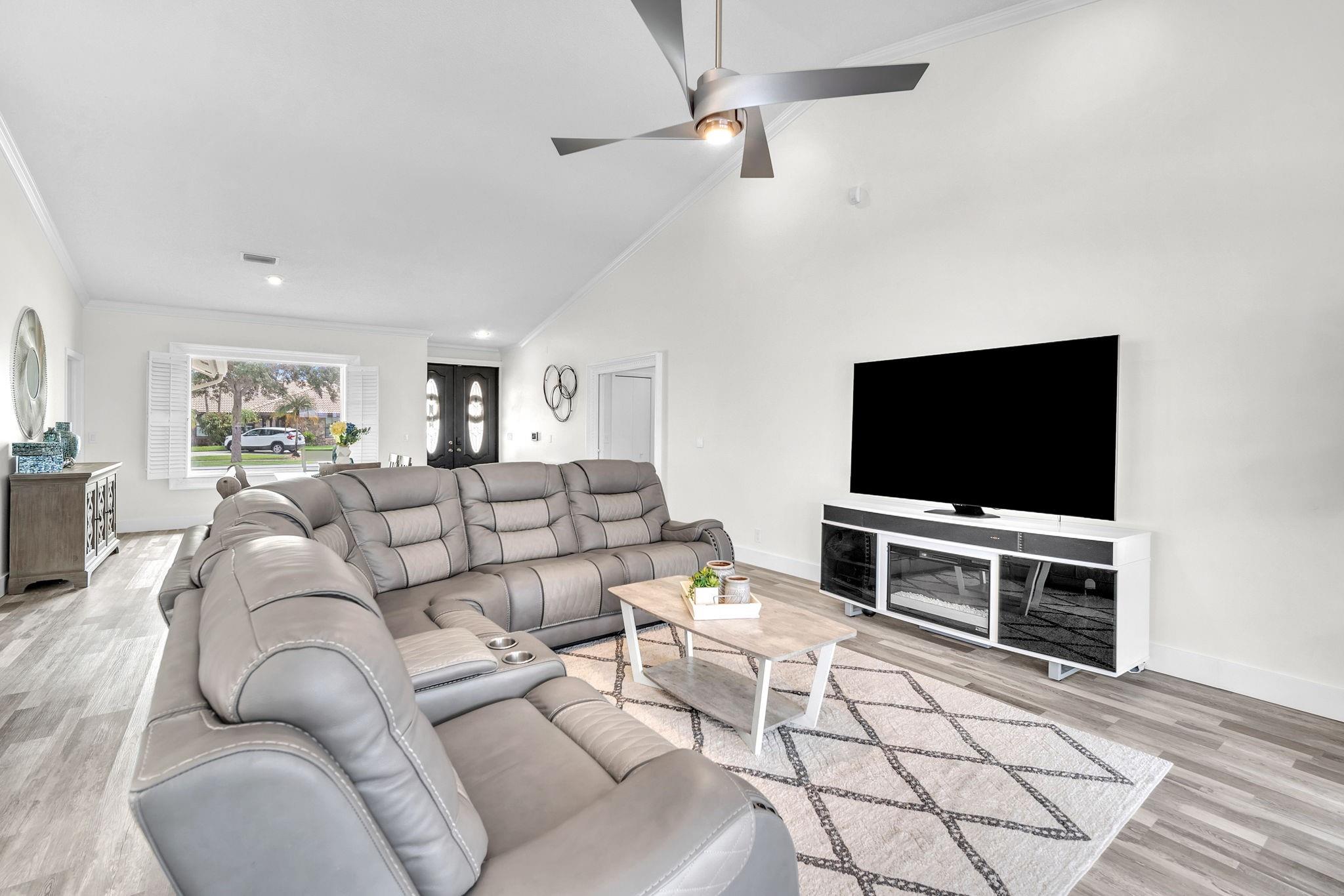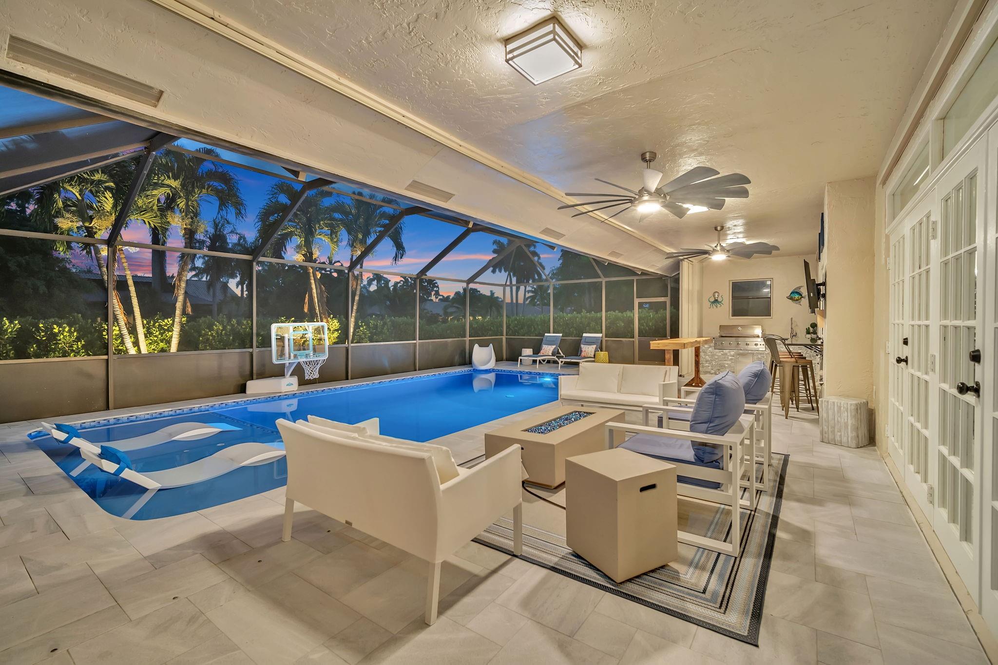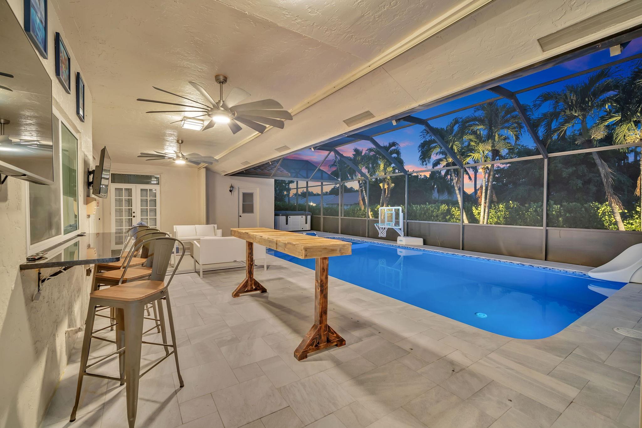Experience the magic of evenings at your new home! This stunning gem offers more than just a house; it's a lifestyle. Imagine the possibilities in this newly renovated backyard including swim shelf, new pool heater, new salt system, outdoor kitchen, brand new above ground hot tub. newly renovated landscaping and landscape lighting. Renovated 3rd full bathroom, partial renovation of 2nd bathroom , new water heater, new sprinkler pump, and new pool pump. 4 bedrooms with a bonus den for office or playroom. Your investment is secure w/ well maintained roof sprayed & inspected yearly. Make this yours now!