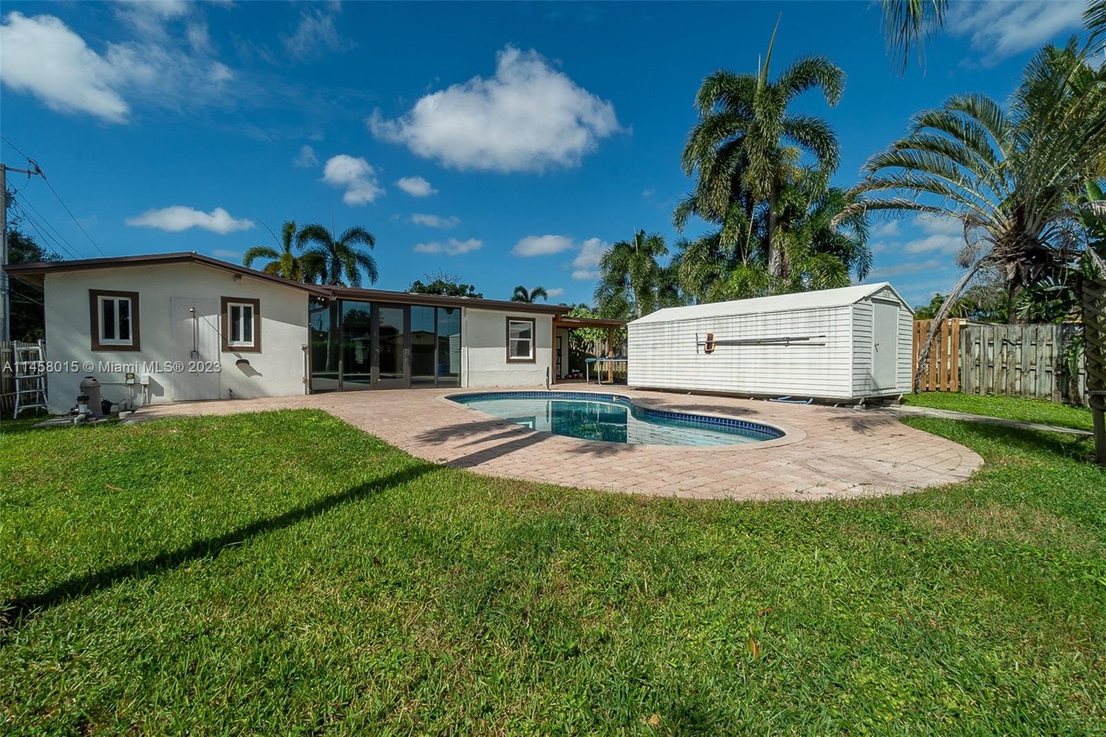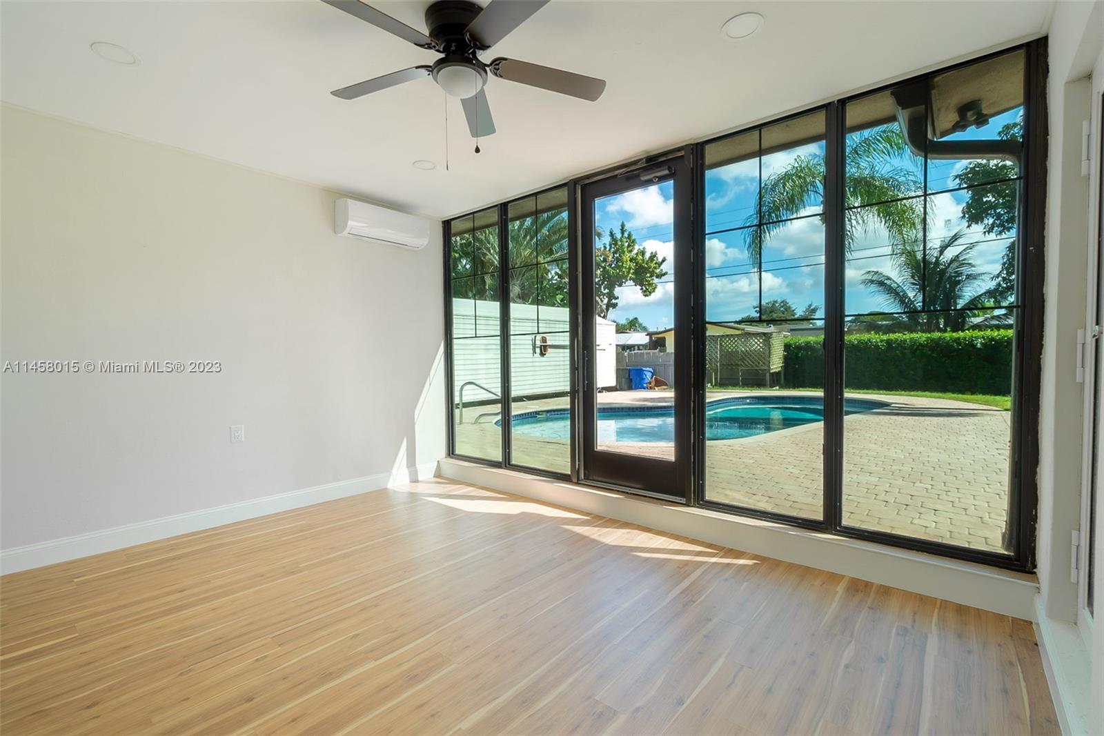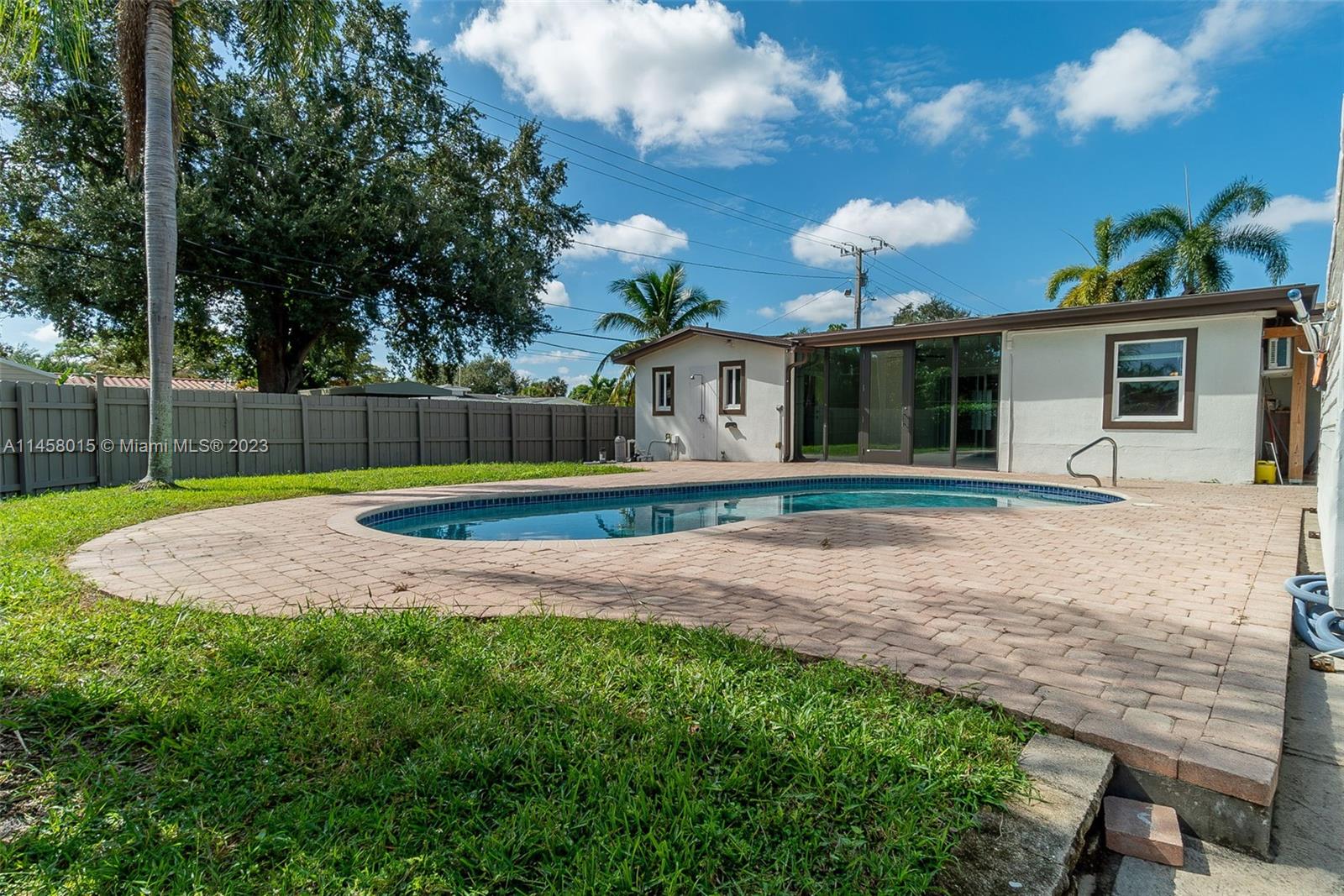 Superb, magnificent and beautifully remodeled 3/2/pool home on a great corner fenced in yard close to shops and houses of worship.Home features engineering floors t/out living area, porcelain floors in kitchen and vinyl laminate floors in family room, den and in the glassed in patio. Modern remodeled kitchen with SS appliances and granite counter top. Gorgeous remodeled bathrooms.Master bath has a walk in shower ideal for people with disabilities.All impact windows and doors t/out the exterior openings,newer roof and newer AC system.Note that the Den and the enclosed patio each have separate split AC units.Circular driveway with at least 4-5 cars parking spaces.Back yard has a xlarge shed and a gate to the alley ideal for storing other motor vehicles.This is a jewell not to be overlooked.
