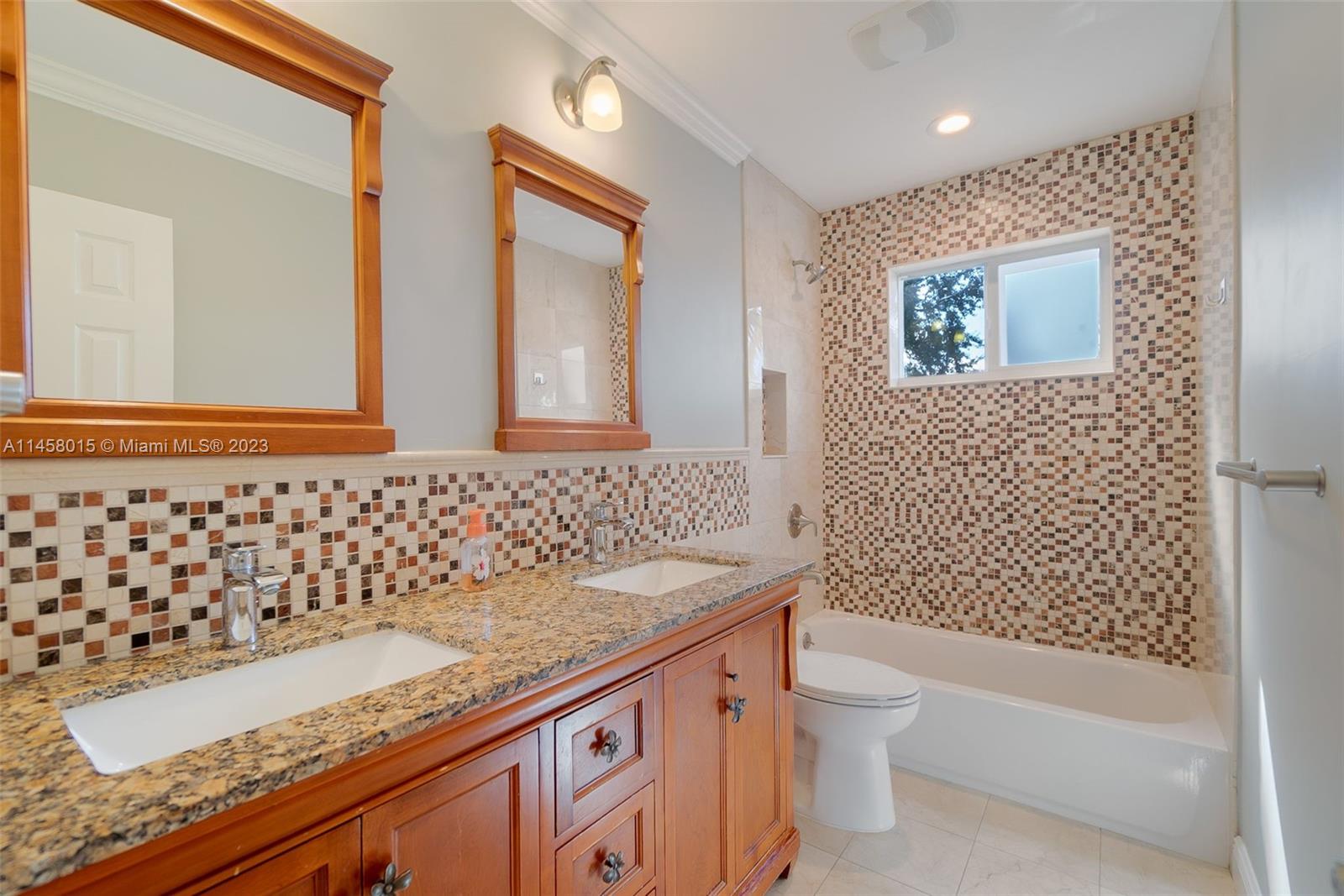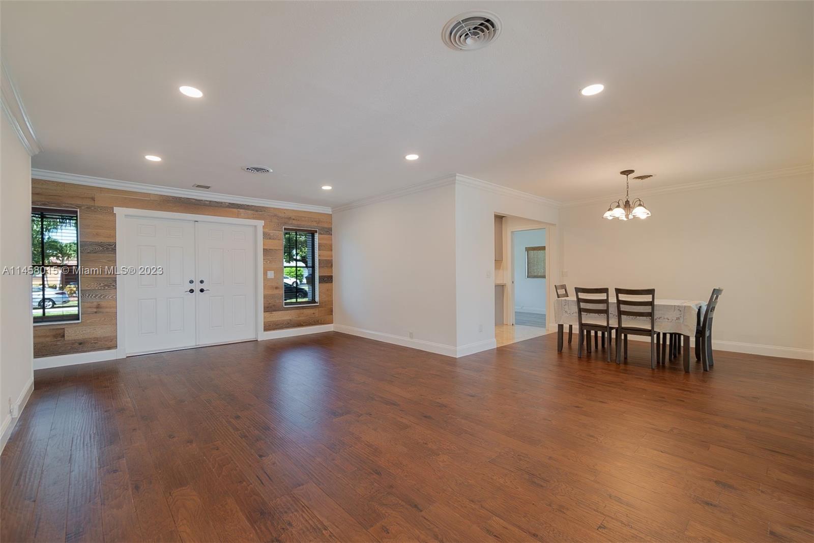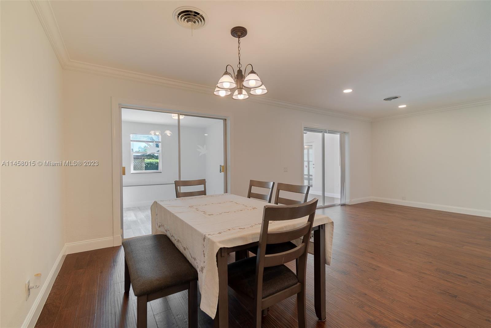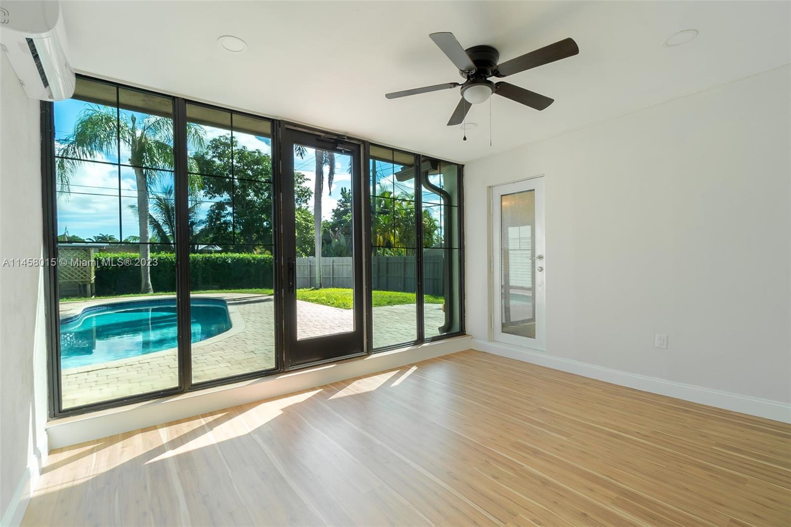 Superb, magnificent and beautifully remodeled 3/2/pool home on a great corner fenced in yard close to shops and houses of worship.Home features engineering floors t/out living area, porcelain floors in kitchen and vinyl laminate floors in family room, den and in the glassed in patio. Modern remodeled kitchen with SS appliances and granite counter top. Gorgeous remodeled bathrooms.Master bath has a walk in shower ideal for people with disabilities.All impact windows and doors t/out the exterior openings,newer roof and newer AC system.Note that the Den and the enclosed patio each have separate split AC units.Circular driveway with at least 4-5 cars parking spaces.Back yard has a xlarge shed and a gate to the alley ideal for storing other motor vehicles.This is a jewell not to be overlooked.
