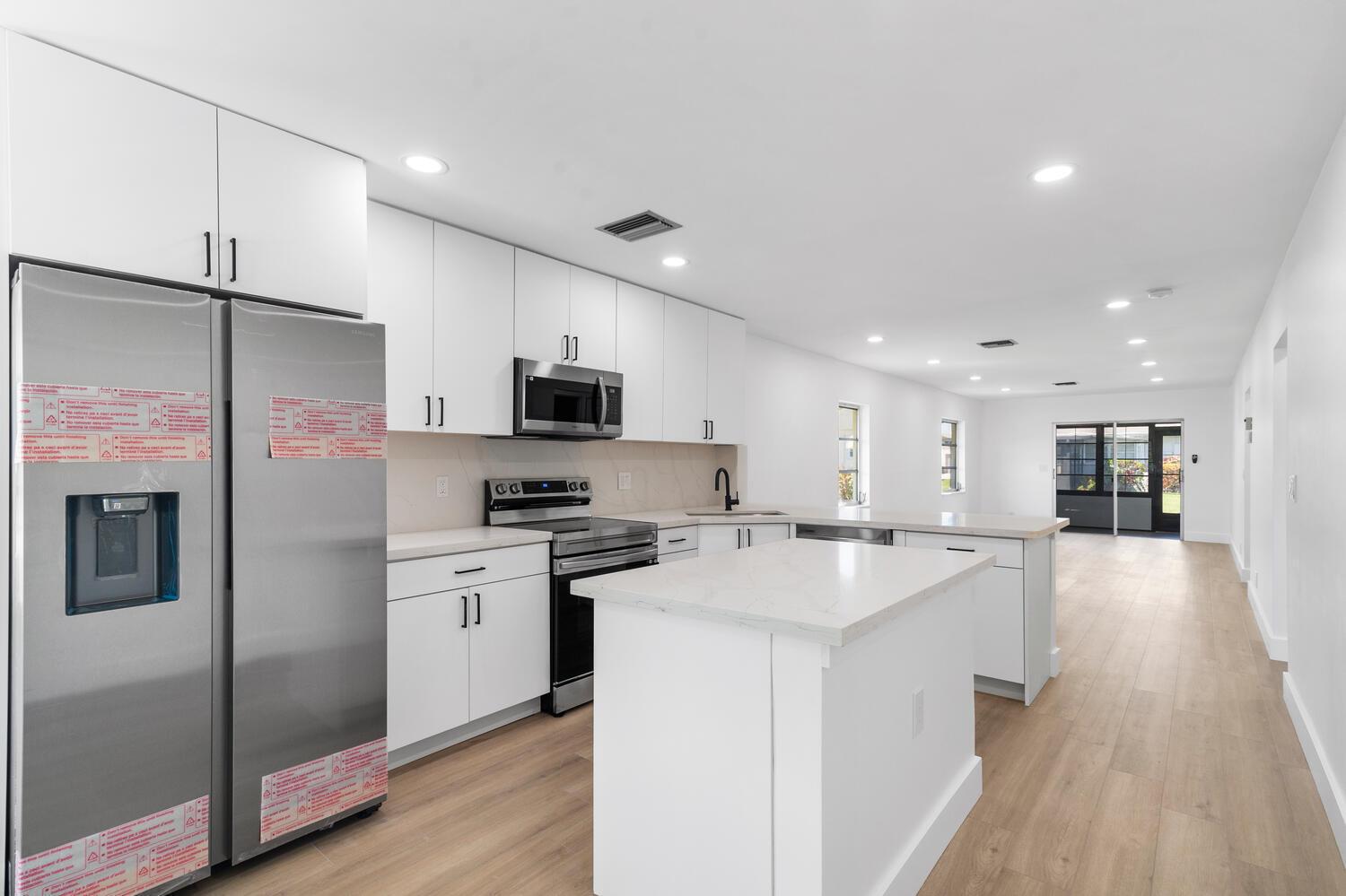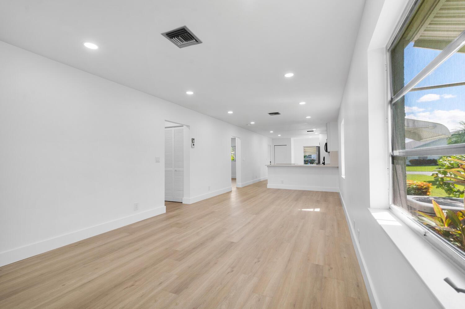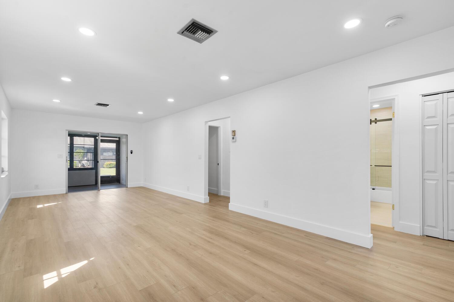 Newly remodeled 2 bed and 2 bath with new kitchen cabinets with quartz countertops, new stainless steel appliances , vinyl flooring throughout the entire villa, and new washer and dryer. Both bathrooms completely remodeled with frameless shower doors. This villa is located in the Cypress Lakes 55+ community. The Community offers amenities such as a golf course, putting green, tennis courts, pickleball, sauna and gym, pool, game and community rooms. The community is only 10 minutes from Downtown West Palm and 15 minutes from PBI Airport. It has close access to 95 and the Turnpike. Florida Beaches are only minutes away. Unit includes a completely enclosed back patio that can be used as a bonus room/office.