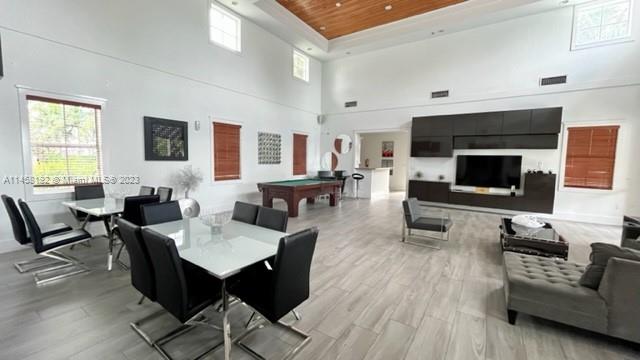 Impeccable 4 bedrooms/3 bathrooms townhouse in the exclusive community of Reserve at Doral East. Completely remodeled by designer. Bright spacious, open layout with high ceilings, amazing lighting. Wood floors throughout. Master bedroom with balcony and a large walk-in closet. Office and one bedroom have built-in furniture (stays in the sale). Beautiful outdoor patio, ideal for entertaining with lake front/view. Community allows 2 parking spaces per townhouse. Great location with grade A schools. This quiet and gated community features a Clubhouse with wonderful amenities such as a very well-equipped fitness center, a community swimming pool, indoor kitchen, massage room, kids play area. Community is gated with security system.