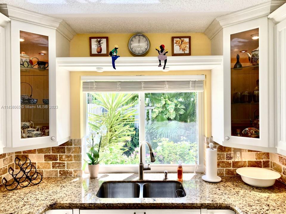 Home being sold "As Is". Expansive water views!! Vaulted Ceiling. 2/2 Town House. Split floor plan- 2nd floor Master Suite w/ walk-in closet, 1st floor on-suite with 2 large closets. Open loft great for office or media space. Double French Doors leading to oversized screened in patio, perfect for entertaining. Kitchen with custom wood cabinetry and granite countertops. Breakfast nook with sliding glass doors. Hurricane impact windows and doors. Attached outside storage room. Community pool. What I love about this home: Tranquil Garden with Amazing water views!