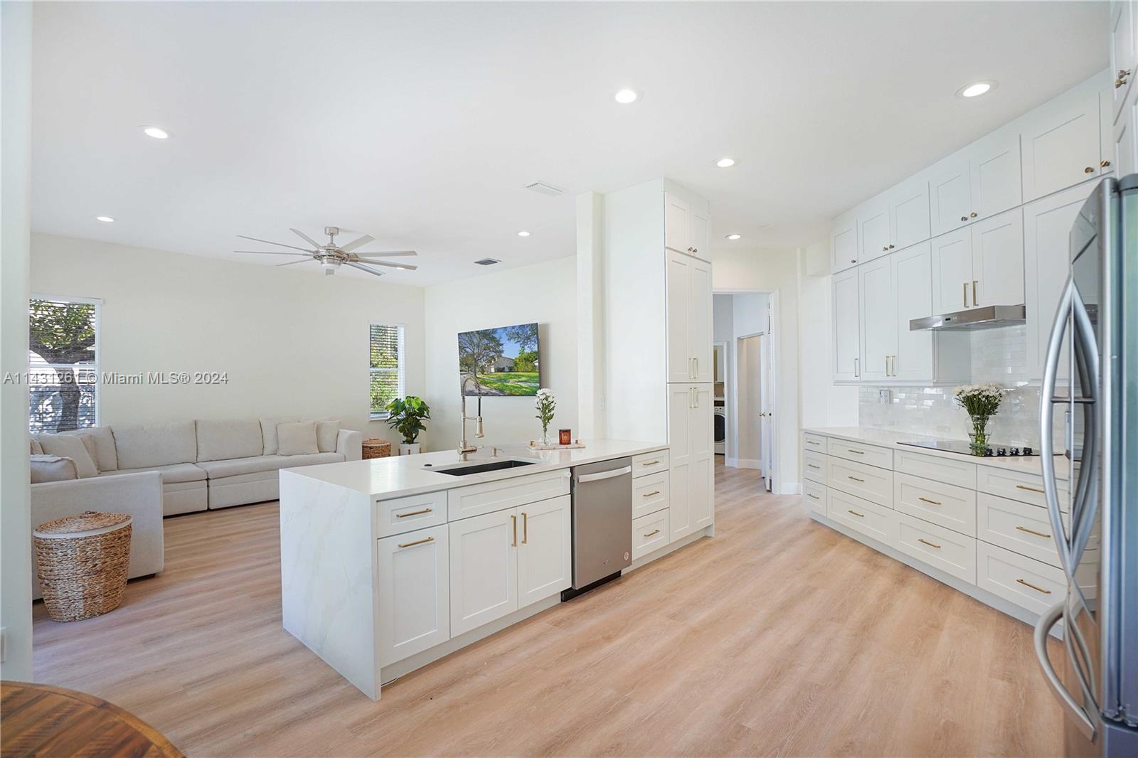 Single Family Home: 3,400 Sq. ft living area, 4 beds, 3.5 baths, 3-car garage. Brand new kitchen with pull-out cabinets, an oversized island, top-of-the-line appliances, vented range hood exhaust leading outside. New flooring, vaulted ceilings, crown molding. The master suite offers his and her closets, an open layout with plenty room for a pool. The HOA fee covers such boat ramp, cable, internet, landscaping for both front and back yards, an ADT home security system, irrigation sprinklers, and access to a clubhouse, gym, sauna, and lockers for both men and women, spa/hot tub, three pools (including one for kids and one Olympic-sized pool), a racquetball court, basketball court, tennis court, soccer field, and two playgrounds. The security cameras will be transferred to the new owner.
