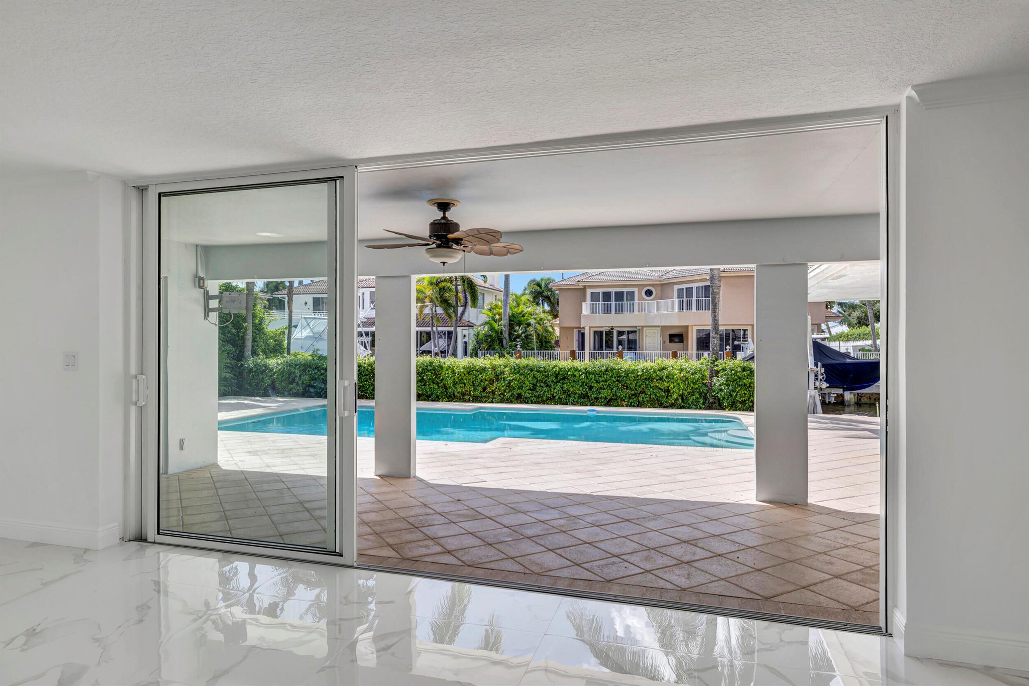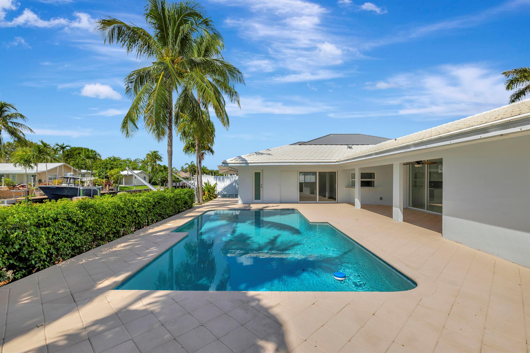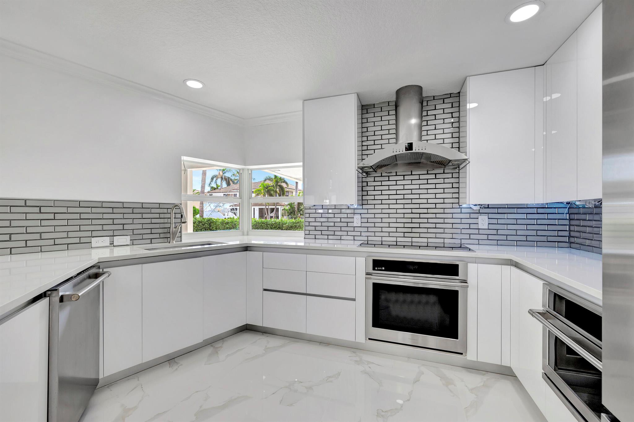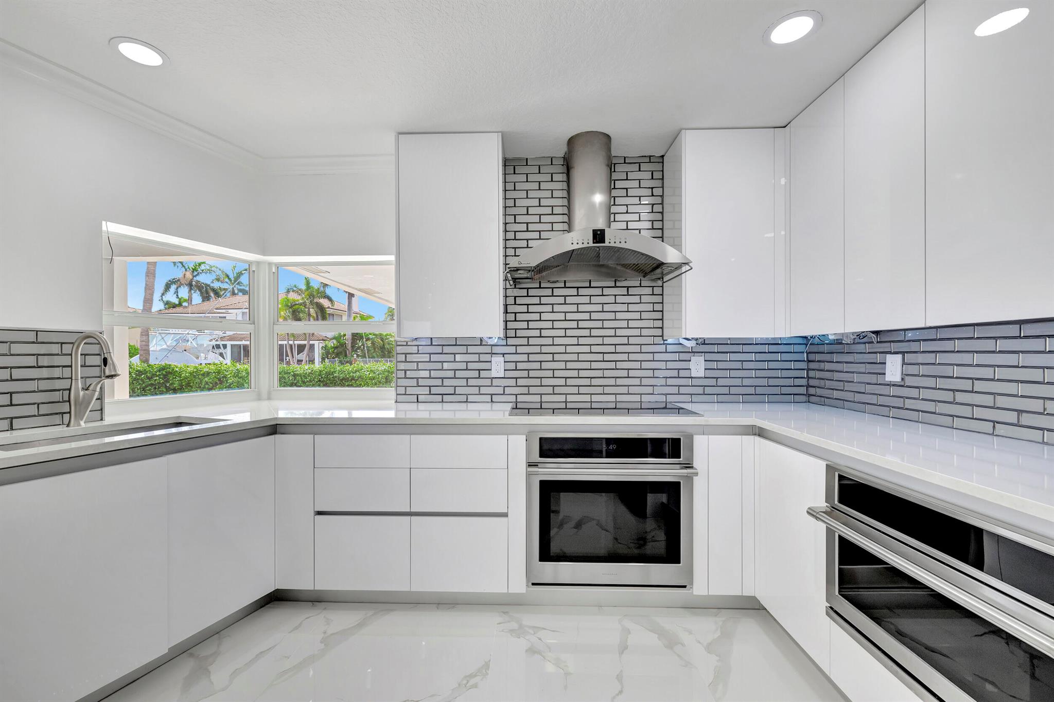 Presenting a stunning South exposure waterfront residence with 85 ft waterfront for sale in Boca Raton, FL. This impeccable home boasts 3 bedrooms, 2.5 baths, and a convenient cabana bath, making for a comfortable and luxurious living space. Meticulously remodeled from top to bottom, the residence exudes modern charm and elegance. A brand new, light-filled kitchen showcases top-of-the-line GE Monogram stainless steel appliances, perfectly complemented by all impact windows and doors for added security and peace of mind. Inside, enjoy the sleek beauty of extra-large porcelain tiles throughout the main areas, transitioning seamlessly to wood tile planks in the bedrooms. The newly updated pool area invites relaxation and entertainment, while brand new AC unit ensure optimal (MORE)