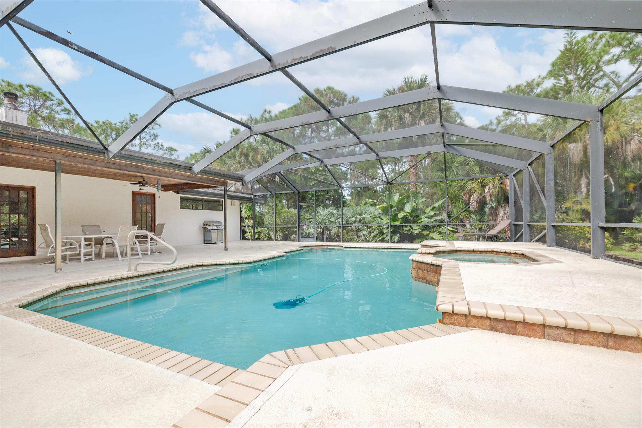 This beautiful, private oasis has 4 BR/3BA SFH on 1.32 acres. It includes a stocked pond, huge 2-story workshop - detached 4 car+ garage, large heated salt water pool and spa, brand new SS appliances, stone fireplace, mother-in-law suite, Kinetico water softening system with ultraviolet filter, brand new carpeting in the Main suite and a newly painted interior. Bring the kids, the boat, the RV, the plane, the cars and toys! Enjoy feeding the fish in your own stocked pond! It's the perfect place to raise a family, or retire to. If you love privacy, this is the home for you in The Acreage! Some furniture and other items, including a generator are negotiable. The previous owner built the house and took great care of it. You'll never want to leave!