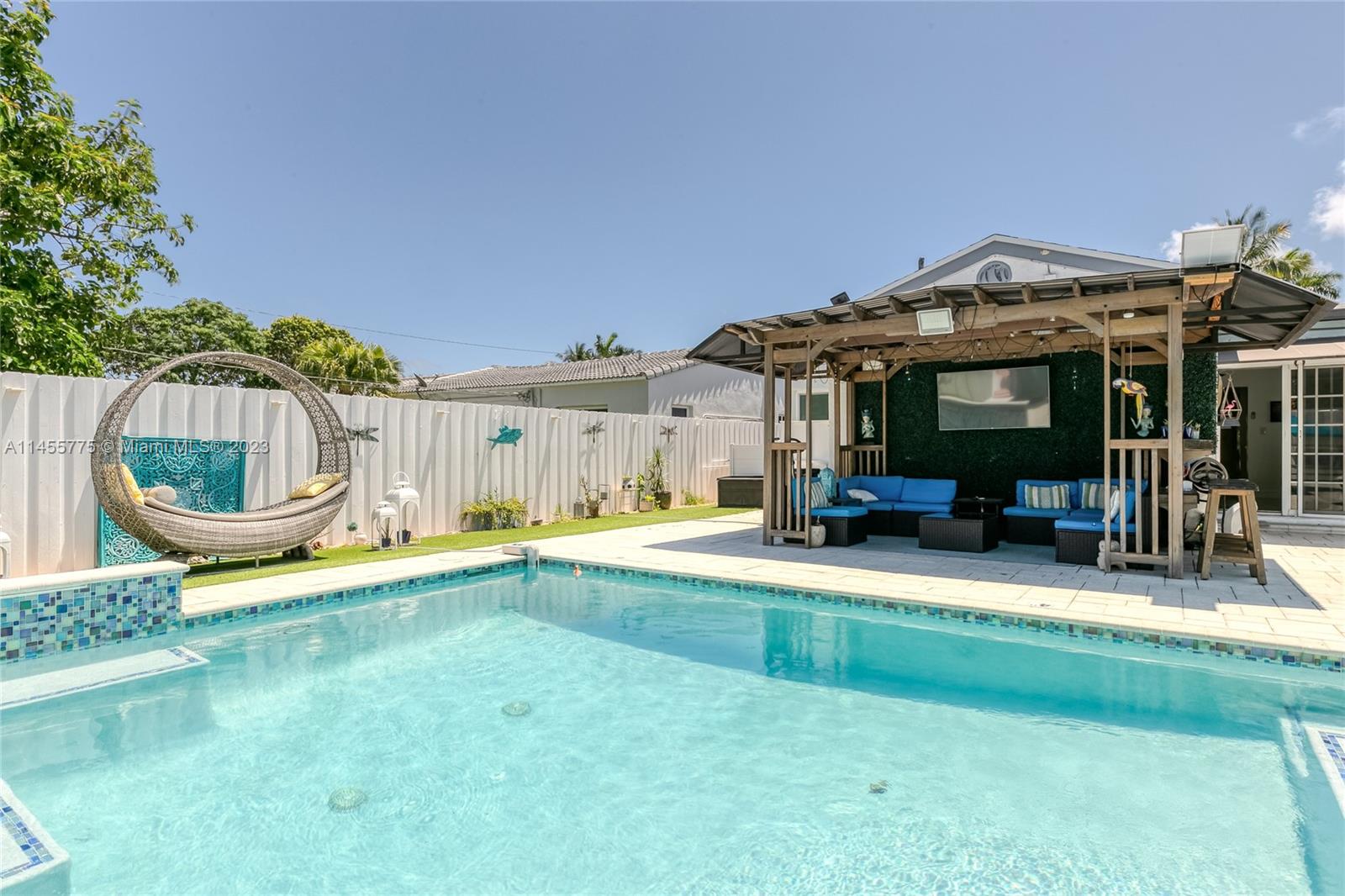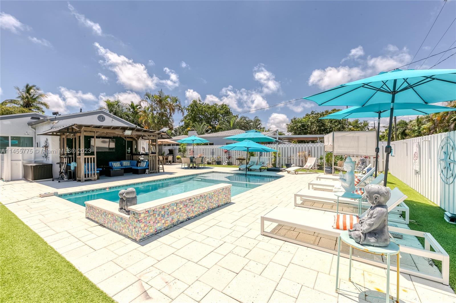 A Piece of Paradise in the heart of East Hollywood. Outside Summer Kitchen w/ Granite Counter, Boutique resort style at its most elegant, Salt Water Heated Pool Jandy/Aqualink; LED Lights, New Pavers throughout, Beautiful Landscaping, Double glass entrance, Hurricane proof Doors/Windows; New Porcelain Tile in Living Areas with New Wood Floors in Bedrooms. Completely Newer 2022 Daikin A/C, SS Appliances.