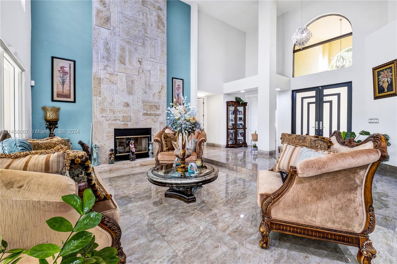 This amazing and gorgeous property is located in the prestigious Miami Country Club, on quite exclusive cul-de-sac road with a marvelous salt water pool with jacuzzi overlooking the golf course. NO HOA. This house features 5 bedrooms, 3 ½ bathrooms, office(can be used as a bedroom).Huge open concept living areas with 3 car garages and a driveway for up to six more cars.The spacious bedrooms feature walk-in closets, offering plenty of storage space.Impact windows and doors make this home safe, secure and energy efficient.Kitchen with granite counter tops, stainless steel appliances, double oven and wine fridge.Motorized banded shade in windows and doors.Central vacuum.Sprinklers system. Many tropical fruits and beautiful landscaping. Come and discover all this beautiful house has to offer.