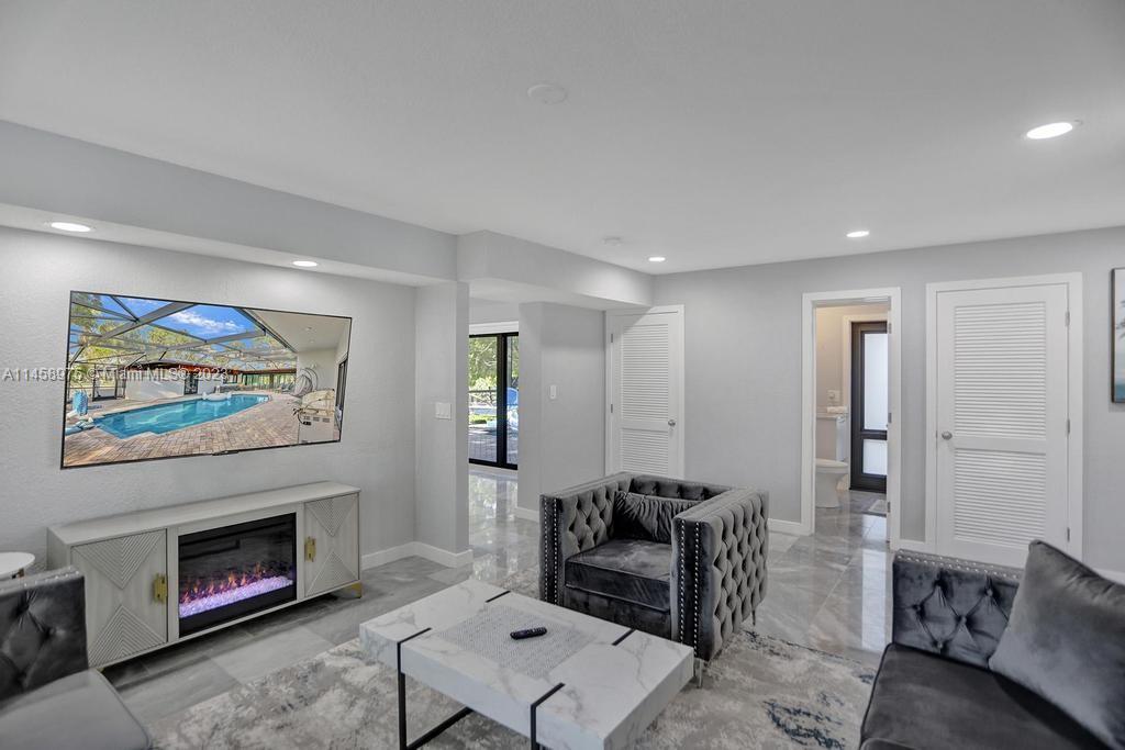 Welcome to this Peninusla waterfront oasis. The massive 16,000 sq foot lot operates closer to 20,000 when factoring in land easements and sits at the end of a quiet Cul-de-sac. Almost 450' of waterfrontage.7 bedroom 4 bathroom plus Gameroom on a Peninsula Heated Pool screened the center of your home open to all rooms incredible views and vista from every space outdoor shower and brand new furnishing and interiors outdoor fireplacer this is your dream home Large 7BR/3.5 bath home with 3576 sq feet under air and massive 600+ sq foot garage. All impact glass Newer 10, 000LB boat lift. Wide water views from multiple vantage points. An incredible combination of views and privacy. Jacuzzi T, 10000 LB boat lift Huge 2-car garage (600 sq feet) and home is fully furnished.