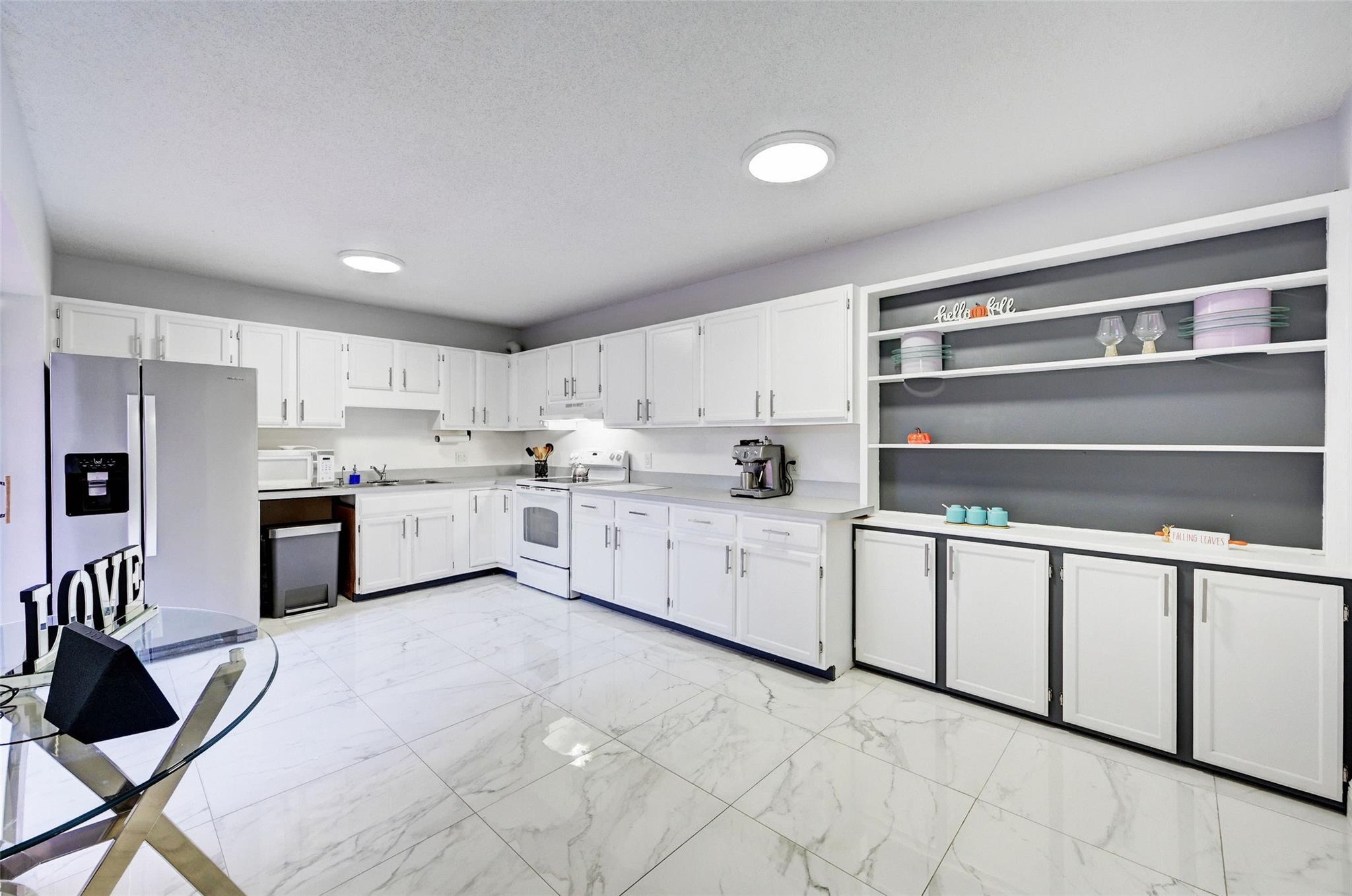 Elegant townhouse in a desirable Cooper City. Beautifully designed interior. Open-concept layout creates a seamless flow throughout. Large kitchen w/ plenty of cabinets. Porcelain tiles on 1st floor, gorgeous natural stone wall & LVP on stairs and 2nd floor. Head upstairs to discover both bedrooms with their own private bath. Corner unit, providing a light-filled interior and ample outdoor space for you to enjoy. Create your own private sanctuary in the fenced-in courtyard - perfect for hosting barbecues, gardening, or simply enjoying the sun. Camelot Gardens offers a community pool and is nestled within Rock Creek which offers residents playgrounds, basketball courts, walking paths with tree-lined streets and water views. Close to shopping, medical facilities, and major highways.