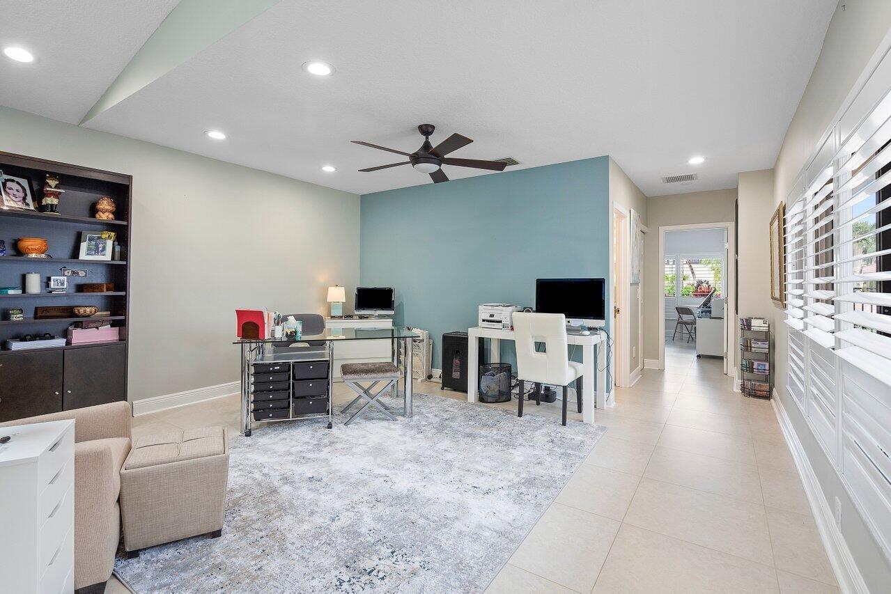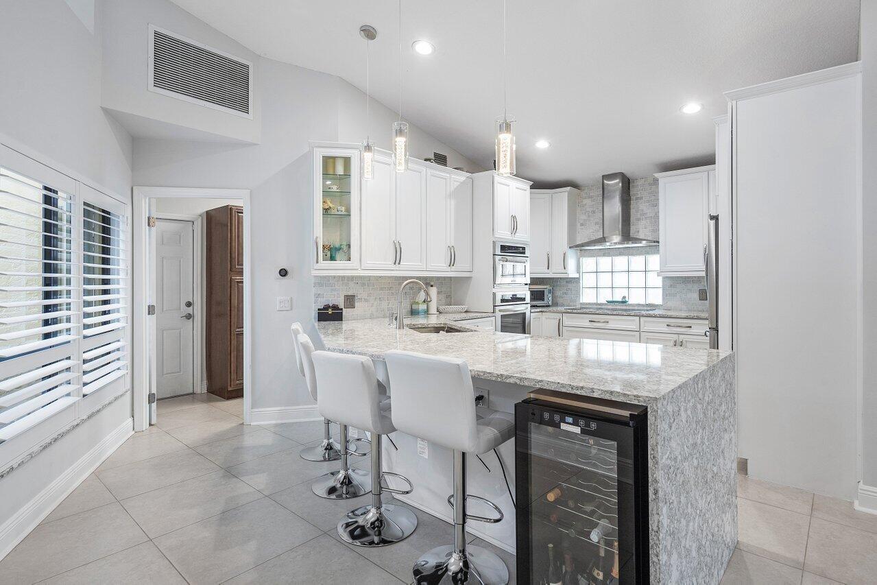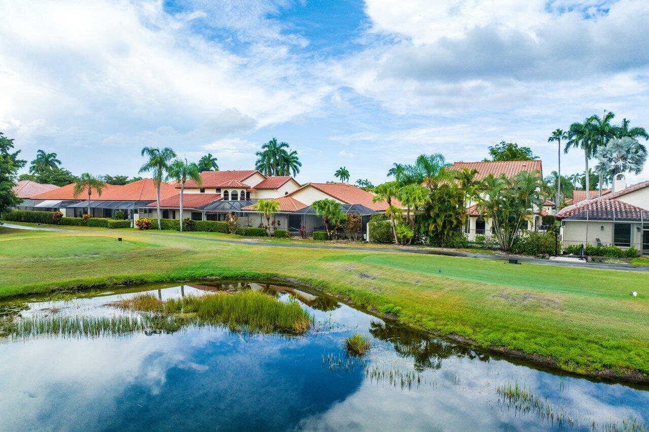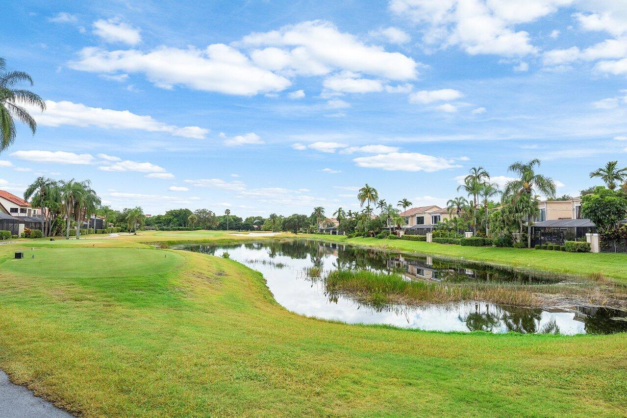 This remodeled Palmera model overlooks both the lake & golf course in beautiful Boca Pointe, a gorgeous membership optional country club gated community with many amenities. Some great features of this freshly painted home include neutral tile throughout, gorgeous remodeled kitchen featuring white wood cabinetry, new backsplash & quartzite countertops, stainless appliances, new lighting, newer A/C, new alarm system & new aluminum gates in both the front & back . The open floor plan lends itself to modern living & boasts views of the pool, golf course & lake from the living & primary BR areas. The 3rd BR is open as a den/studio/office but could easily be converted. The pool has a new heater. Enjoy the security & serenity of a private club without the fees.