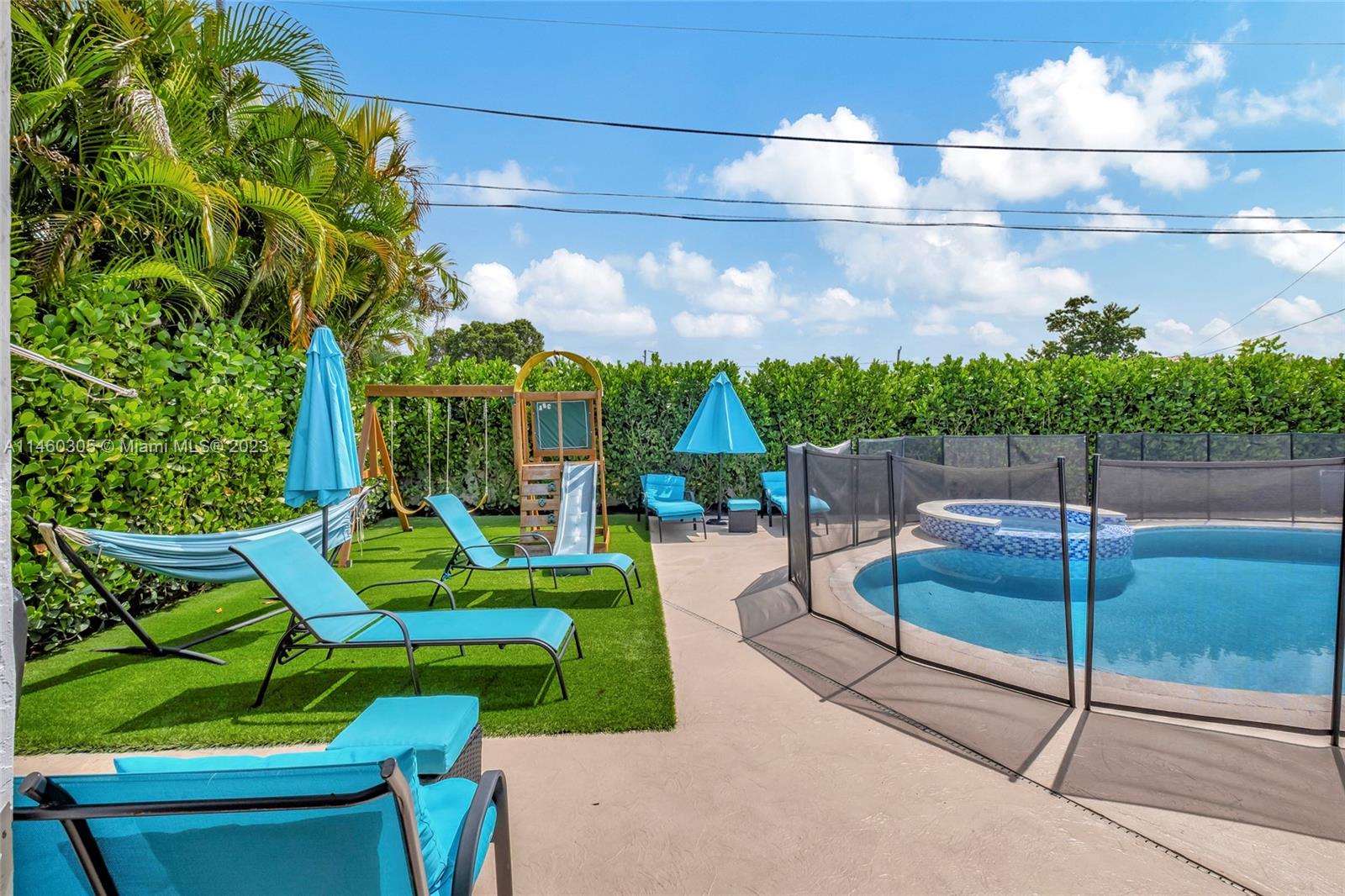 Beautiful and spacious 5/3 pool home in Miami Dade Unincorporated Palm Springs North. The house is excellent, the backyard better with two covered terraces and a lovely pool with spa. The property is located close to I-75 and Palmetto Expressway. Accordion shutters for storm protection. Two AC Units. City natural gas for gas tankless water heater and pool gas water heater. High-efficiency appliances. Modern sprinkler system with a well for the water. No rental restrictions. Enjoy the benefits of being right next to Miami Lakes without the City restrictions and Taxes. Parking boats or RVs are permitted.