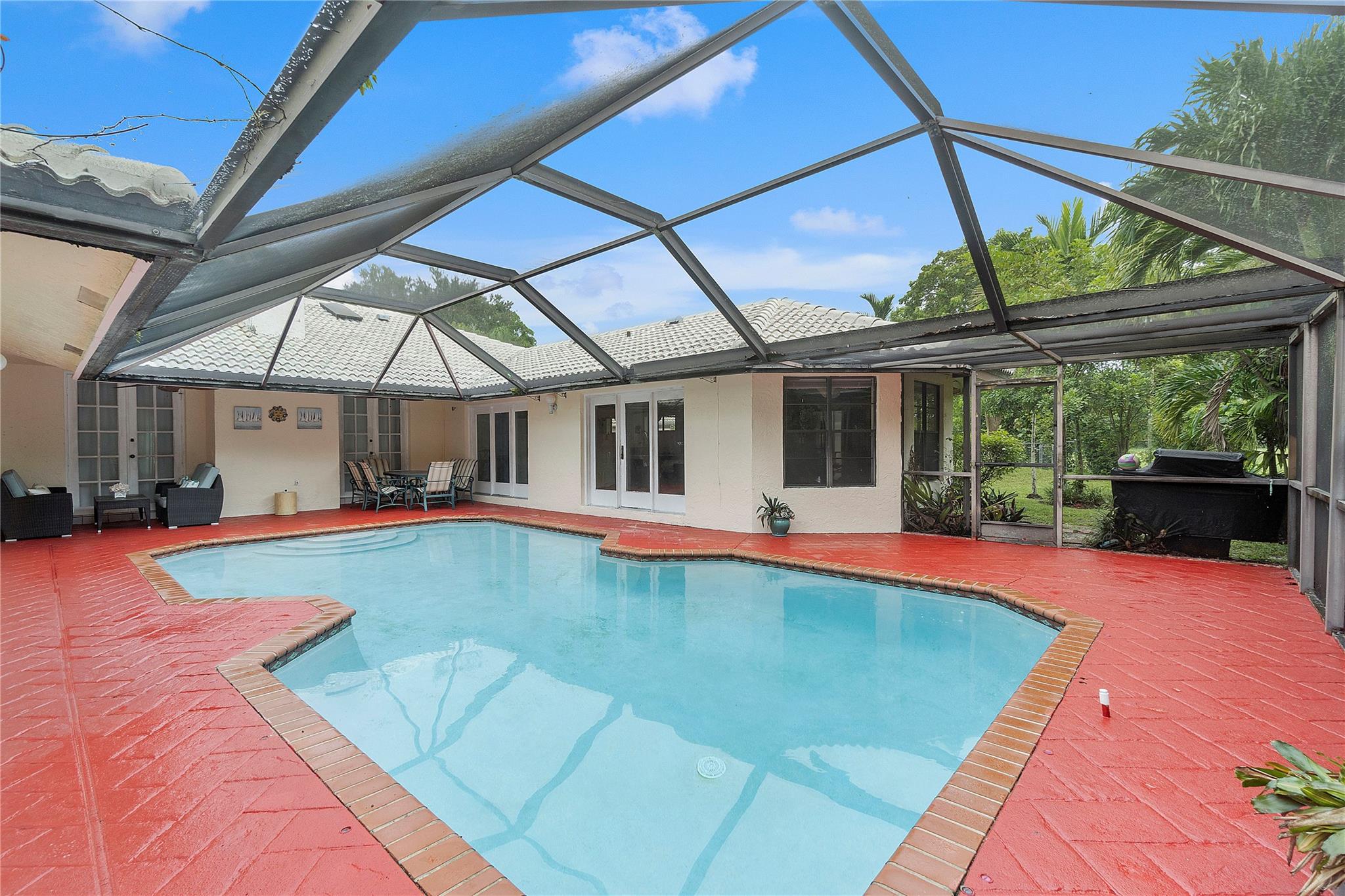 This beautiful 4 bedroom and 2 bath home is on a large lot in sought-after neighborhood with no HOA. There is plenty of room for the whole family to enjoy from the open concept large main living area with vaulted ceilings and skylights that bring plenty of natural lights inside. Radiant spacious kitchen with granite counters and stainless steel appliances, a central courtyard creating a strong connection between all living zones. Dual zone AC. Situated right behind Cypress Hammock Park! ** Home needs new doors and light fixtures*** Selling as is***