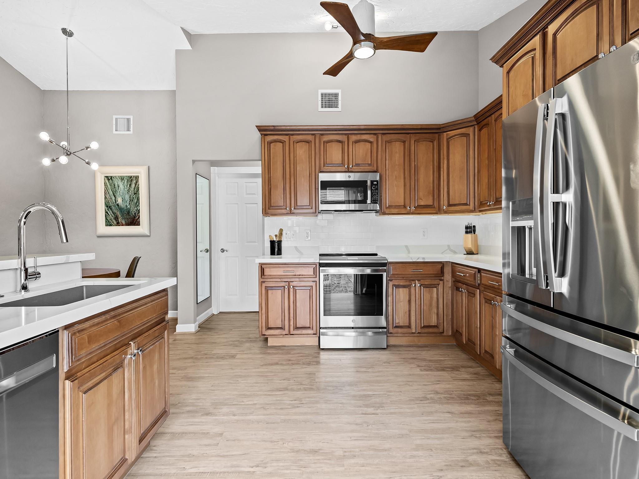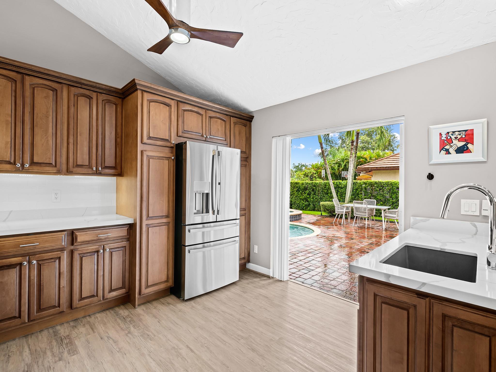 Beautiful 3/2 home in Oak Knoll Estate. Renovated kitchen with quartz countertops and new stainless appliances. Gorgeous new Master Bath. New flooring throughout. New AC installed in 2022. All windows, front doors, and patio/french doors are impact glass. Interior laundry room w/new washer & dryer, 2 car garage with paved driveway, heated saltwater pool (new pool heater), large and retractable awning in backyard. 2019 Roof. HOA fees include membership to Pine Island Ridge Country Club featuring golf, tennis, two pools, a gym, banquet hall, two restaurants, & bars. The neighborhood is adjacent to Pine Island Ridge Preserve with 5 miles to enjoy walking, biking, & horse trails. This residence is close to I-595, shopping areas, universities, airport, & walking distance to top-rated schools.