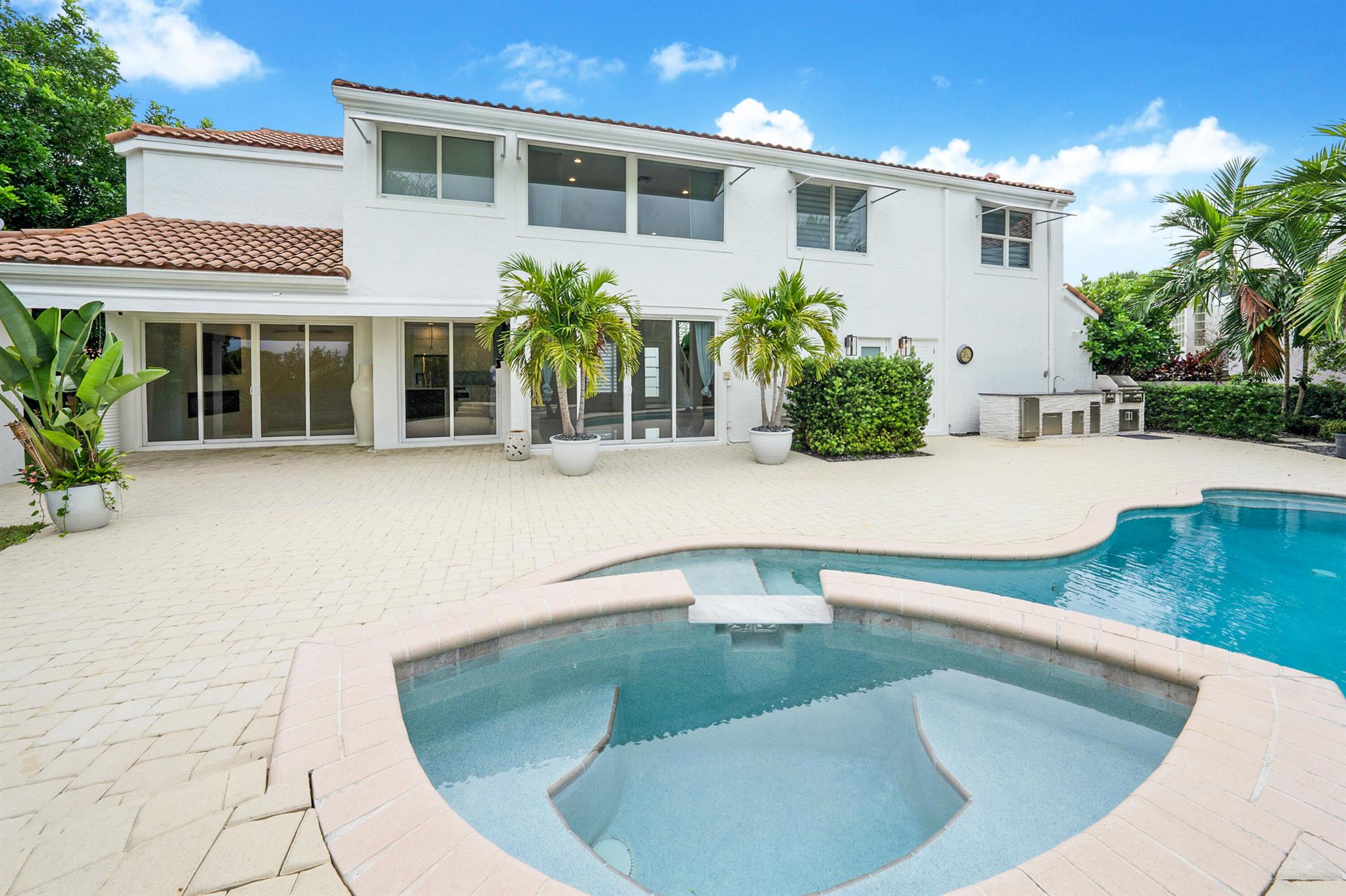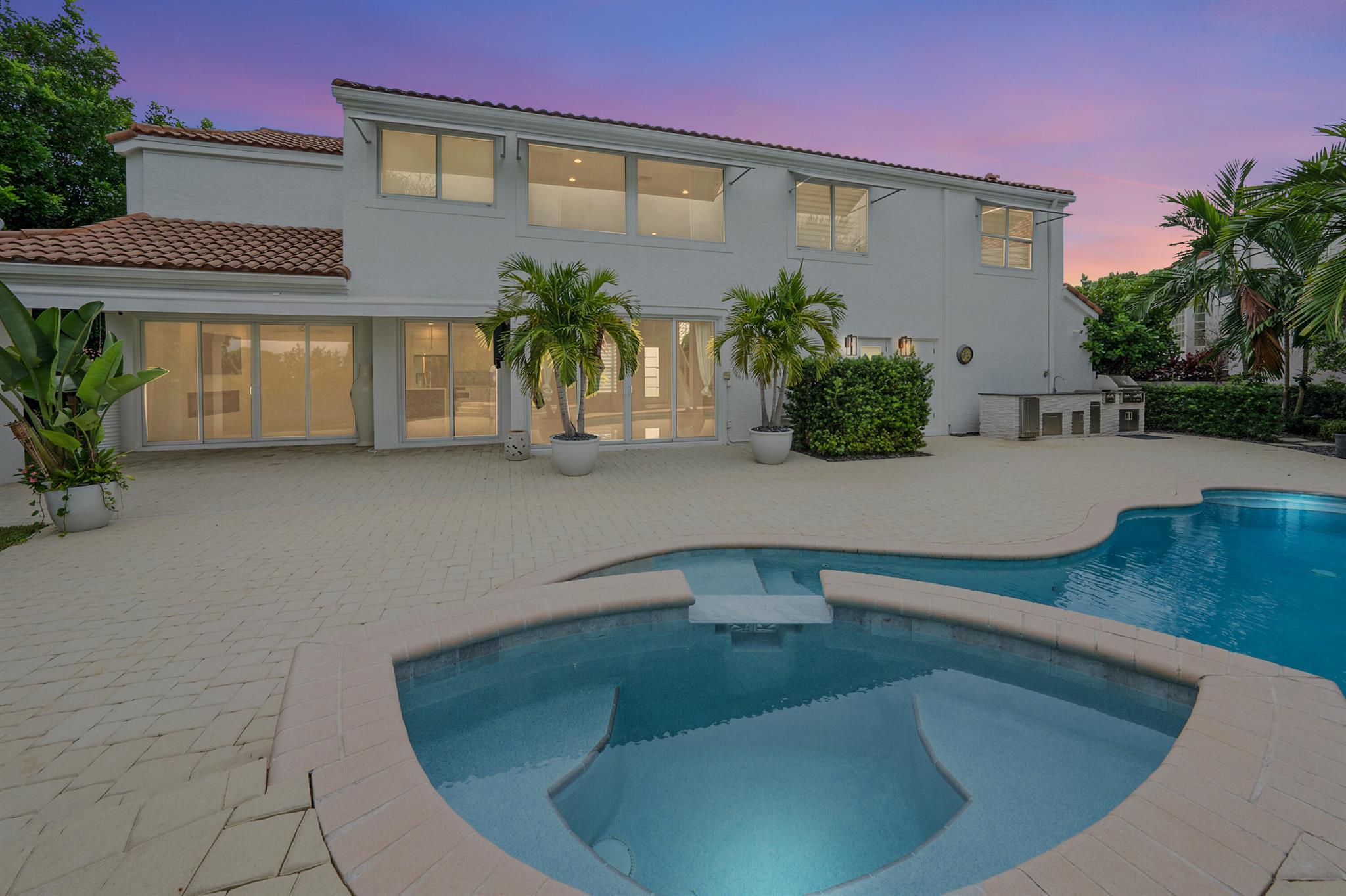 17427 Tiffany Trace: Guard gated, Boca Raton Country Club Jewel Tucked away in a serene cul-de-sac within the meticulously maintained Tiffany Trace community. No mandatory membership but golf, tennis pickleball, and bike trails are avail. 17427 Tiffany Trace stands out from the rest as a true gem. Situated on a double-wide lot, with a tranquil resort-like ambiance, this property offers an oasis of peace and serenity, free from the hustle and bustle of traffic and noise. This home is a testament to thoughtful modern design, with well-considered upgrades totaling over $300,000. Encompassing 2200 square feet, vaulted ceilings, 3 bedrooms, Loft / covert 4th bed, 2.5 baths. A resort-like backyard with a beautiful pool/spa/ BBQ Pit, sunrises, and sunsets adorn this manor. Best around!