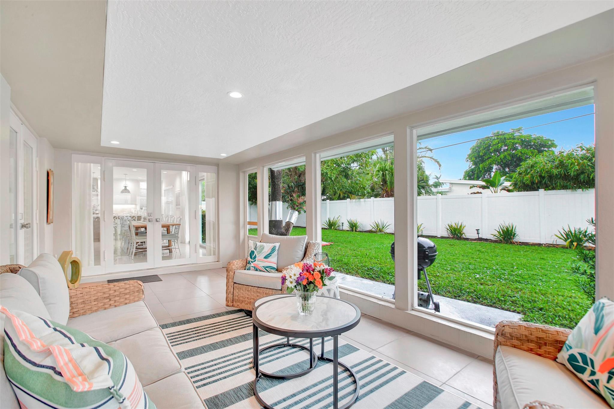 This meticulously maintained home is located in the gated, beachside community of Bel Air. The house features numerous updates, including a brand-new, beautiful kitchen with an extended island. You will enjoy the porcelain tile floors throughout the home, a practical interior laundry room, impact windows and doors for added safety, as well as a single-car garage. You will experience Florida living at its best with the spacious 24 x 10 screened room that extends the living space. The paver circular driveway adds curb appeal and provides plenty of parking spaces. There's room in the backyard for your personal touch, such as a garden or a pool. Pompano Beach offers a comfortable, coastal lifestyle. Make this house your home today.