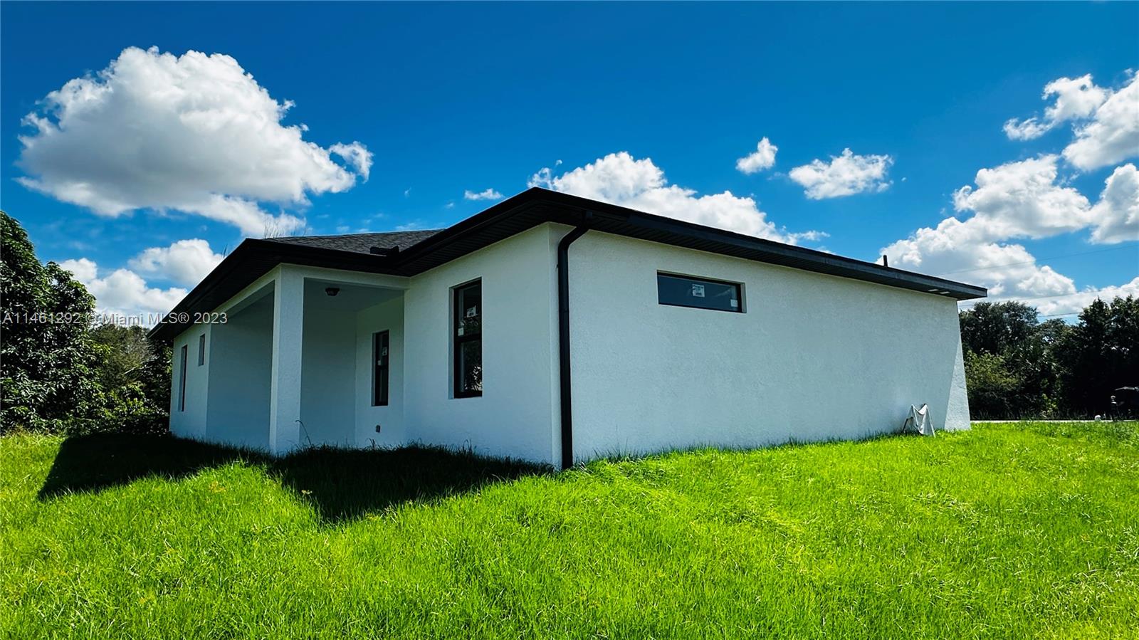 Gorgeous new Construction Home built on 1.14 acres of 100% uplands. Featuring 3 bedrooms + den, 2 baths, 2 car garage and asphalt driveway. As you enter this exquisite home, you'll be greeted by a spacious open floor plan that seamlessly connects the living, dining, and kitchen areas. This stunning home accentuates modern elegance with 10' ceilings, 32x32 beautiful porcelain tile, custom white wood cabinets, stainless-steel appliances, quartz countertops and a spectacular waterfall center island overlooking the family room and dining area.