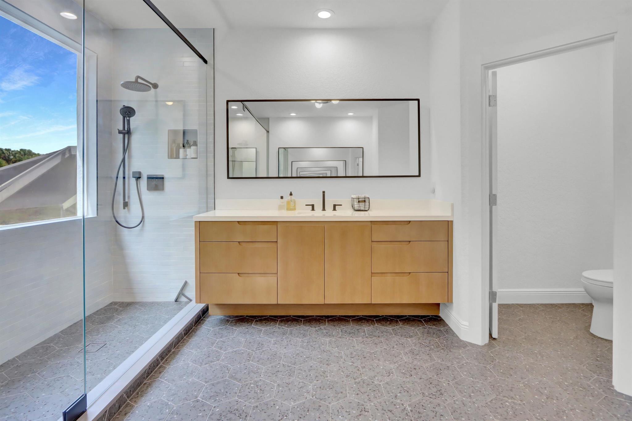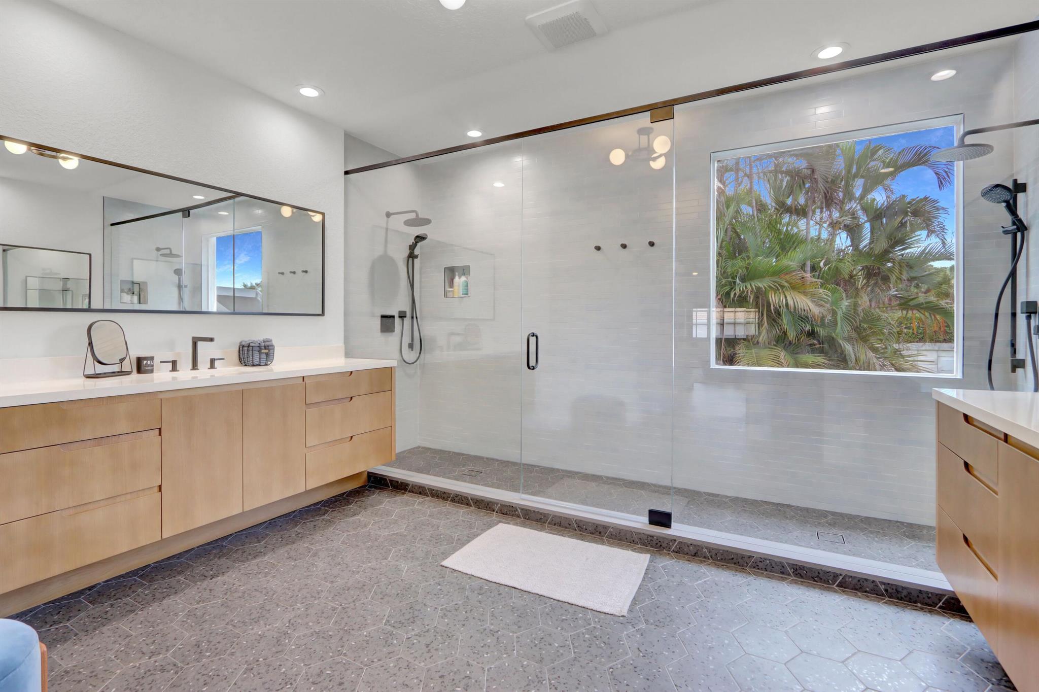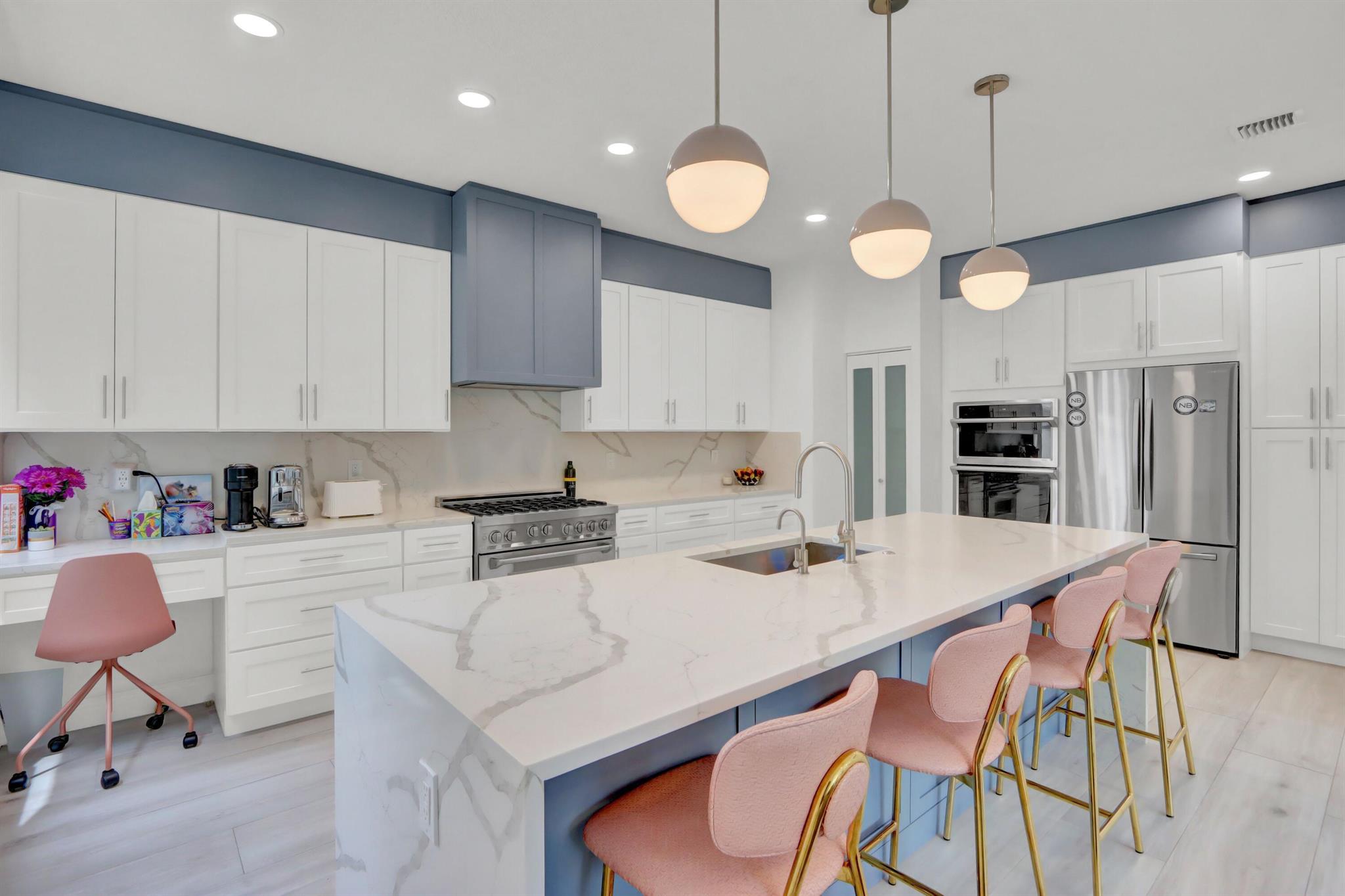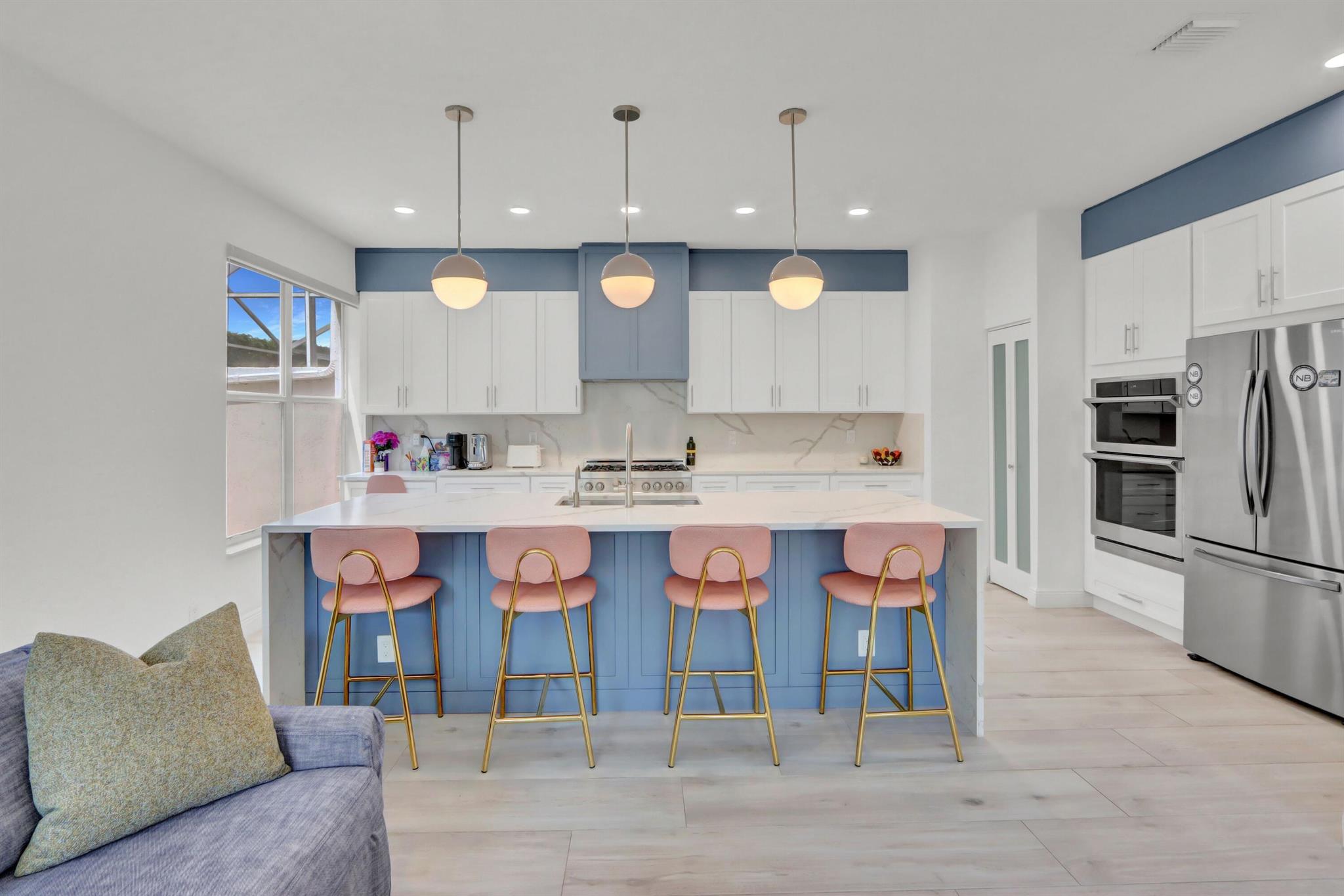 Great space & sunlight! This remodeled 2-story pool home of 5 bedrooms & 4 baths features new impact front doors;volume ceilings;new fixtures & LED high hats;wood-grain porcelain floors;open & spacious contemporary island kitchen with 42'' white & gray shaker-style cabinets,wine cooler & pantry,quartz counters & backsplash,stainless steel appliances;new doors throughout;custom window blinds & closet design;newer washer & dryer.All bathrooms are remodeled with contemporary flair.Water filtration/reverse osmosis; A/C UV filters;hospital-grade air duct filtration. Roof replaced in 2022. Preventative termite contract but no evidence of termites. The inviting outdoor space features a waterfall into the pool.Pool was resurfaced & tiled and has a child fence.