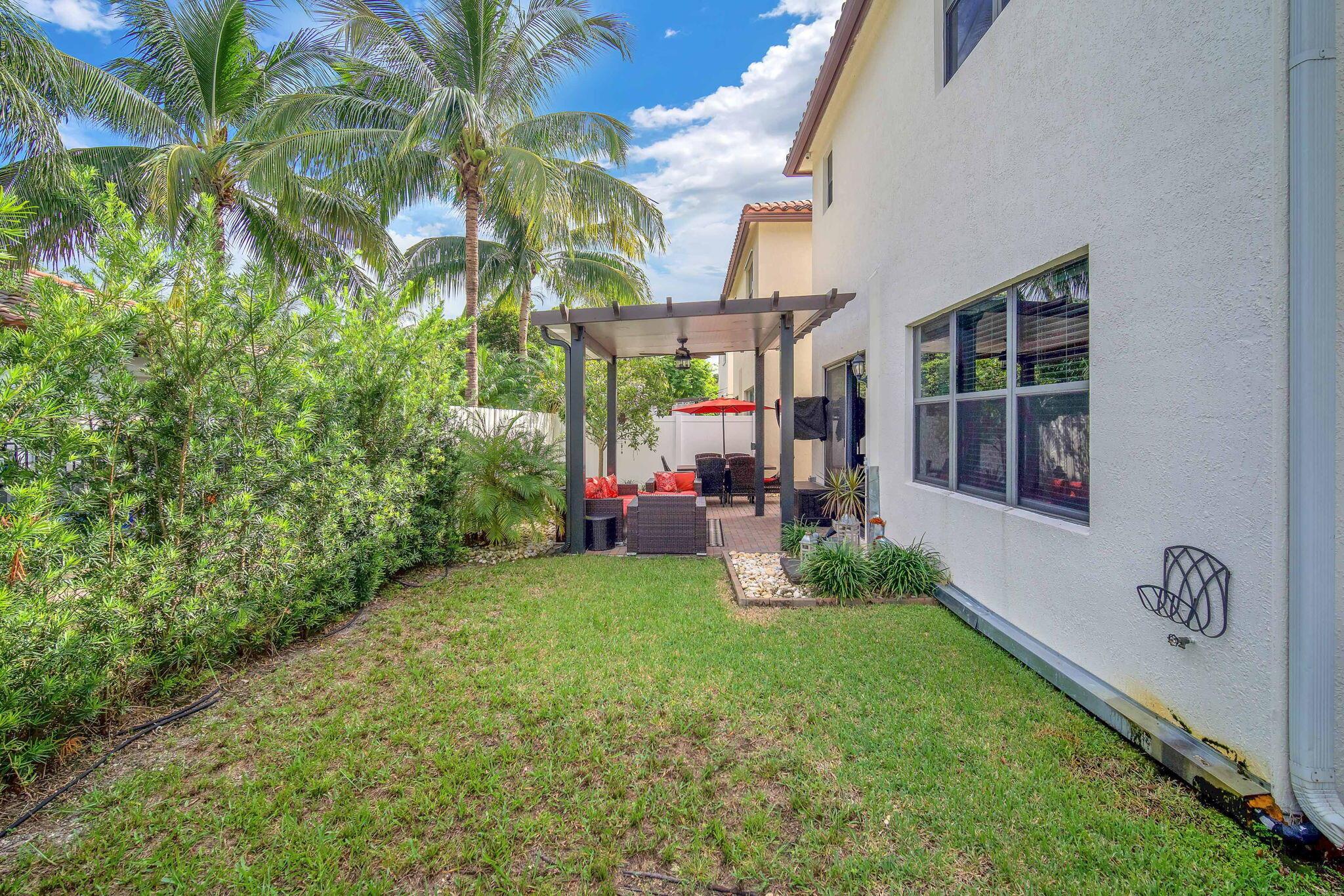 Welcome to your dream home in the picturesque Waterview community! This stunning residence offers the perfect blend of comfort, convenience, and security. As you approach the property, you'll immediately notice its prime location at the corner of the street, providing extra privacy and a spacious feel. The well-maintained exterior features a charming pergola out back, where you can relax and enjoy the beautiful Florida weather. The backyard is your own private oasis, perfect for outdoor entertaining or quiet evenings under the stars.Upon entering the home you'll be greeted by a warm and inviting interior. The main living areas boast beautiful tile and hardwood floors, providing a sense of elegance and durability. The living room is spacious and filled with natural light.
