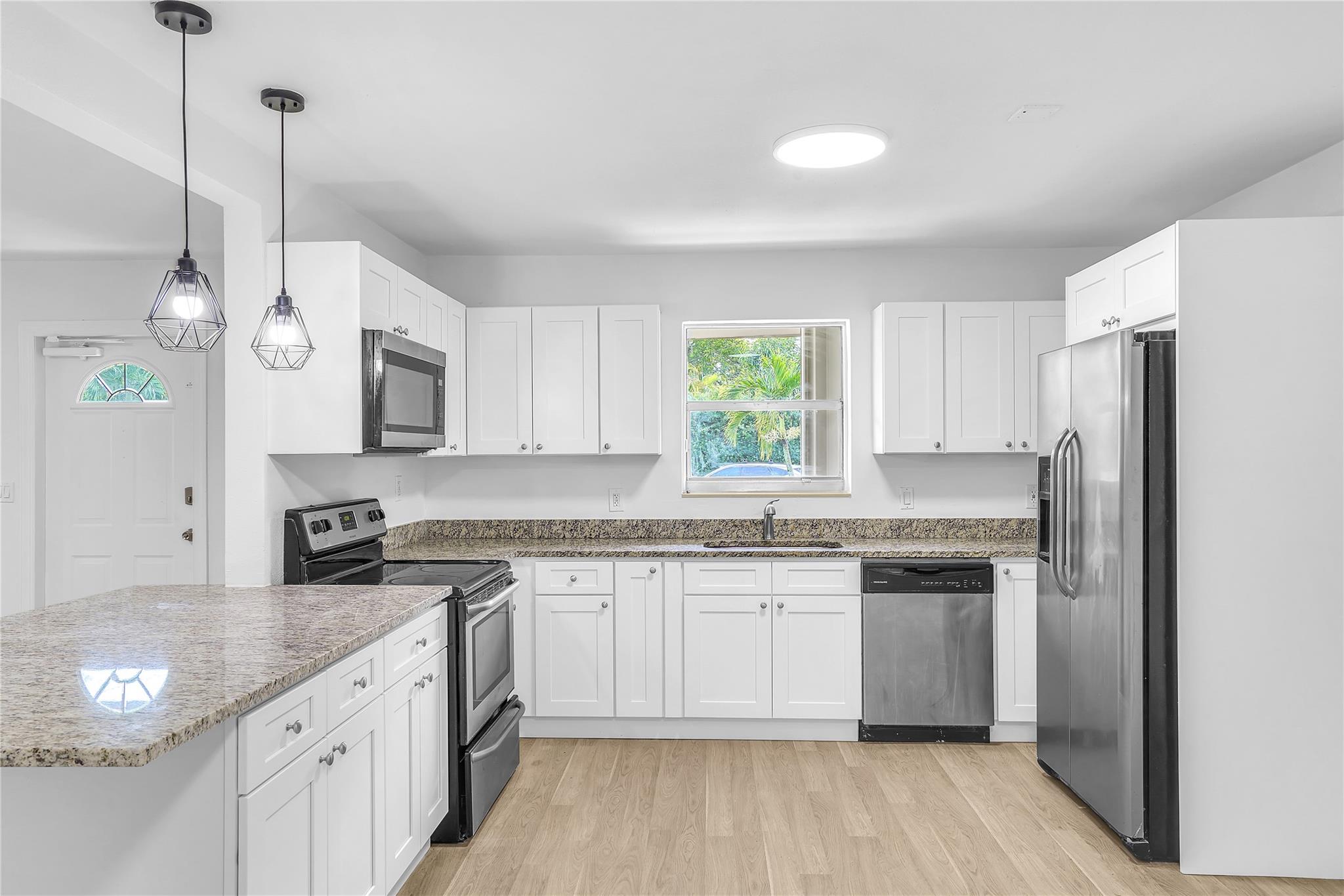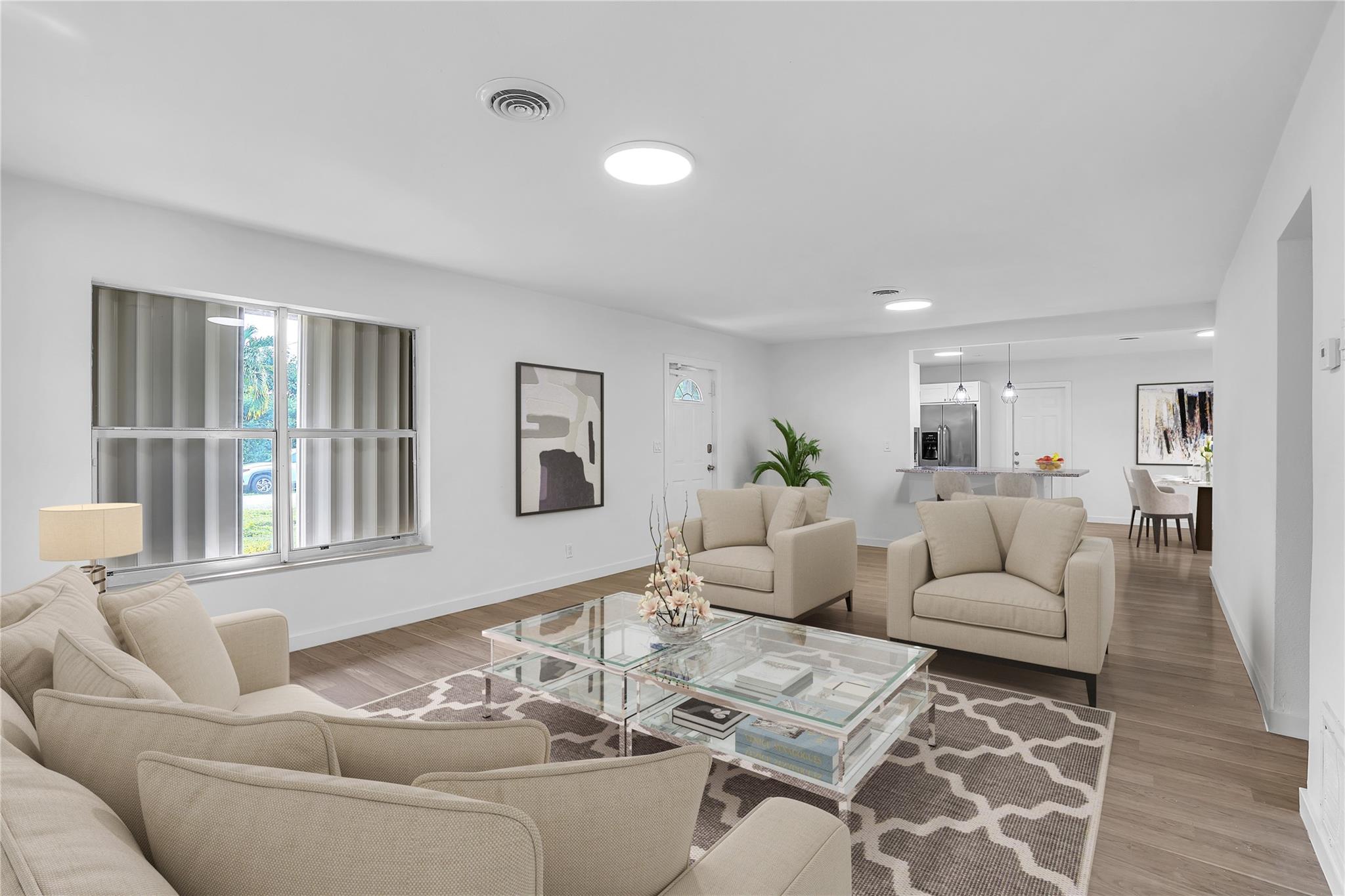 Great opportunity to own your own tropical paradise in Sunrise! Free form pool in a gorgeous fully fenced yard with mature trees. This beautiful 4 bedroom, 2 bath & 1 car garage home is fully renovated includes updated open kitchen with granite counter tops, stainless steel appliances, wood flooring, freshly painted, large living room, storm shutters, and much more! Some photos virtually staged photos.