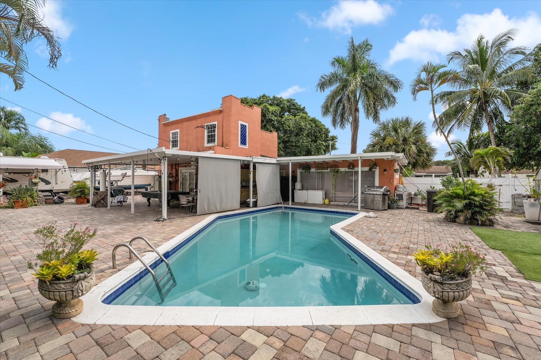 Welcome to your dream home in the heart of West Palm Beach! Enjoy the Florida sunshine while taking a refreshing dip in your very own backyard. This meticulously designed European contemporary house offers the perfect blend of style, comfort, and convenience. Step into a spacious, light-filled interior large windows, and elegant finishes throughout. Four generously sized bedrooms provide plenty of space for your family and guests. Enjoy privacy and security in your fenced backyard, perfect for pets and outdoor gatherings. Ample parking space for your vehicles, boat or RV. NO HOA. Easy access to I-95, pristine beaches, shopping malls, and vibrant downtown West Palm. Minutes away from the Palm Beach Zoo, Dreher Park, and the Science Museum.