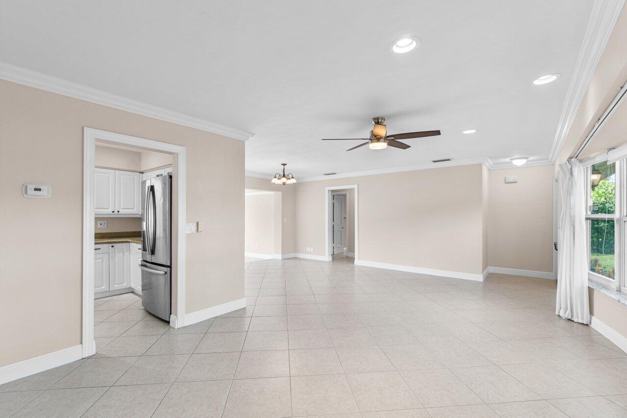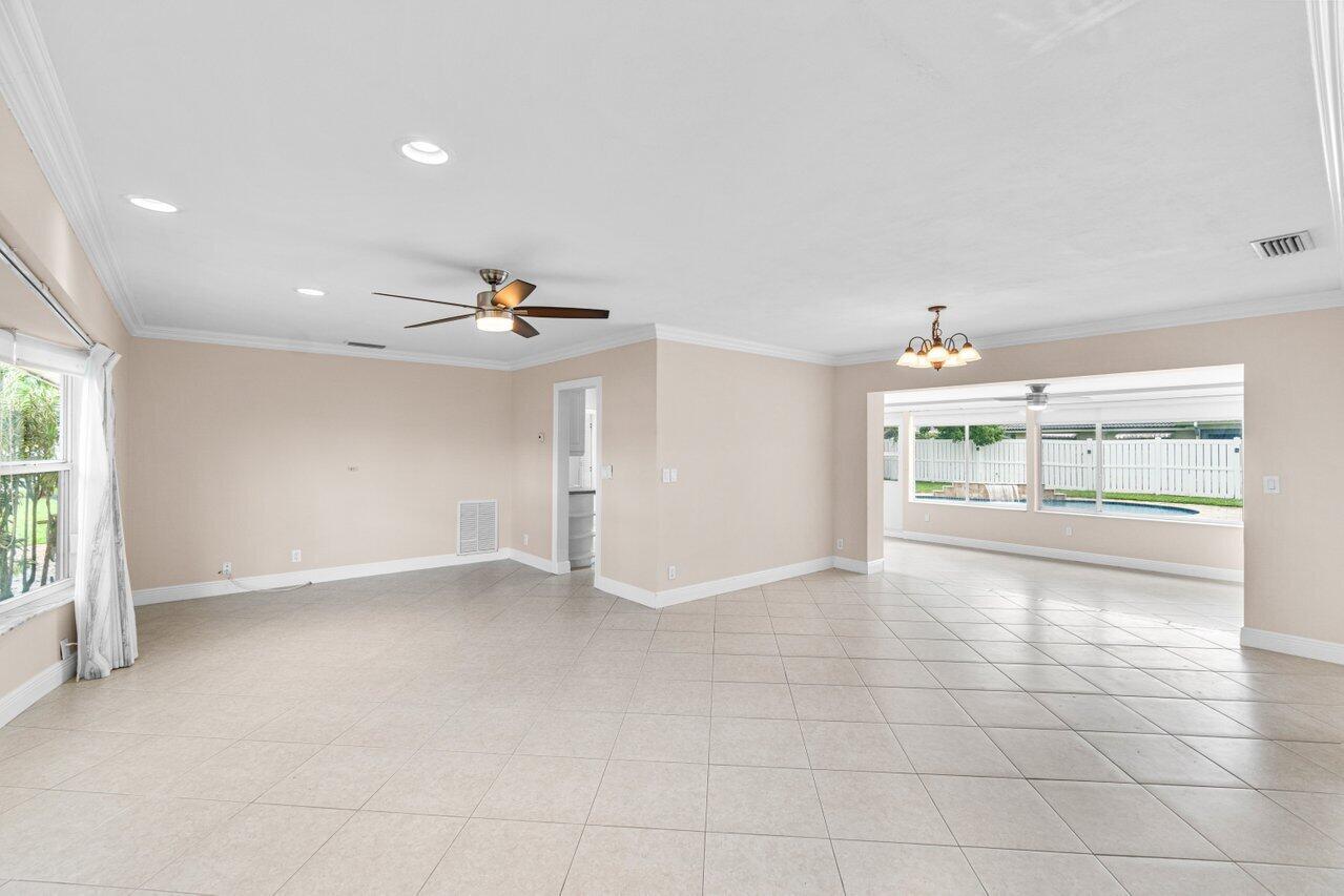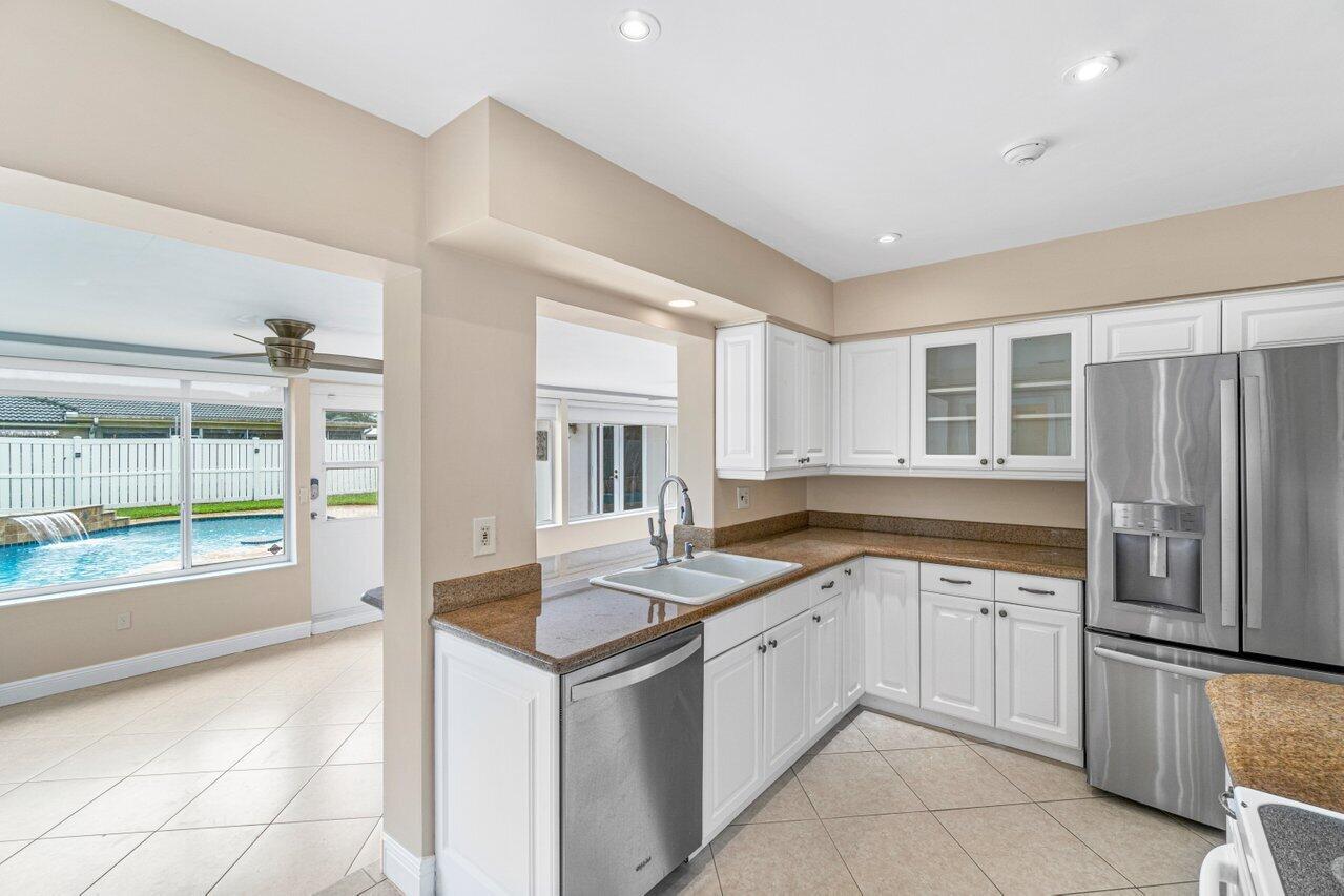 Welcome home to this spacious and beautifully appointed single-family home in the highly sought-after Boca Raton Square. Brand New Roof, Chicago brick paver driveway, custom built pool, welcoming entry that leads you to a large living room, and formal dining room area. Open floor plan. Kitchen is complete with stainless steel appliances and a granite countertop. Florida Room offers plenty of space for additional living and entertainment options. The custom primary suite is a true retreat with its ensuite bathroom that boasts a spa tub, walk-in shower, and a double vanity. French doors provide convenient access to the backyard, where you'll find a true tropical oasis. NO HOA. Baby gate for pool.