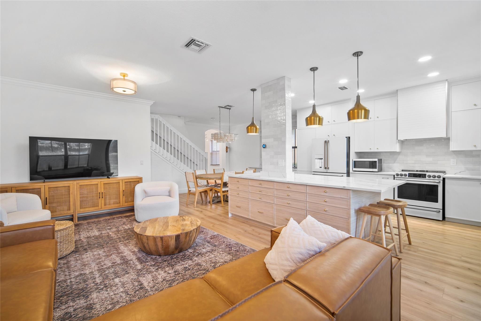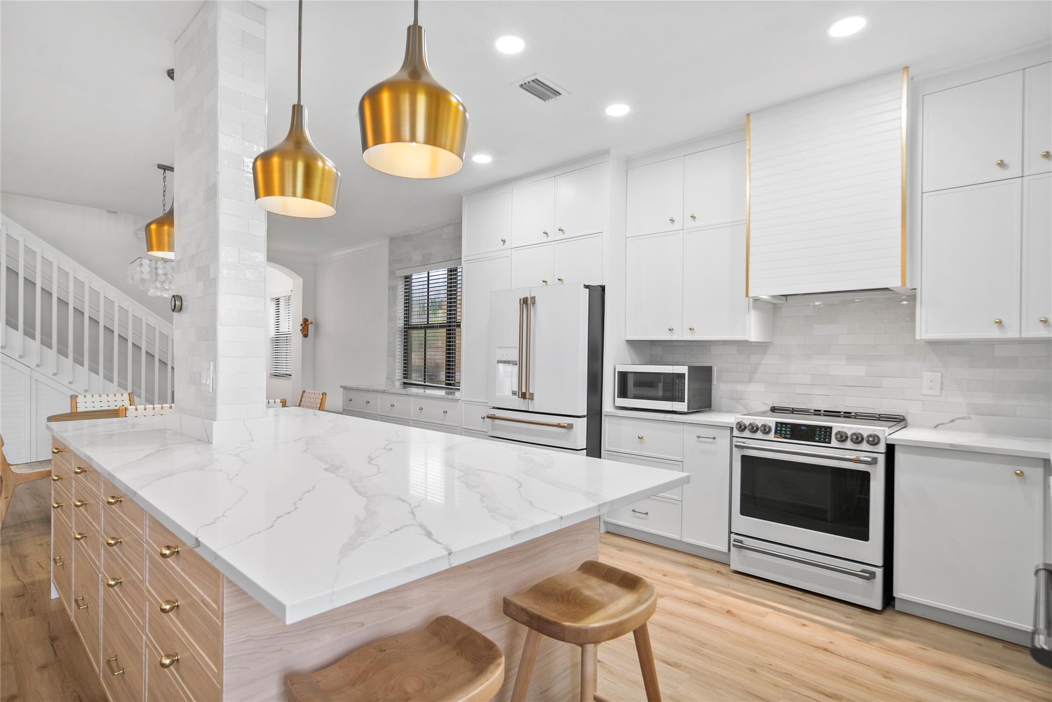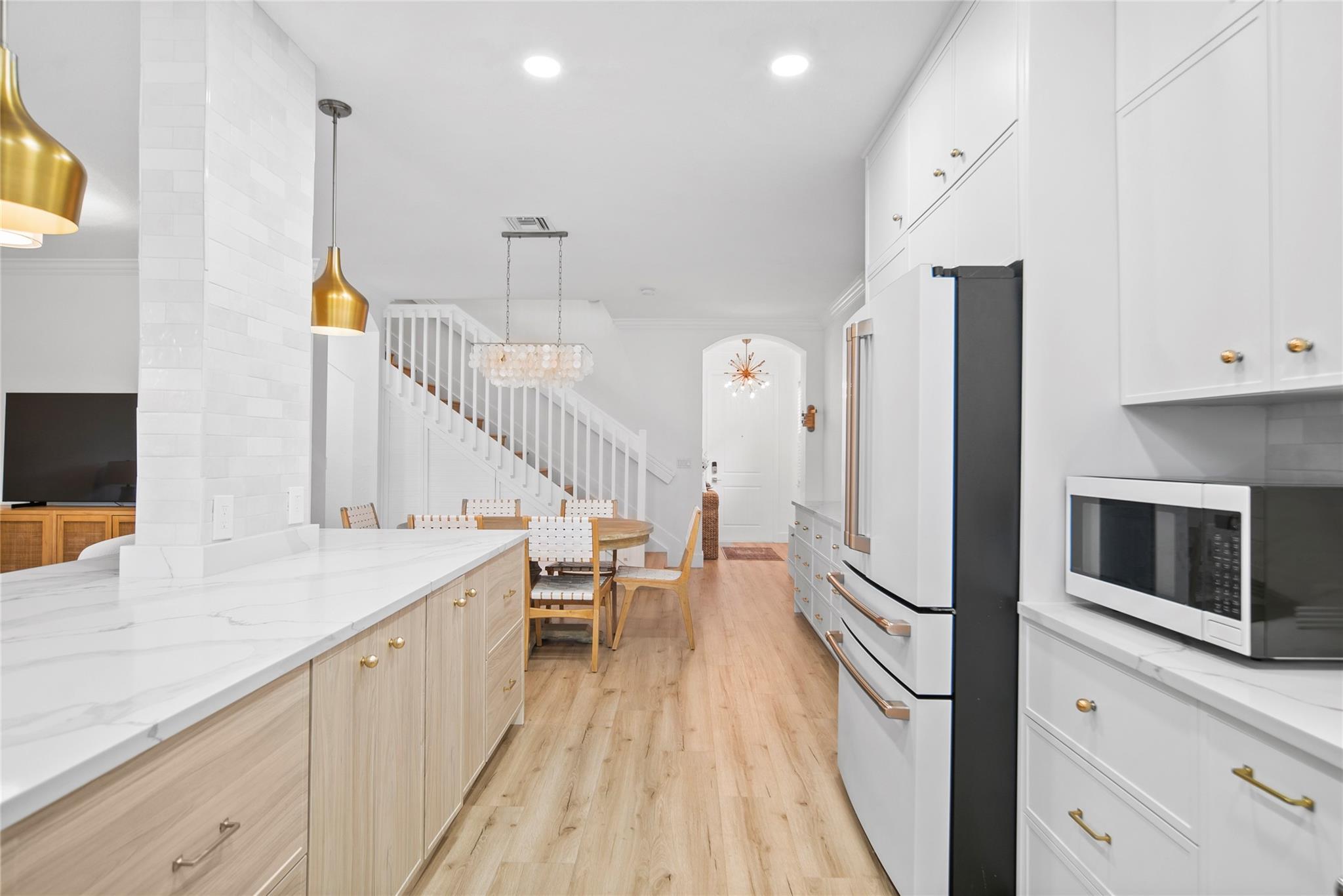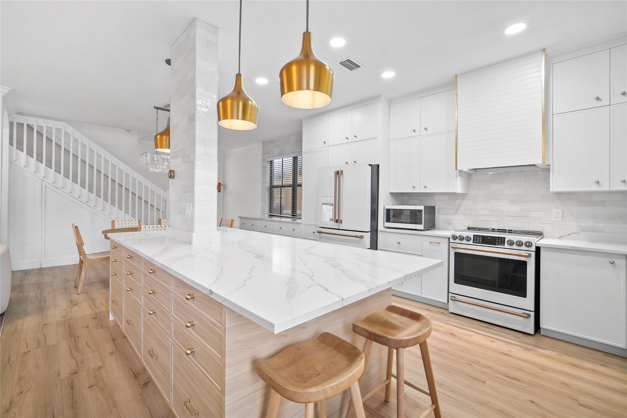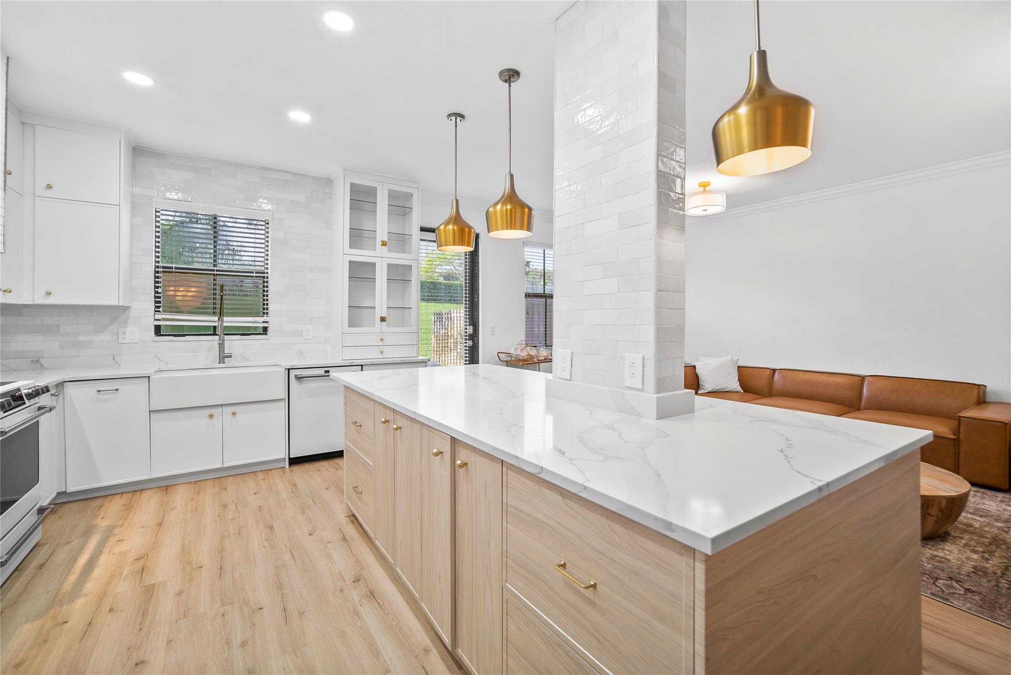 Over $150K In Recent Upgrades You Have To See To Appreciate (See Upgrade List). Totally Updated 3 Beds, 2.5 Baths Dream Corner Home w/2-Car Garage! As Soon As You Enter, You Are Captured By Luxurious Improvements At All Angles Including New Wood Floors Throughout, Huge Designer Kitchen w/Quartz Counters Including Overside Island w/Plenty Of Extra Storage & Multiple Built-In's, Updated Appliances Light Fixtures, Fans, & Pendant Lighting, Fully Remodeled All Baths w/Top Of The Line Finishes, Spacious Primary Bath w/Separate Tub & Shower w/Attention To Detail, 2nd Full Bath Upstairs Also Fully Updated To The 9's! Private Pavered Patio Ideal For Entertaining, Resort-Style Amenities Including Pools, Fitness Center, 24-Hour Guard Gate, A-Rated Schools, Close To Major Shopping & Dining! Must See!