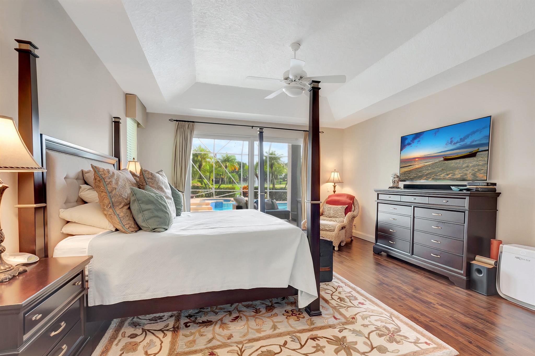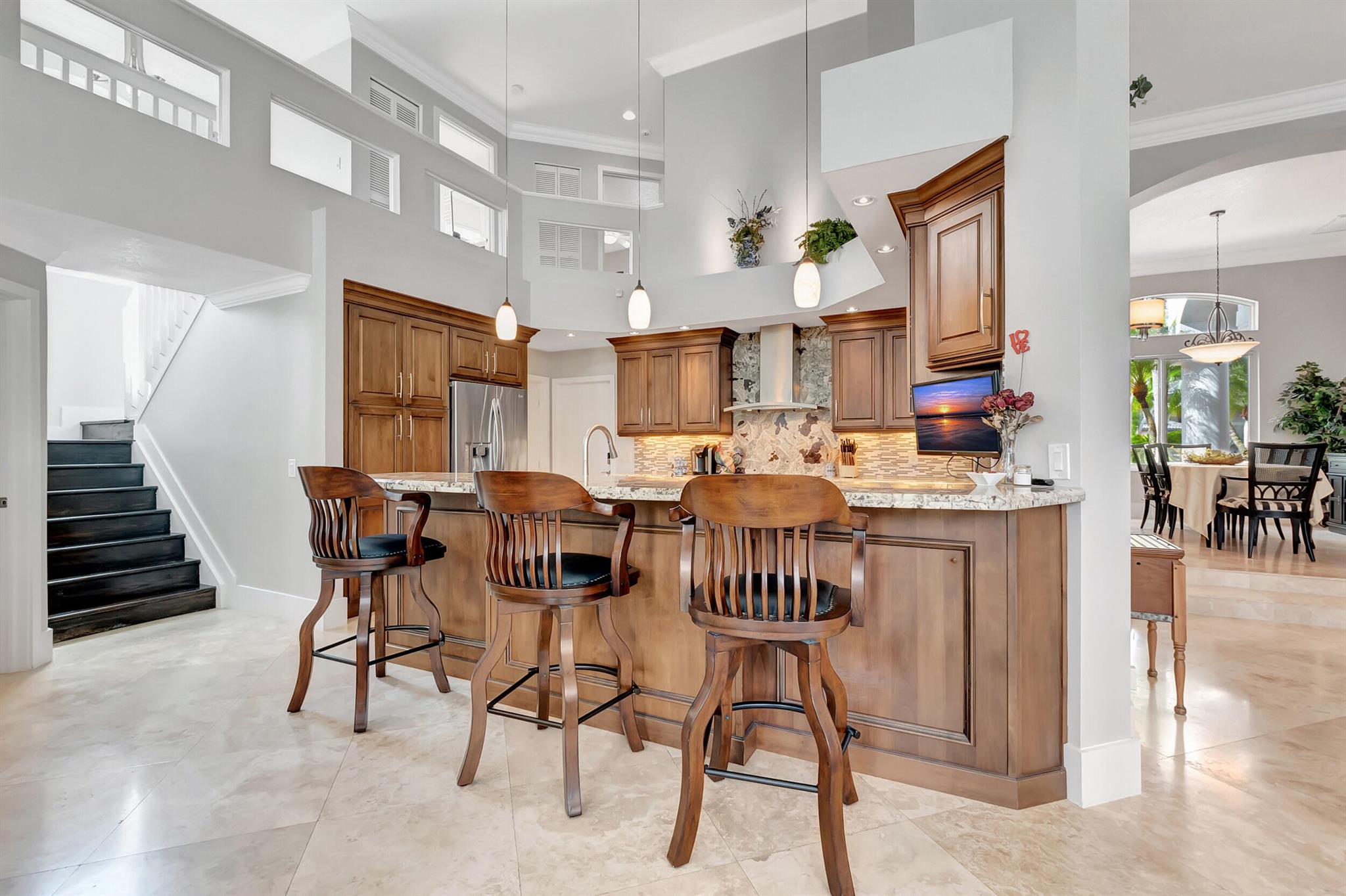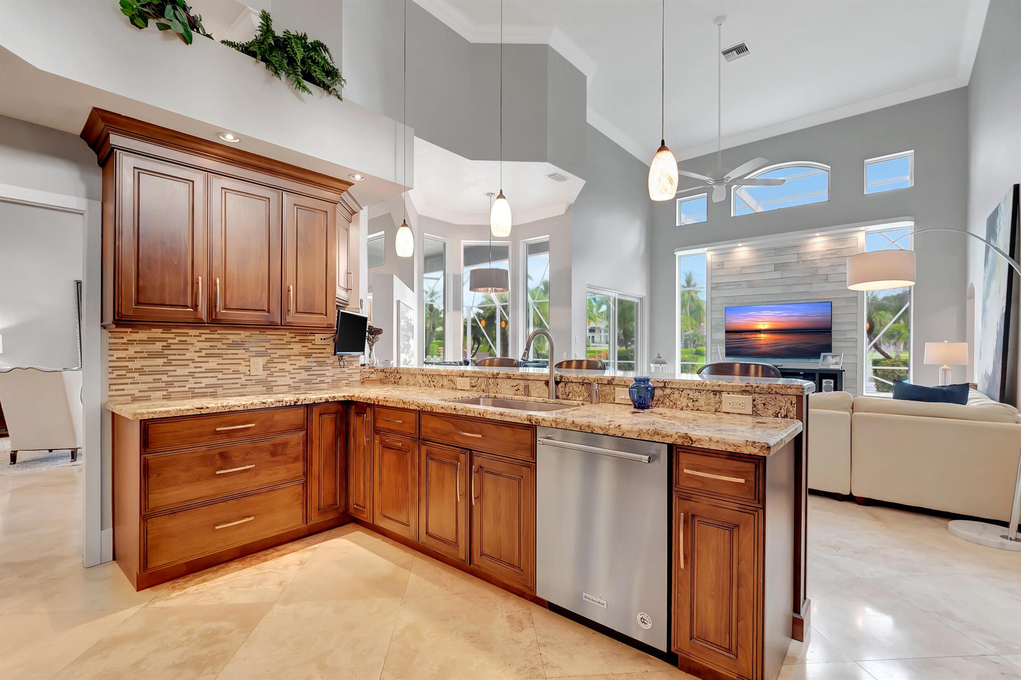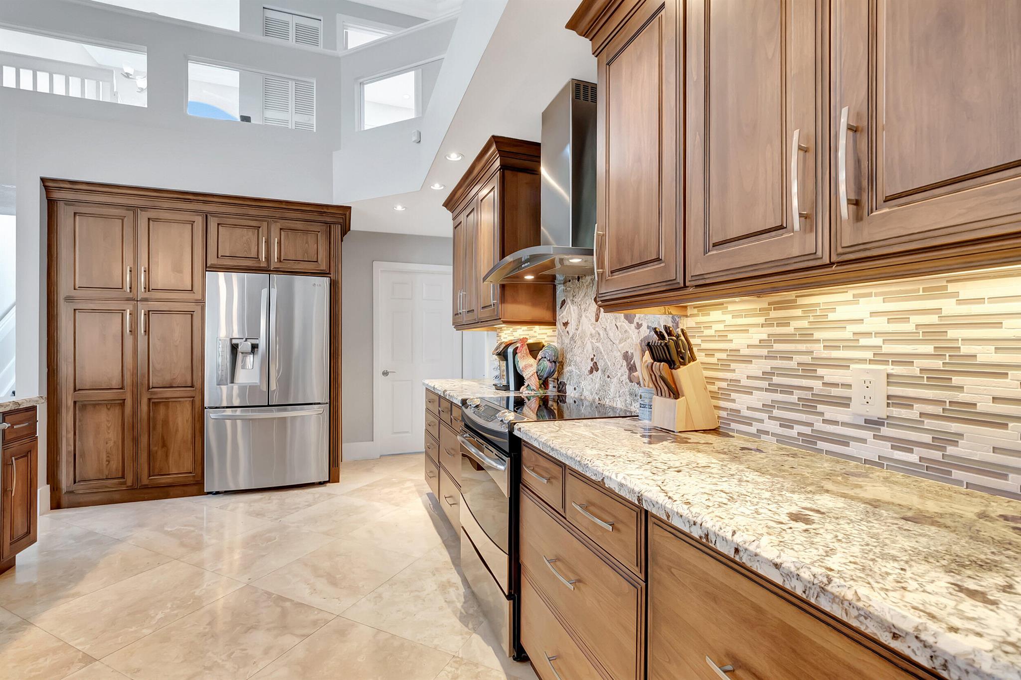 WHY WAIT TO BUILD WHEN YOU CAN HAVE THE BEST IN BOCA ISLES ON A SPECTACULAR WATERFRONT LOT. Palm Beacher Estate Home is in the RESERVE section of Boca Isles South. 5 BR 3 BA 3 CG lakefront screened in pool home in the highly desirable community of Boca Isles South. Move in Ready. Travertine marble flooring in main living areas throughout first floor. Large formal dining room for entertainment. The magnificent kitchen features custom cabinetry, granite countertops, updated stainless-steel appliances, including a convection stove. The kitchen also features a large counter for guests to dine, as well as a breakfast area with superb views. A large great room that is adjacent to the kitchen features a custom-built wall unit.