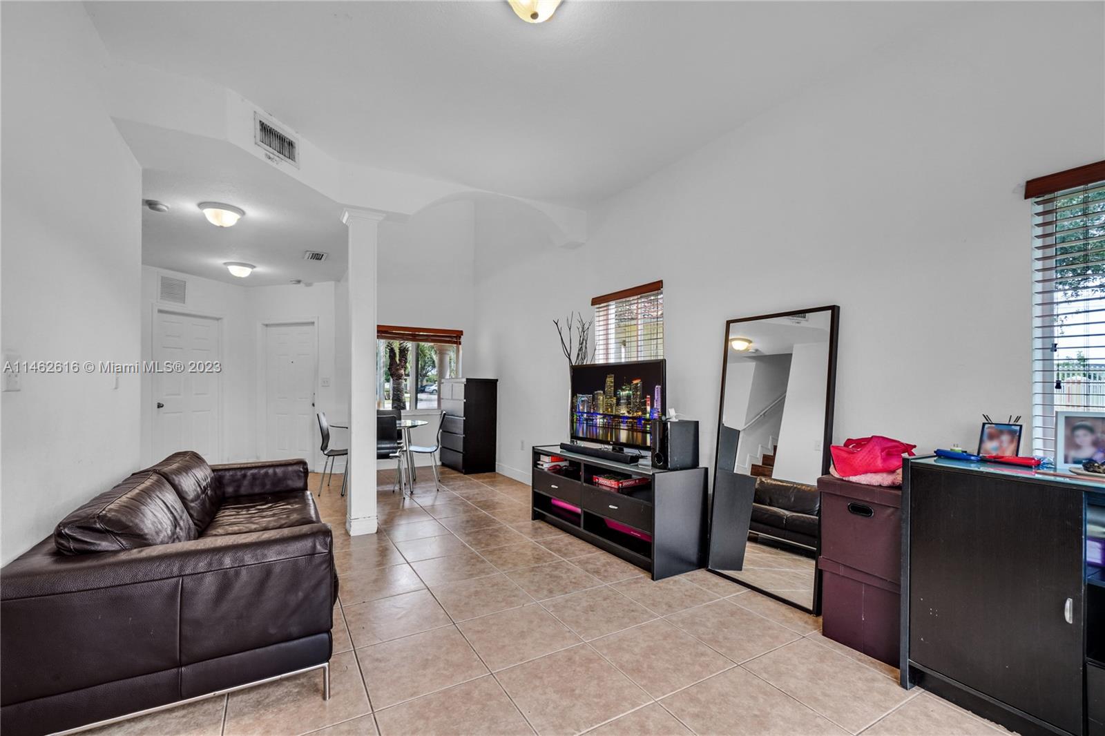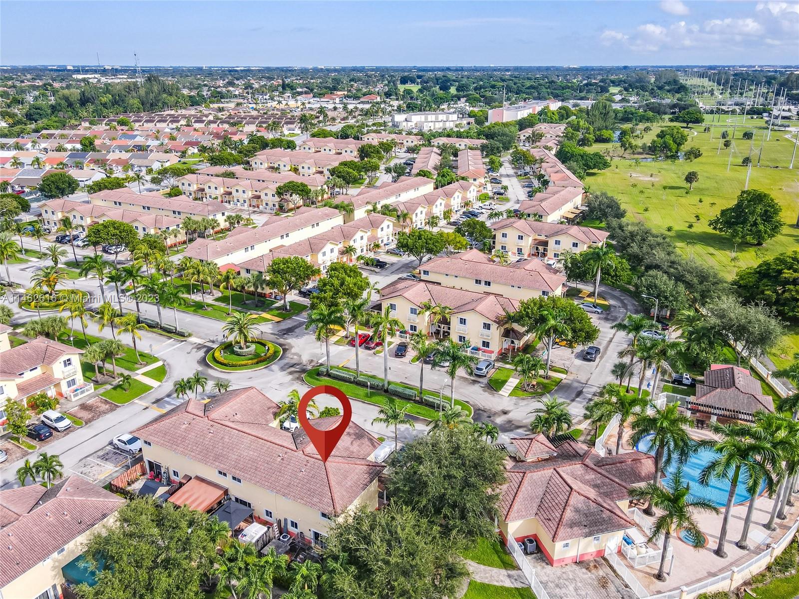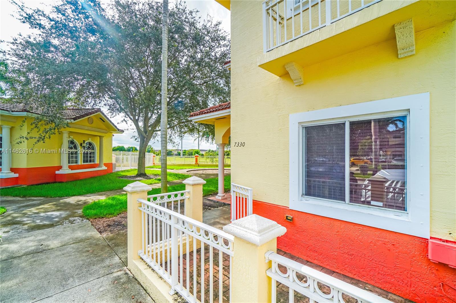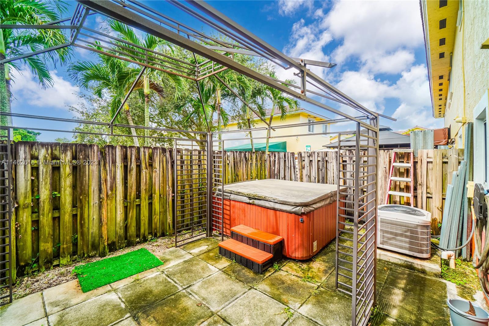 Spacious corner town-home/villa featuring 3 bedrooms and 3 full bathrooms. Ceramic floors, wood stairs, spacious kitchen with granite countertops and stainless steel appliances, Jacuzzi in privately fenced backyard. 2 parking spaces in-front of unit plus additional parking for visitors very close to property. One full en-suite bedroom with full bathroom on the first floor. Lowest association fee in the area only $160 per month for homeowners association, and it includes garbage and internet. Easy access not gated community. Prime location, close to supermarkets, schools and shopping centers, easy access to I-75, Palmetto and turnpike.