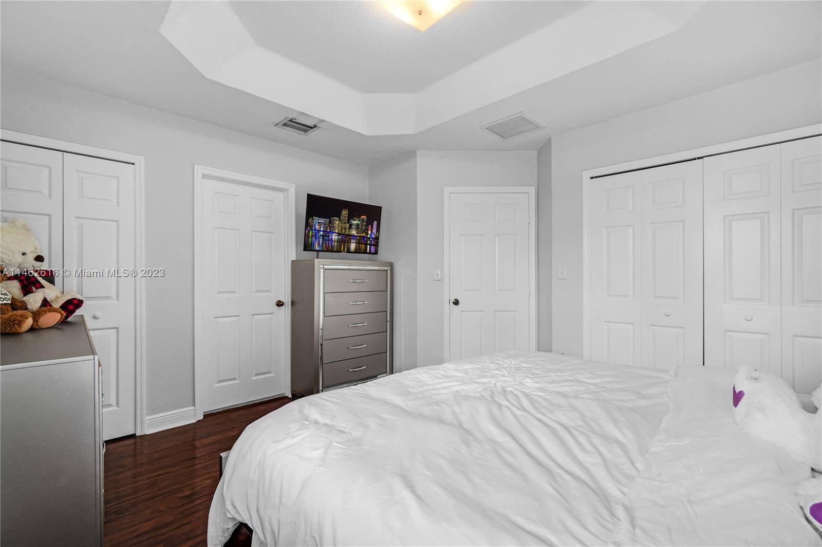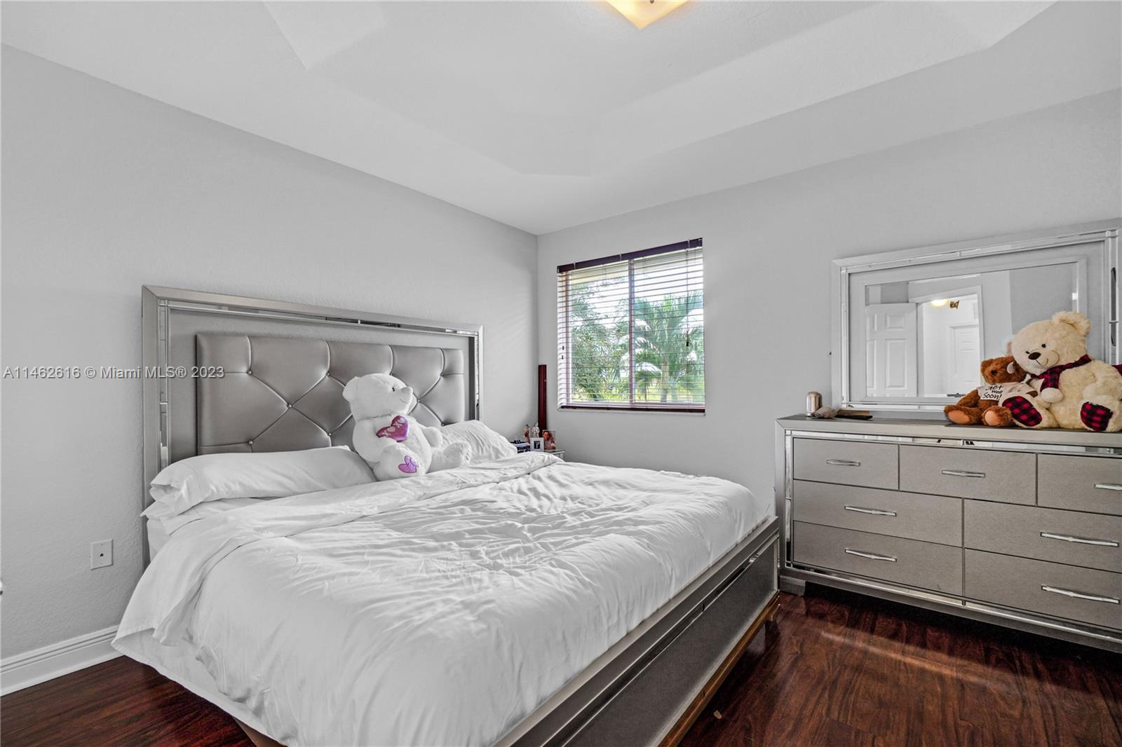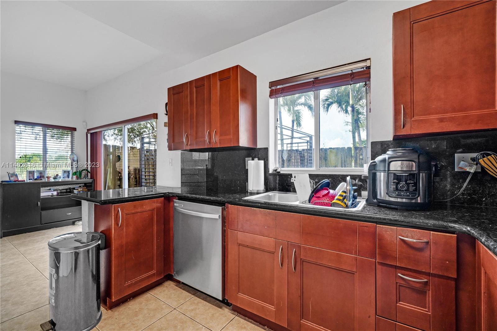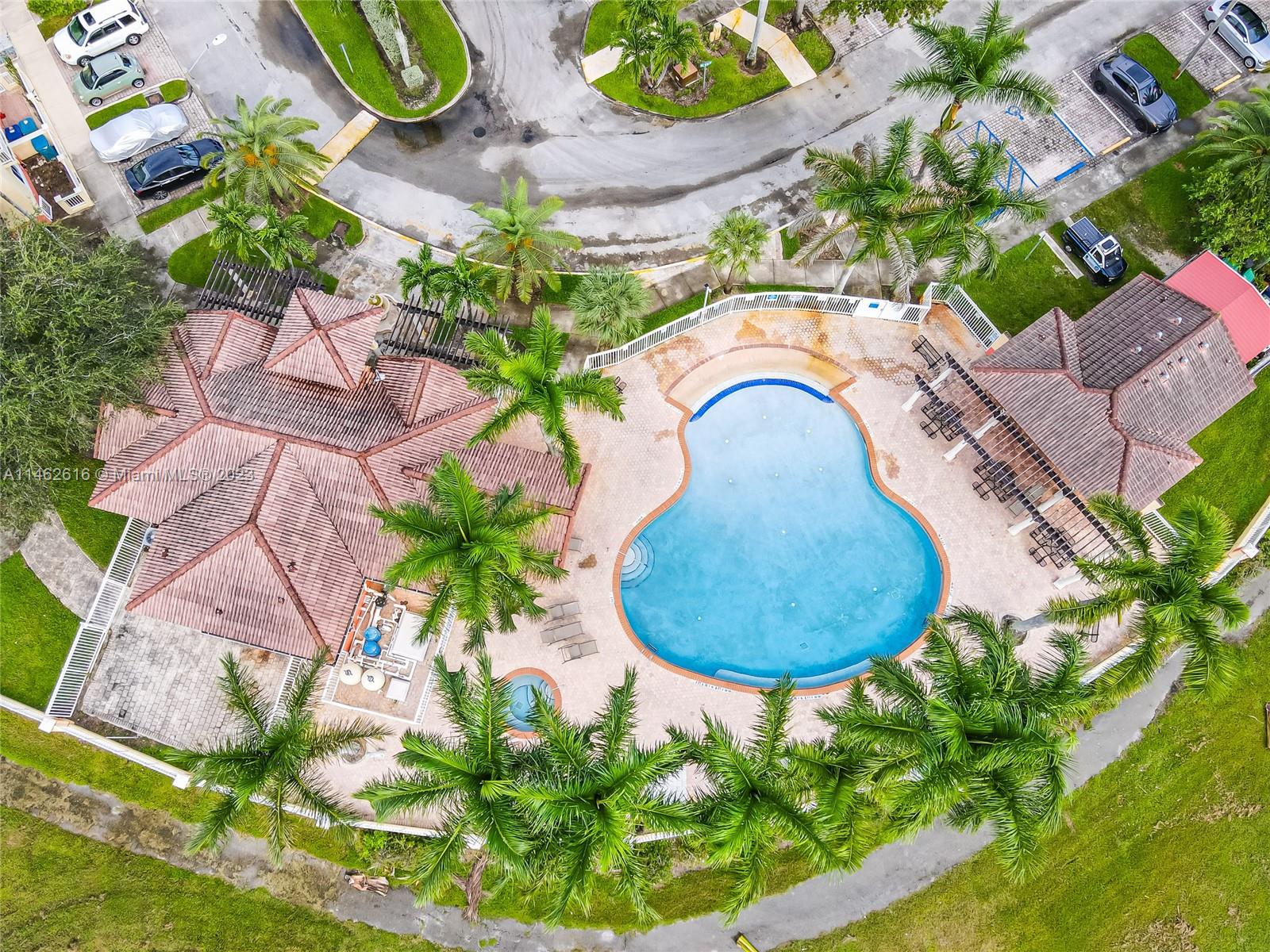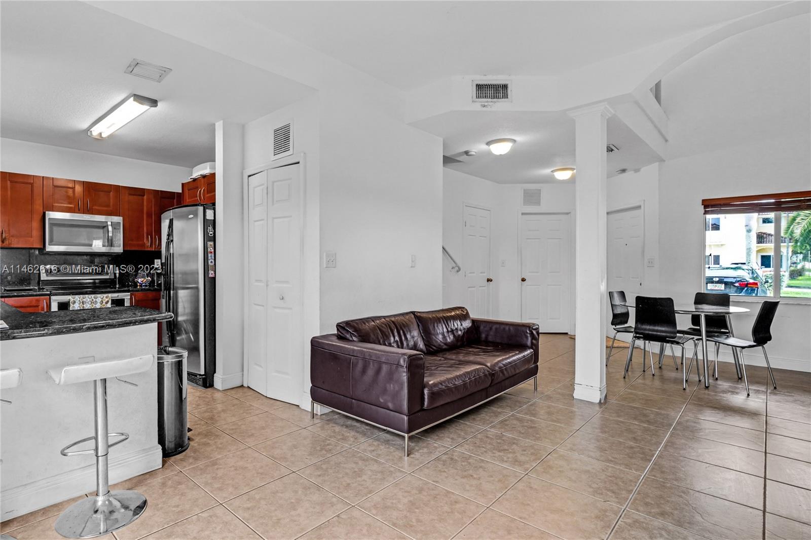 Spacious corner town-home/villa featuring 3 bedrooms and 3 full bathrooms. Ceramic floors, wood stairs, spacious kitchen with granite countertops and stainless steel appliances, Jacuzzi in privately fenced backyard. 2 parking spaces in-front of unit plus additional parking for visitors very close to property. One full en-suite bedroom with full bathroom on the first floor. Lowest association fee in the area only $160 per month for homeowners association, and it includes garbage and internet. Easy access not gated community. Prime location, close to supermarkets, schools and shopping centers, easy access to I-75, Palmetto and turnpike.