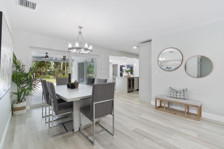 Beautifully remodeled 4/2 pool home in East Boca that boasts a rare oversized lot filled with tropical plants and trees. Home exterior consists of a new metal roof, new paver driveway, and resurfaced pool and spa. All exterior openings are complete with City of Boca Raton approved new hurricane impact windows and doors. AC units installed in 2022. New luxury vinyl flooring is installed throughout the home. Bathrooms are elegantly updated. The exquisite chef's kitchen is the heart of the home with an oversized eat-in peninsula, high end appliances, and a convenient pot filler. Home is in walking distance to Mizner Elementary School. This home is truly a turnkey tropical paradise awaiting its next family.