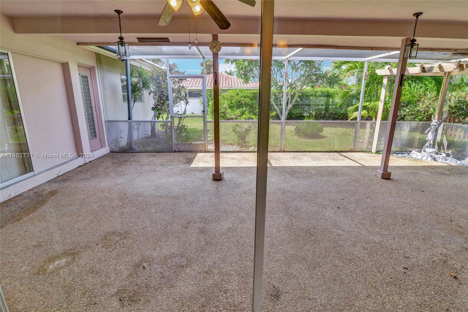 This spacious oversized corner lot in Boca's Lake Floresta neighborhood on the East side is ideal for those seeking a top-notch school district, featuring three bedrooms and two bathrooms on one side and a separate fourth bedroom on the opposite side. It's within the sought-after school district, including Mizner Elementary, Boca Raton Community Middle School, and Boca Raton Community High School. The home features tile flooring, a well-appointed kitchen with stainless steel appliances, and a screened-in patio. Recent updates include fresh paint, new ceiling fans, and lighting fixtures throughout the home and garage. The concrete roof, installed in 2001, and a less-than-two-year-old A/C system add to its value, making it a canvas for your dream home or renovation project.