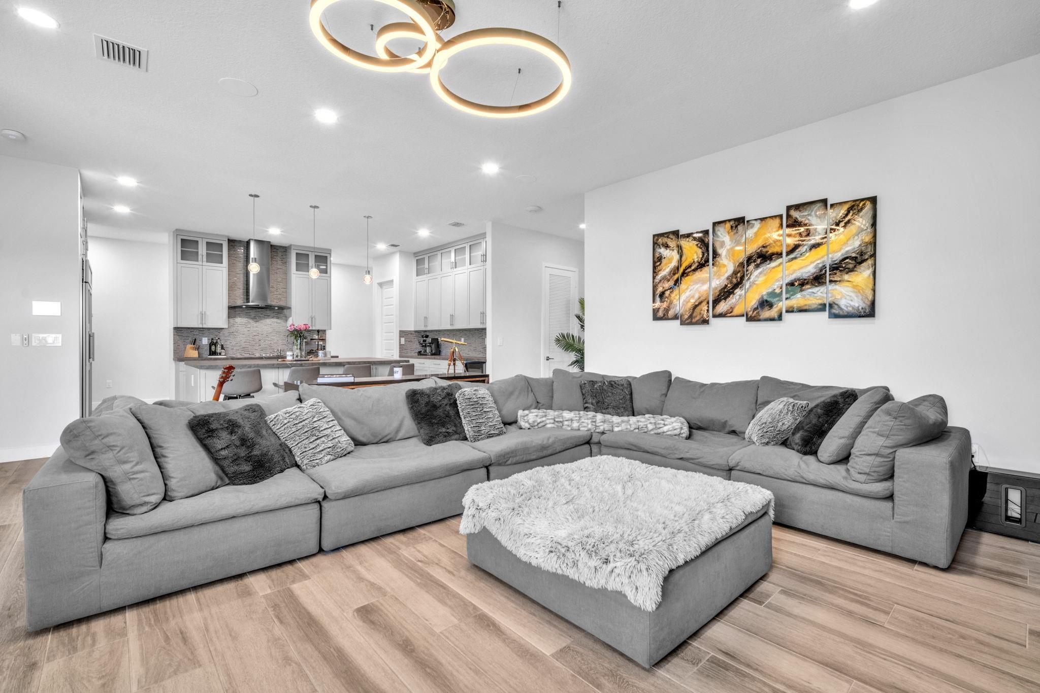 Largest 1 story smart waterfront home on 1/2 Acre lot in Sierra Ranches gated community, 7 bed,6 bath modern. Upgrades & finishes include complete smart home w/voice activation, kitchen, custom designed closets,Dekton countertops custom quartz counter, bar, built-in bottle wine fridge,Upgraded Electric blinds,home/voice activated, top of the line appliances, State of the art security system,infrared air purifiers,Full home entertainment sonos audio installed throughout home & in back patio w/intercom, Insulated smart garages w/refinished floors. Custom master closets, elegant wood like tile floors. Upgraded chandeliers & voice activated lighting throughout the interior & exterior of the home. Luxury landscaping with smart color changing lighting system. New construction Dec 2021. Must see.