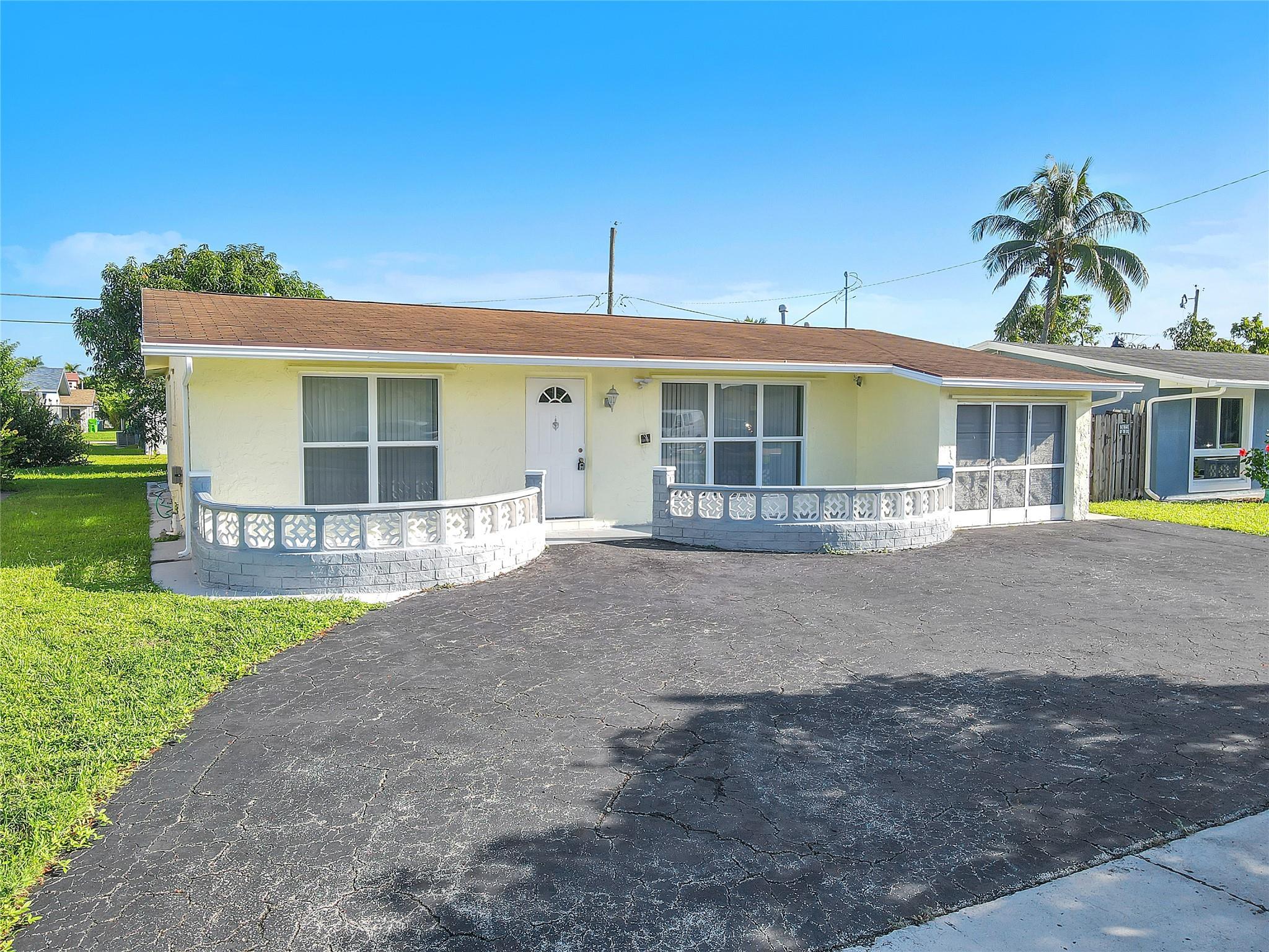 Welcome to this delightful home in Sunrise! This charming property boasts a recently upgraded kitchen featuring a gas stove, granite countertops, and stainless steel appliances. Enjoy versatile living with two bonus rooms, perfect for a bedroom, office, or dining space. Relax in the large Florida room and enclosed patio. Complete with a circular driveway, this home offers both convenience and style. Don't miss this opportunity! ***Dishwasher, A/C unit, Bathroom vanity and hurricane impact windows were all installed this year.