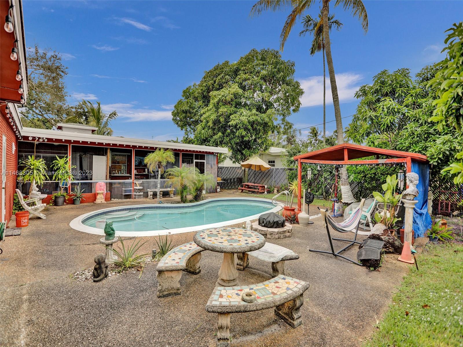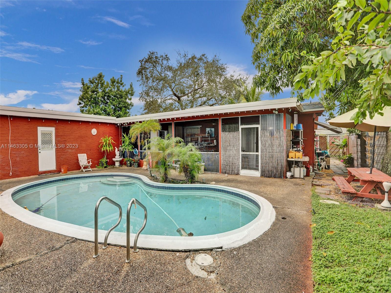 4 bed 3 bath pool home. It can easily be divided into 3/2 main home and 1/1 unit with its own separate entrance. Located just a few minutes from Hollywood Beach in the desirable Hollywood Hills neighborhood. NO association dues and short-term rental-friendly neighborhood. Close to all major highways and the international airport. The large yard has many fruit trees. New roof shingle sloped roof in 2022, AC 2019. Ready to move in or ready to be your blank canvas.