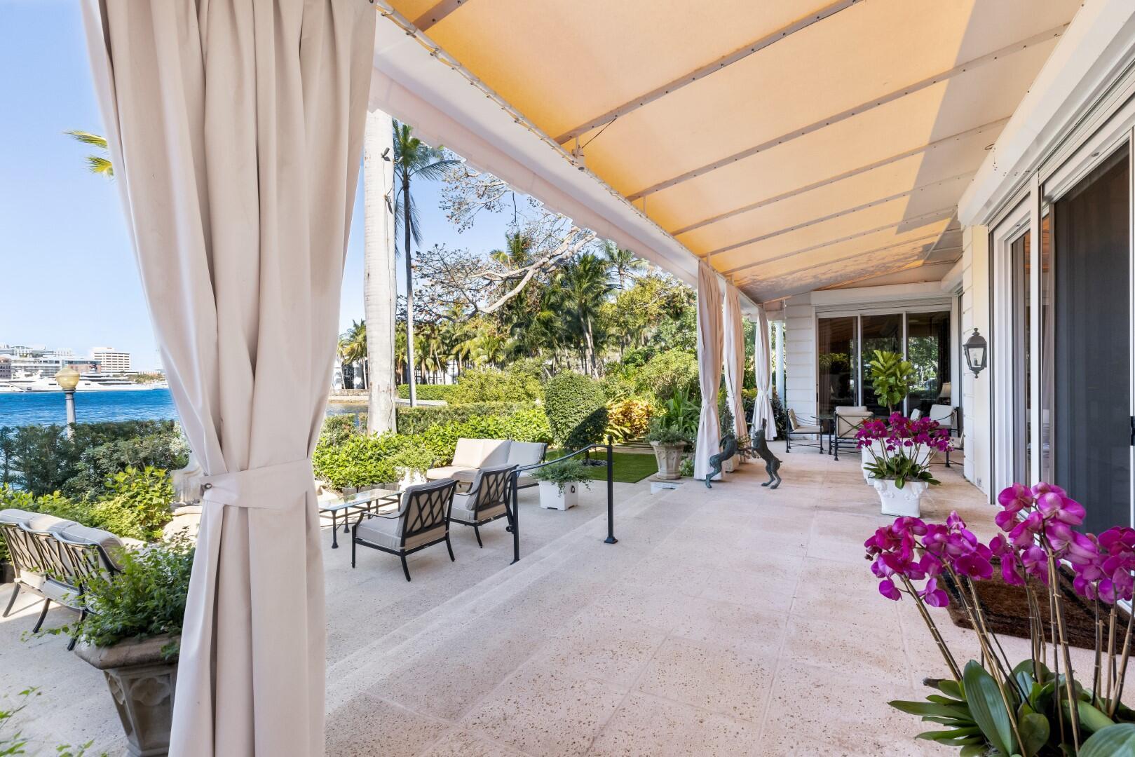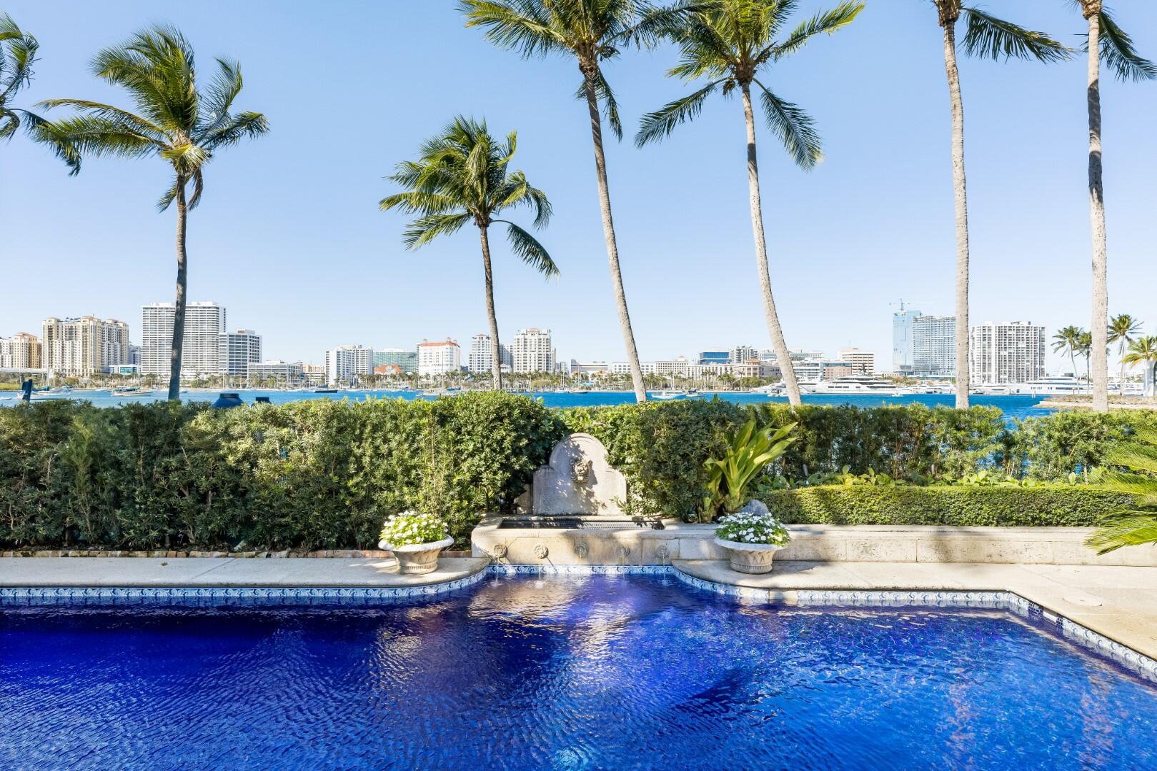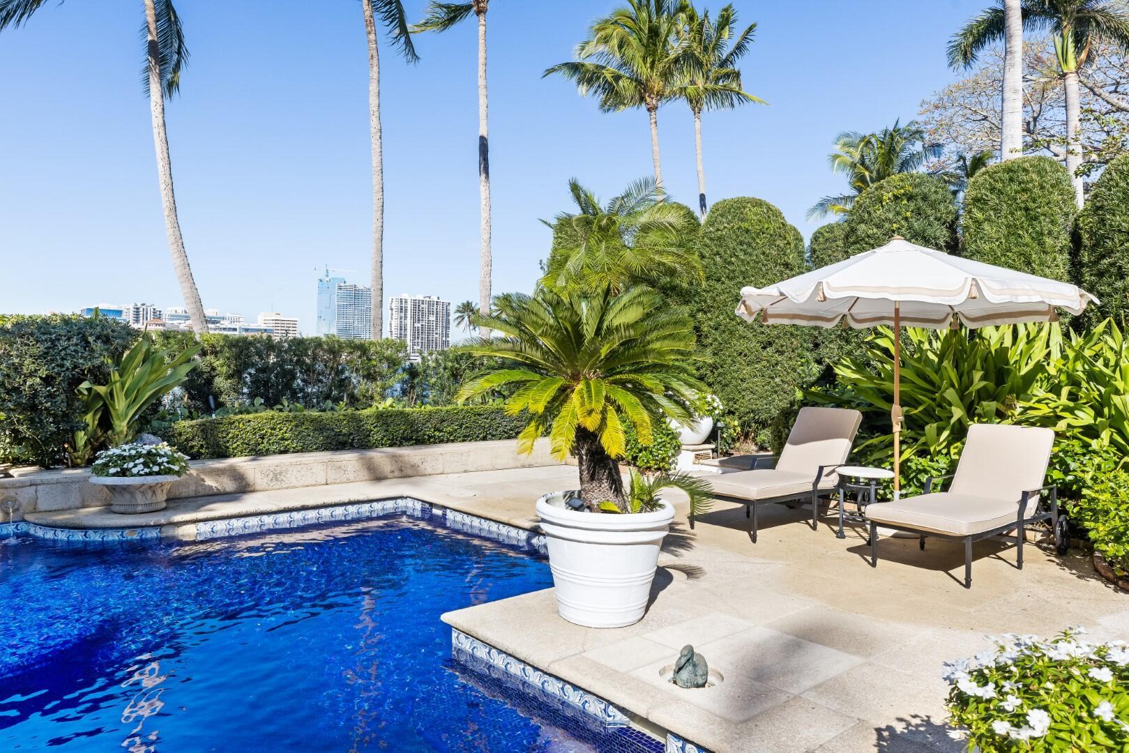 Fantastic Lakefront In-Town property with 200'+/- along the Intracoastal. Stunning water views throughout this one story estate. 8 bedrooms, 8 full baths, and 2 powder rooms split between main residence and guest house. The main estate features high ceilings, grand living room with fireplace, formal dining room, and family room with wet bar. Beautiful tropical landscaping surrounds terraces, swimming pool, and spa. Dramatic view of the kapok tree. Spectacular sunset, Intracoastal, and downtown views.