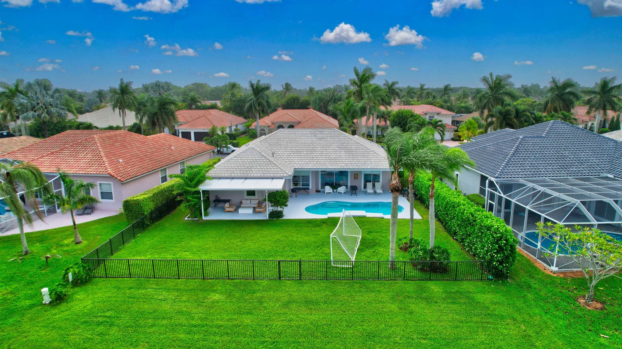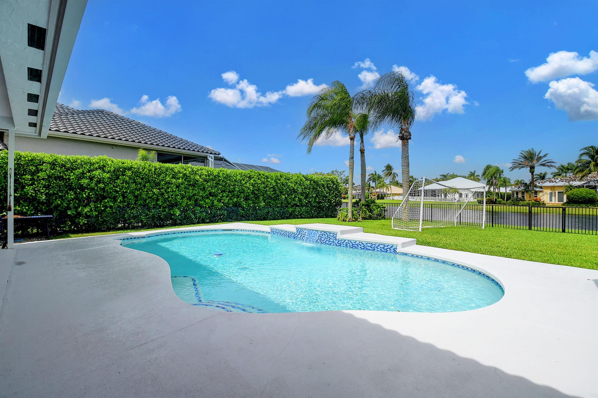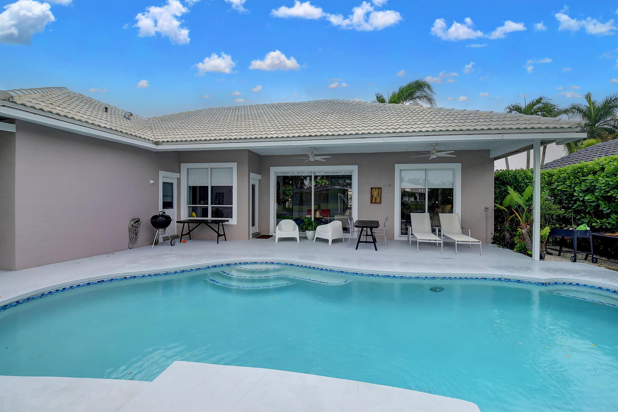 NEW BARREL ROOF WILL BE INSTALLED March 2024 on this upgraded 4/3 home with gorgeous lake view just beyond the swimming pool. Boca Falls is a gated Boca Raton community with great local schools, amenities and a wonderful community environment.The new roof is being installed not because of any leaks. The last offer we received said; '' they could not get insurance because of the age of the roof.'' So that issue is now corrected.